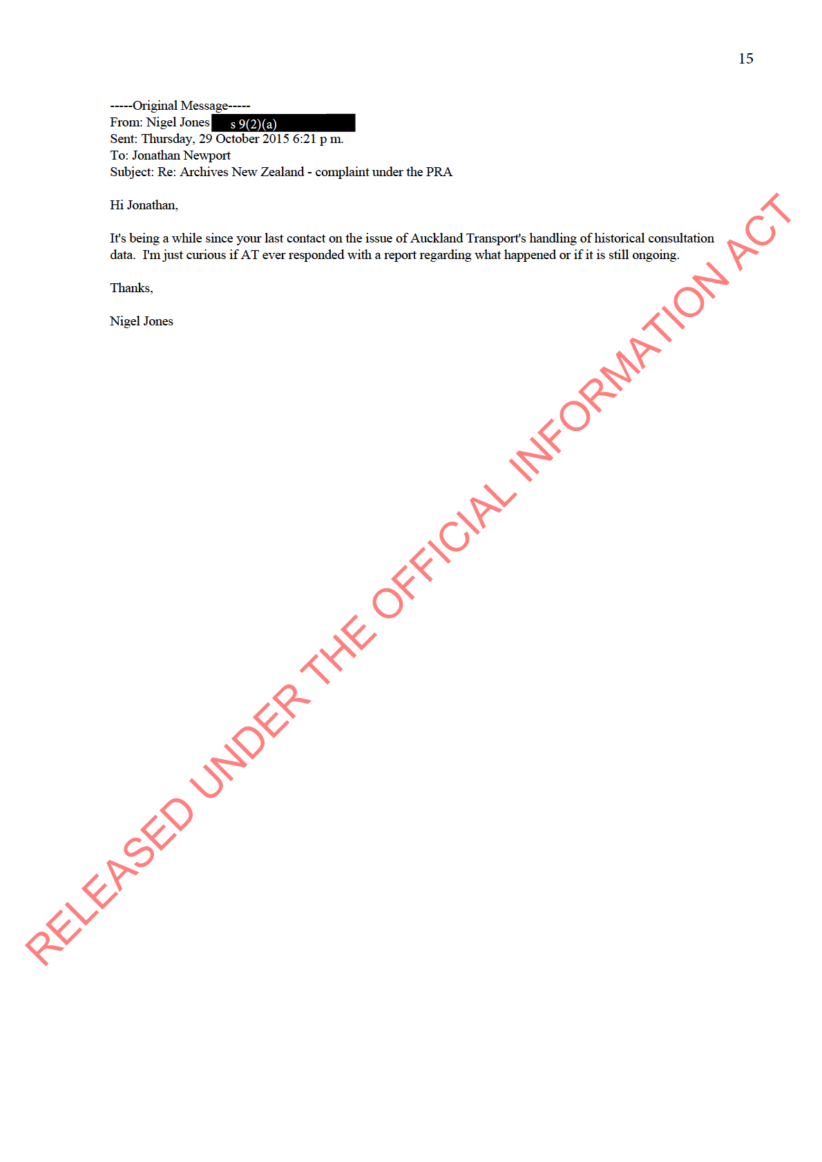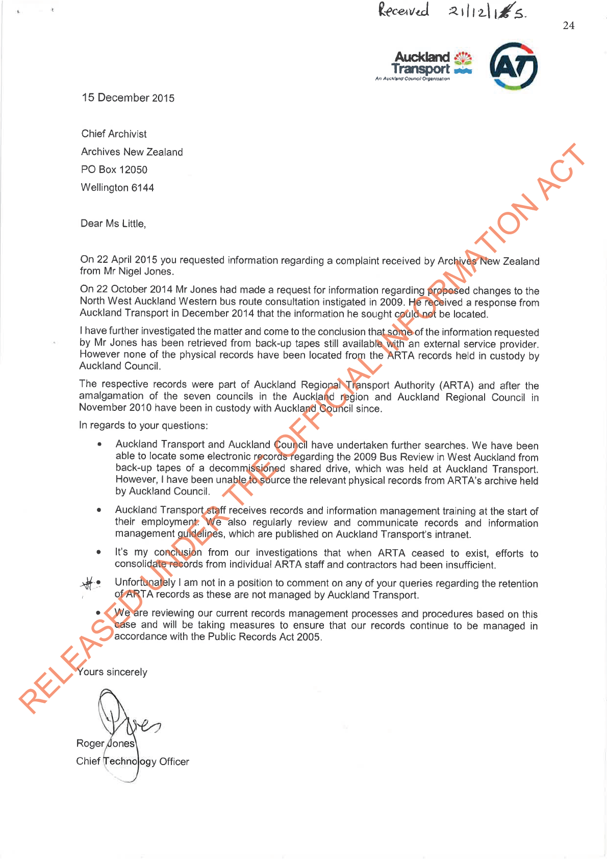 Records Act (2005) from Mr Nigel Jones. Mr Jones sought from Auckland Transport in