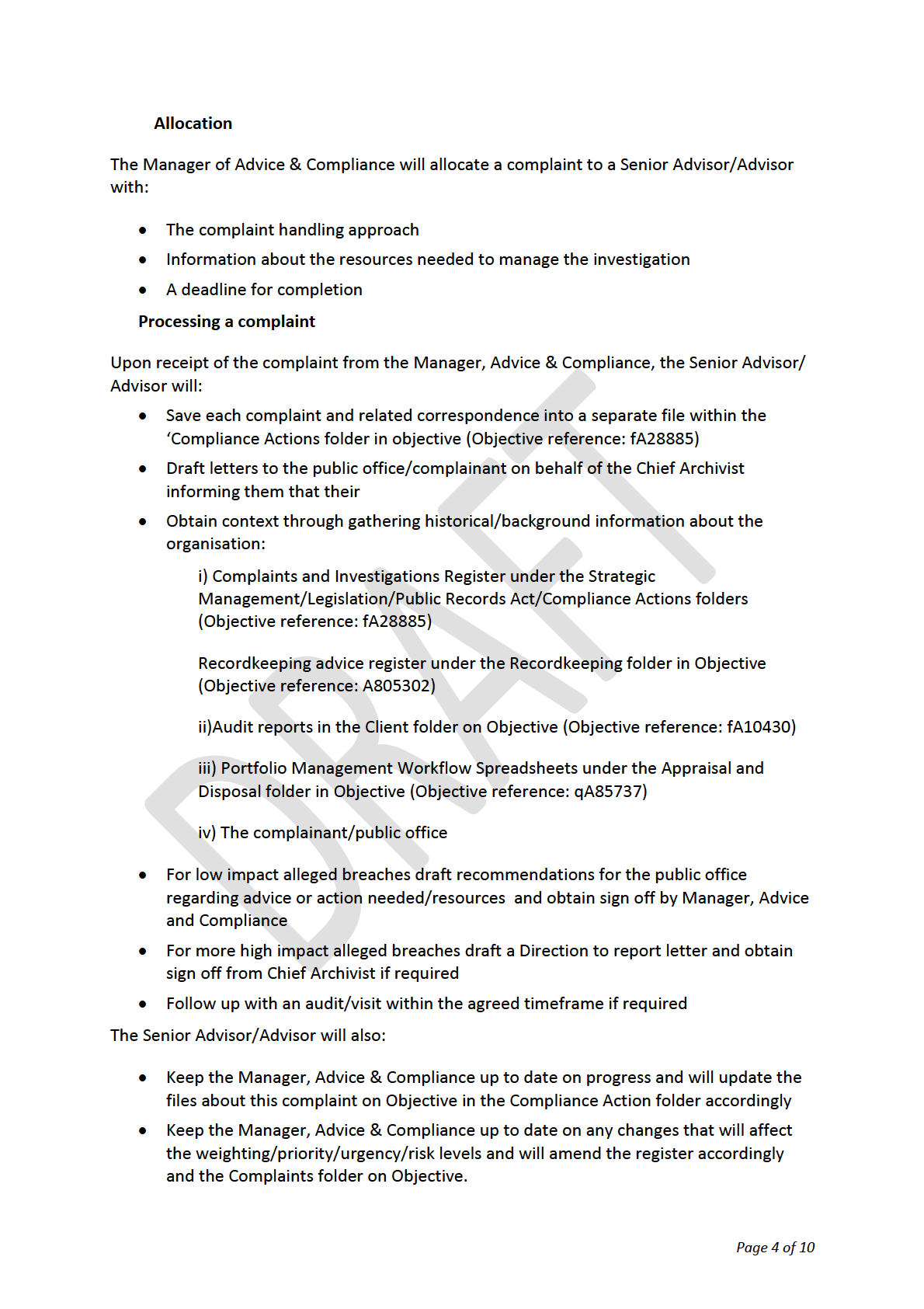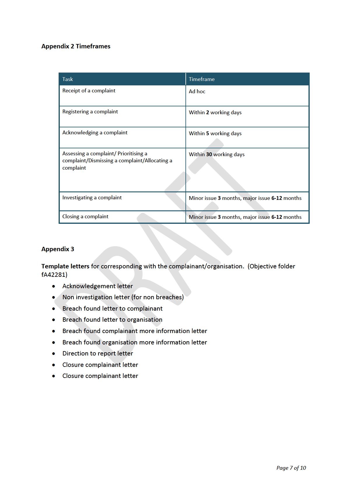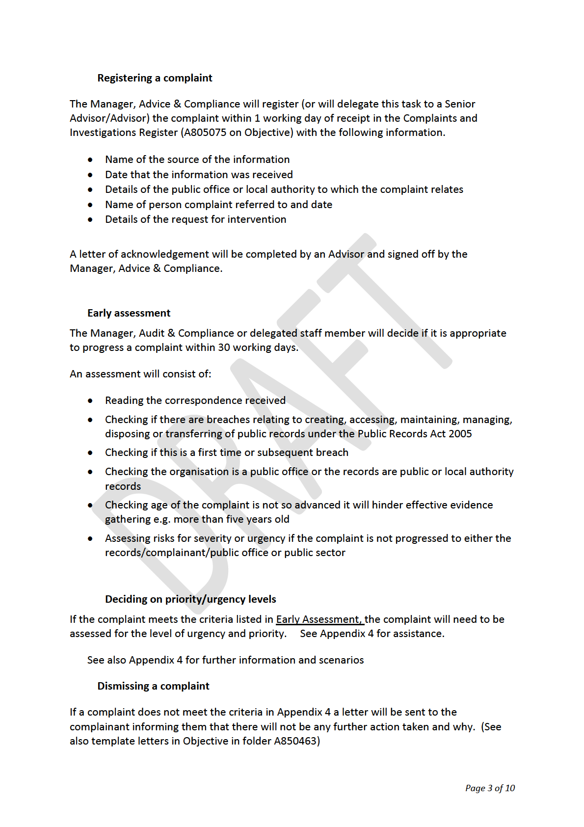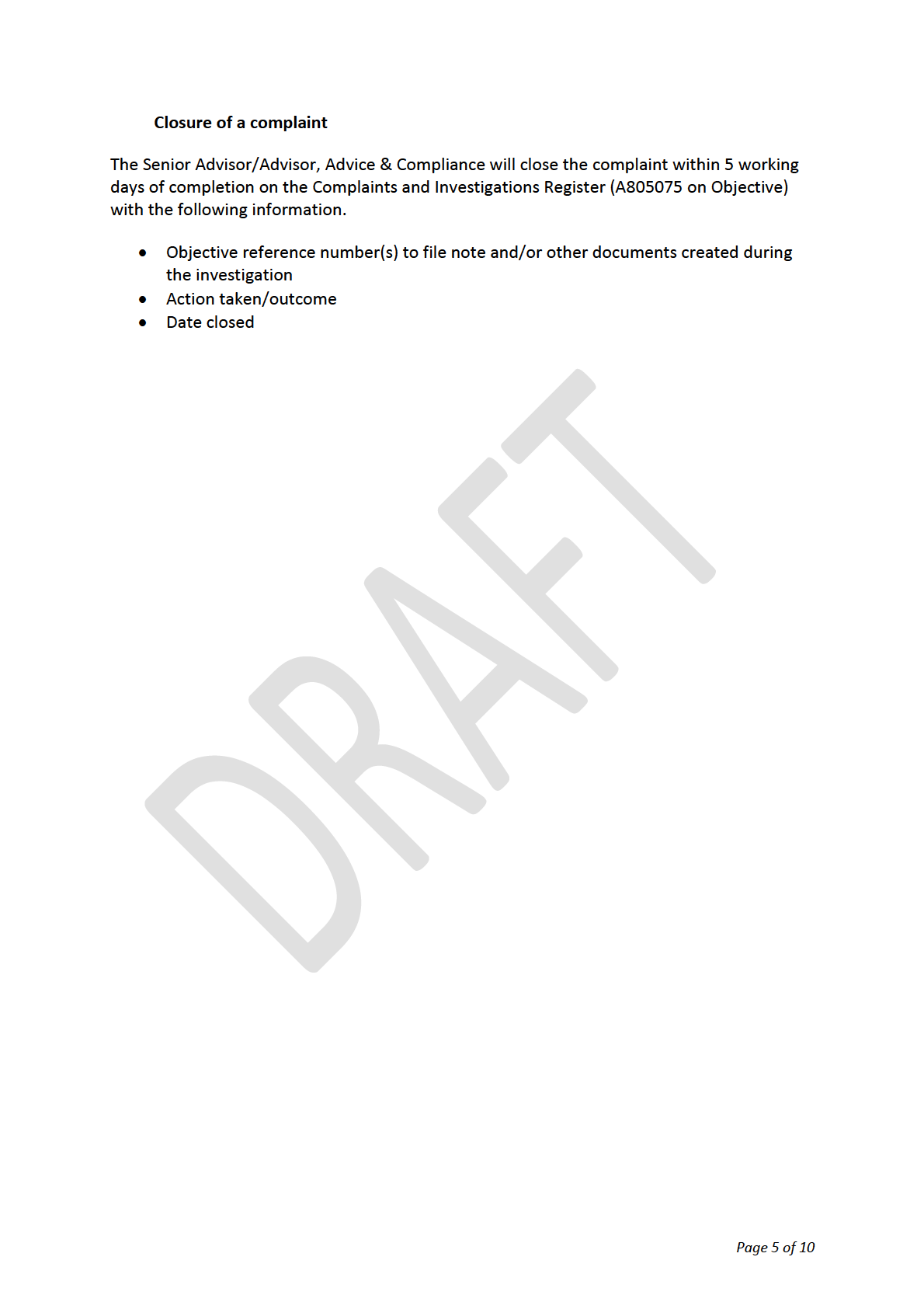 3. You will need to inform the agency concerned that we have received a complaint and will be investigating.
