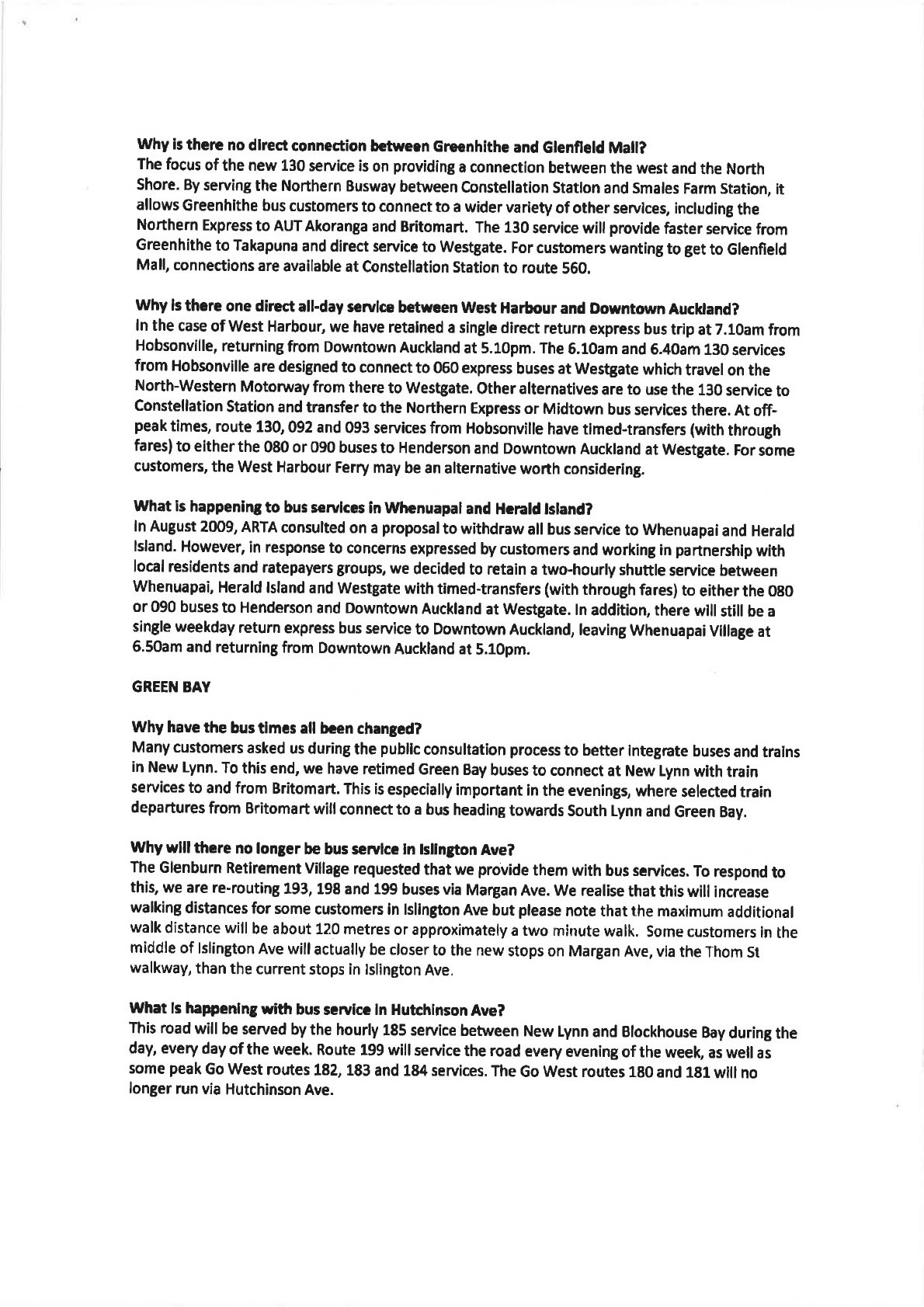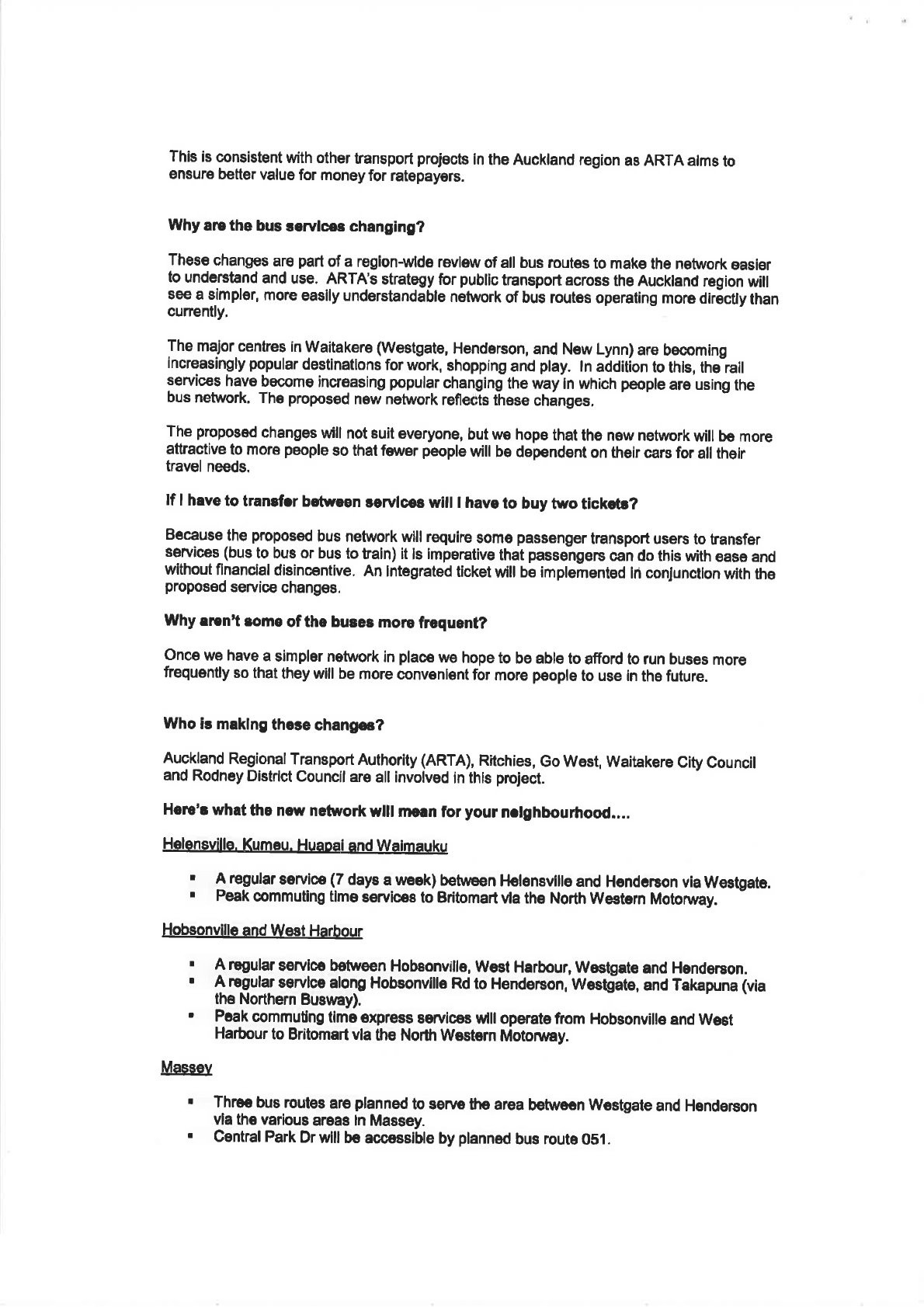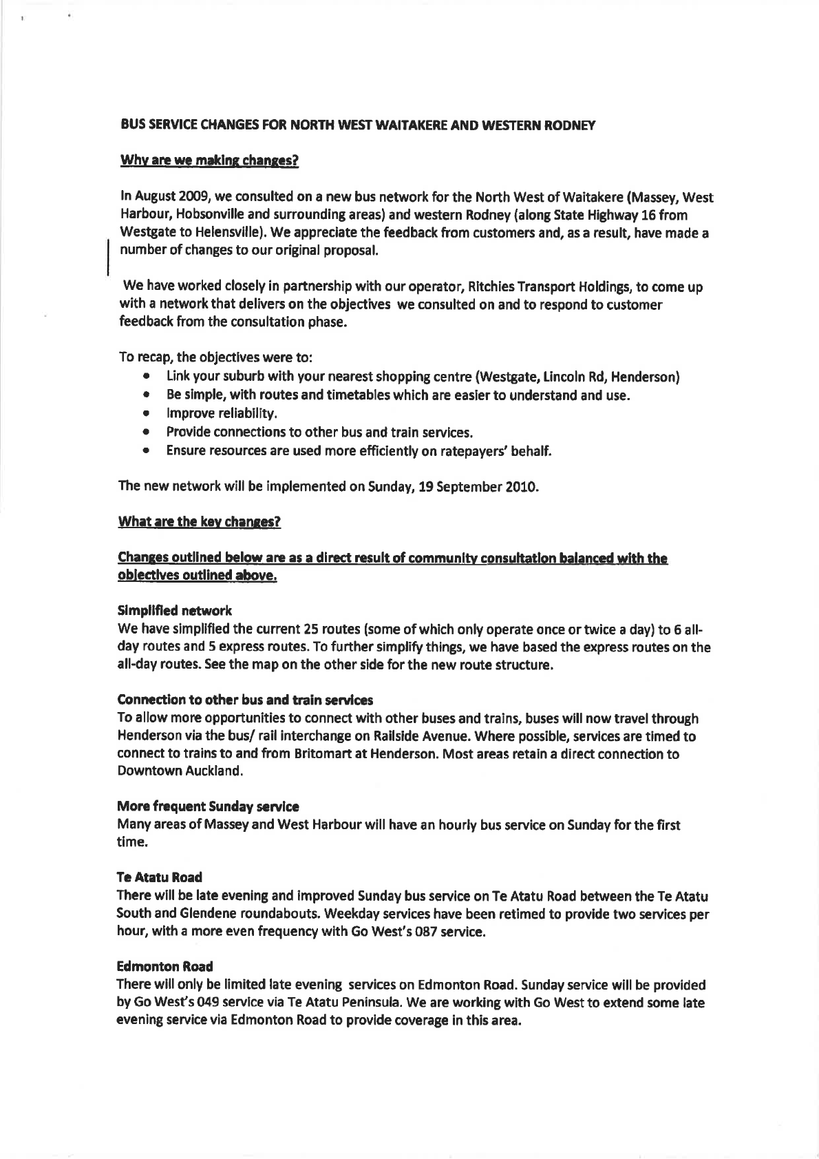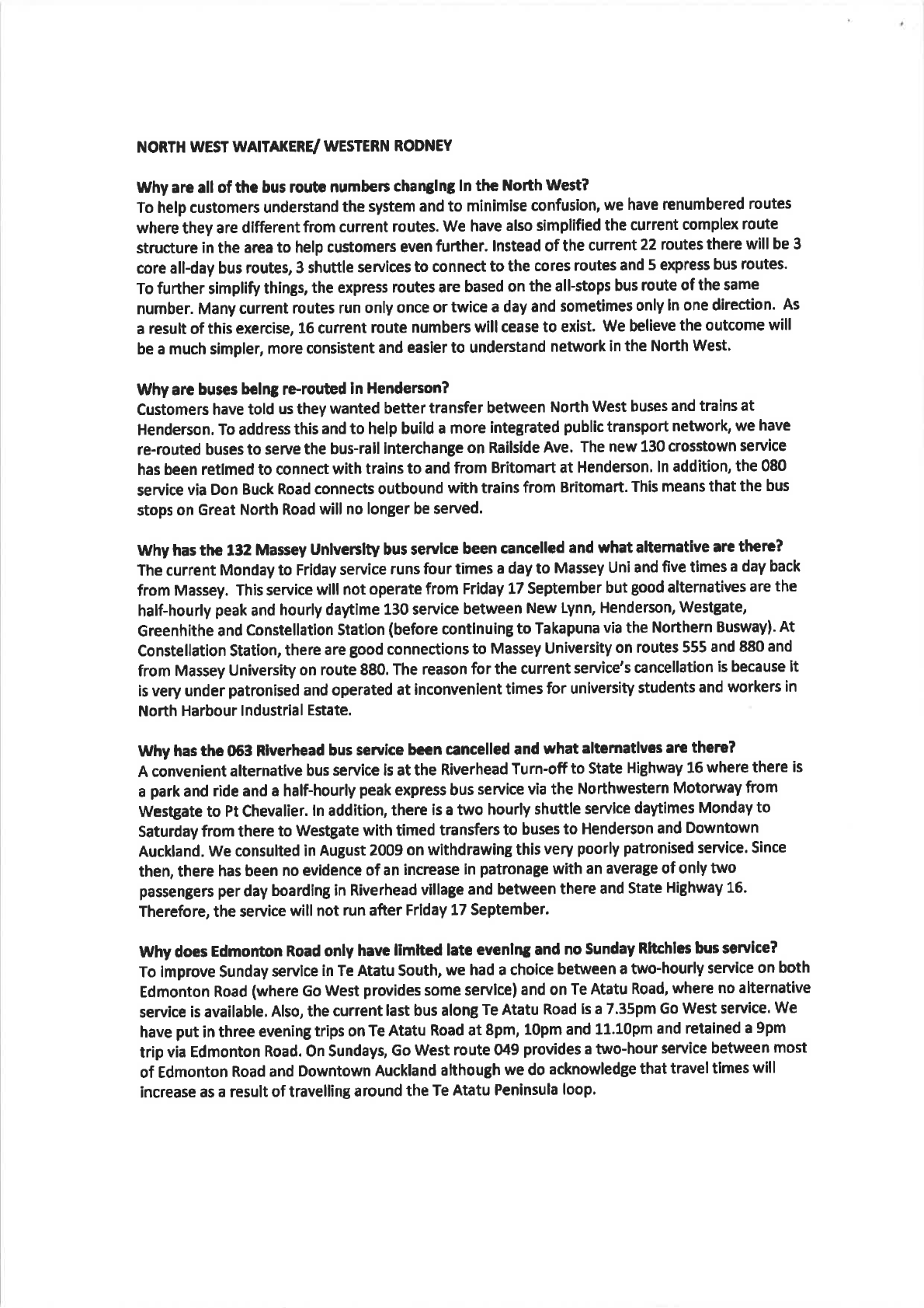 Western bus route consultation instigated in 2009. He received a response from Auckland