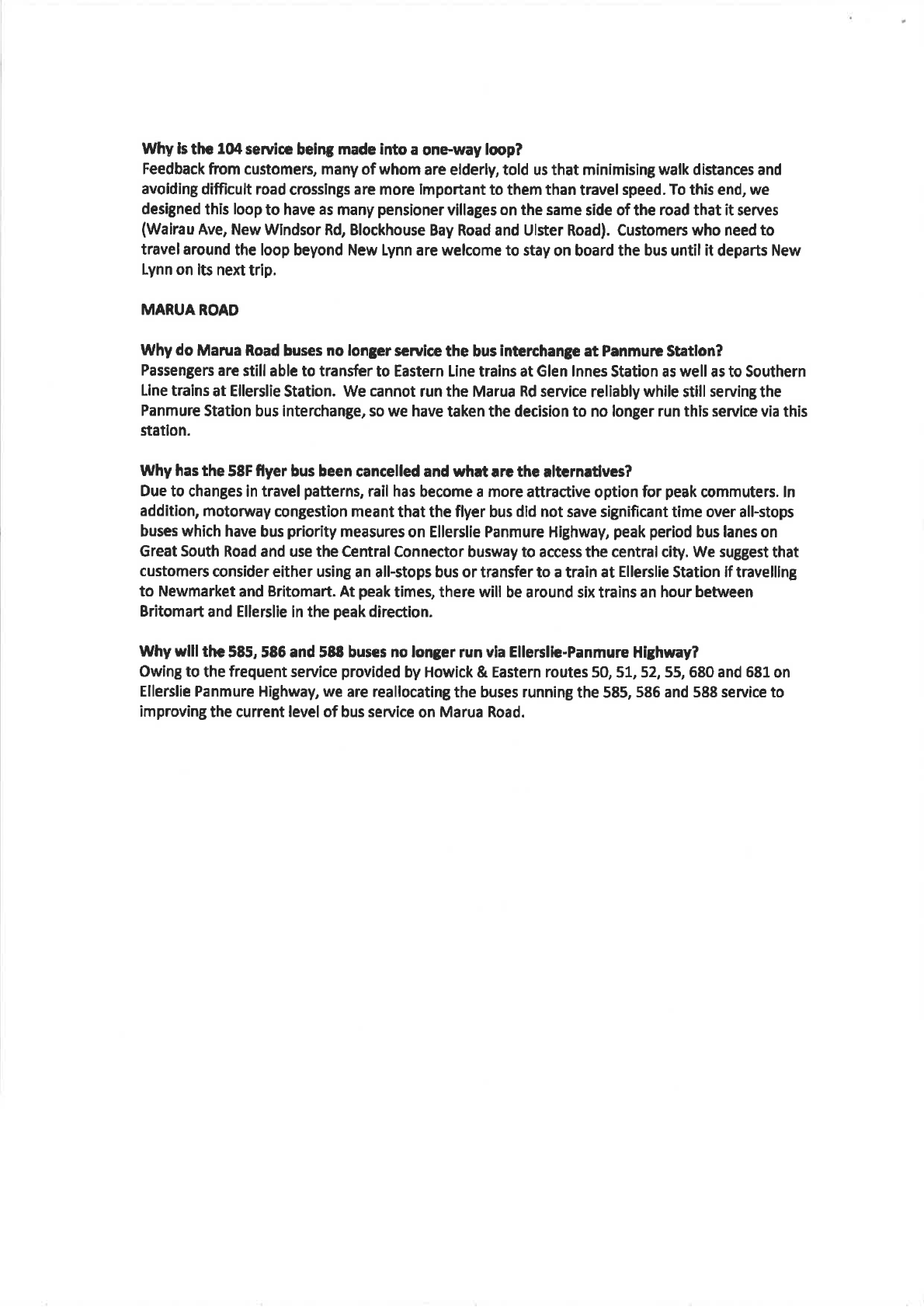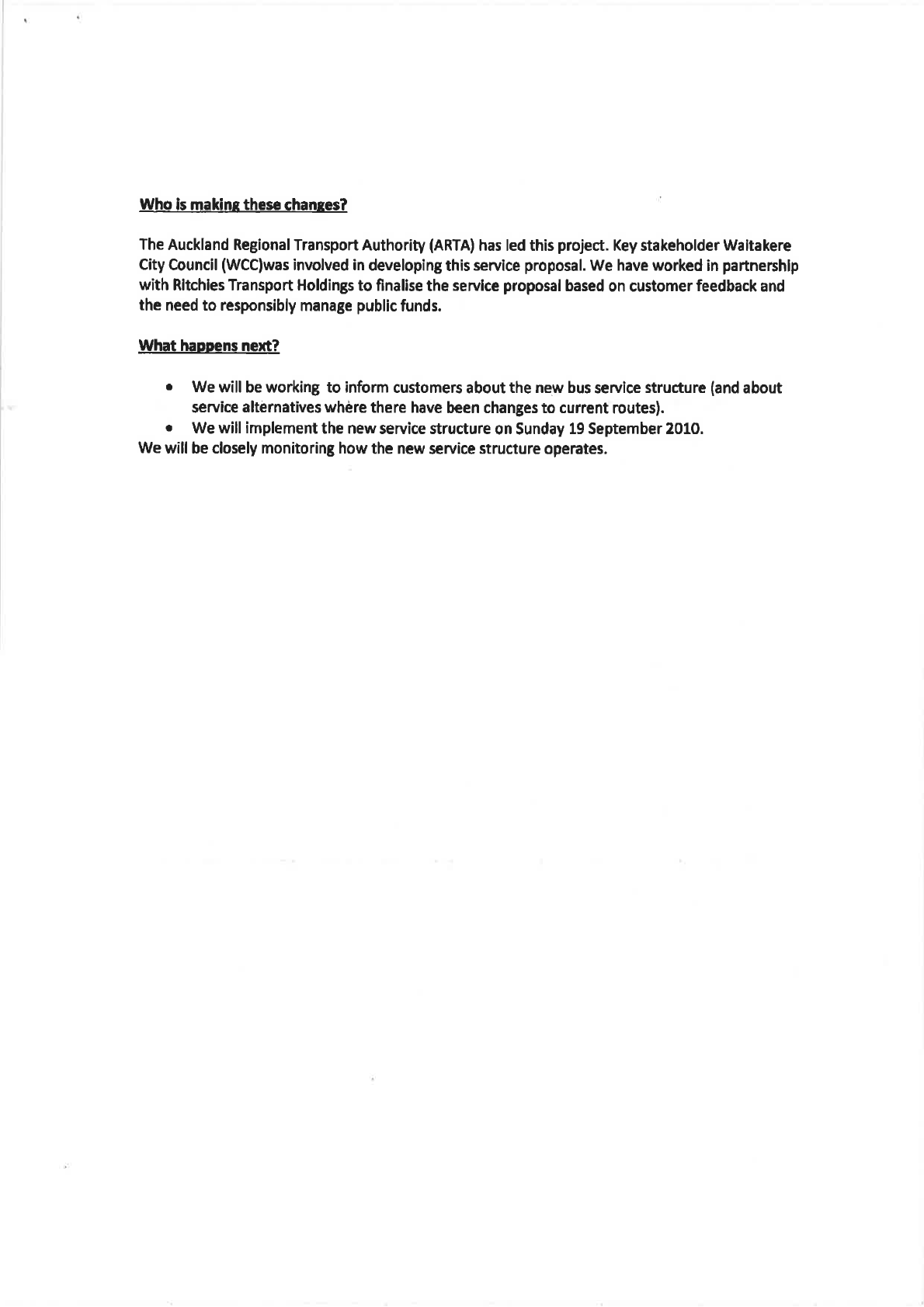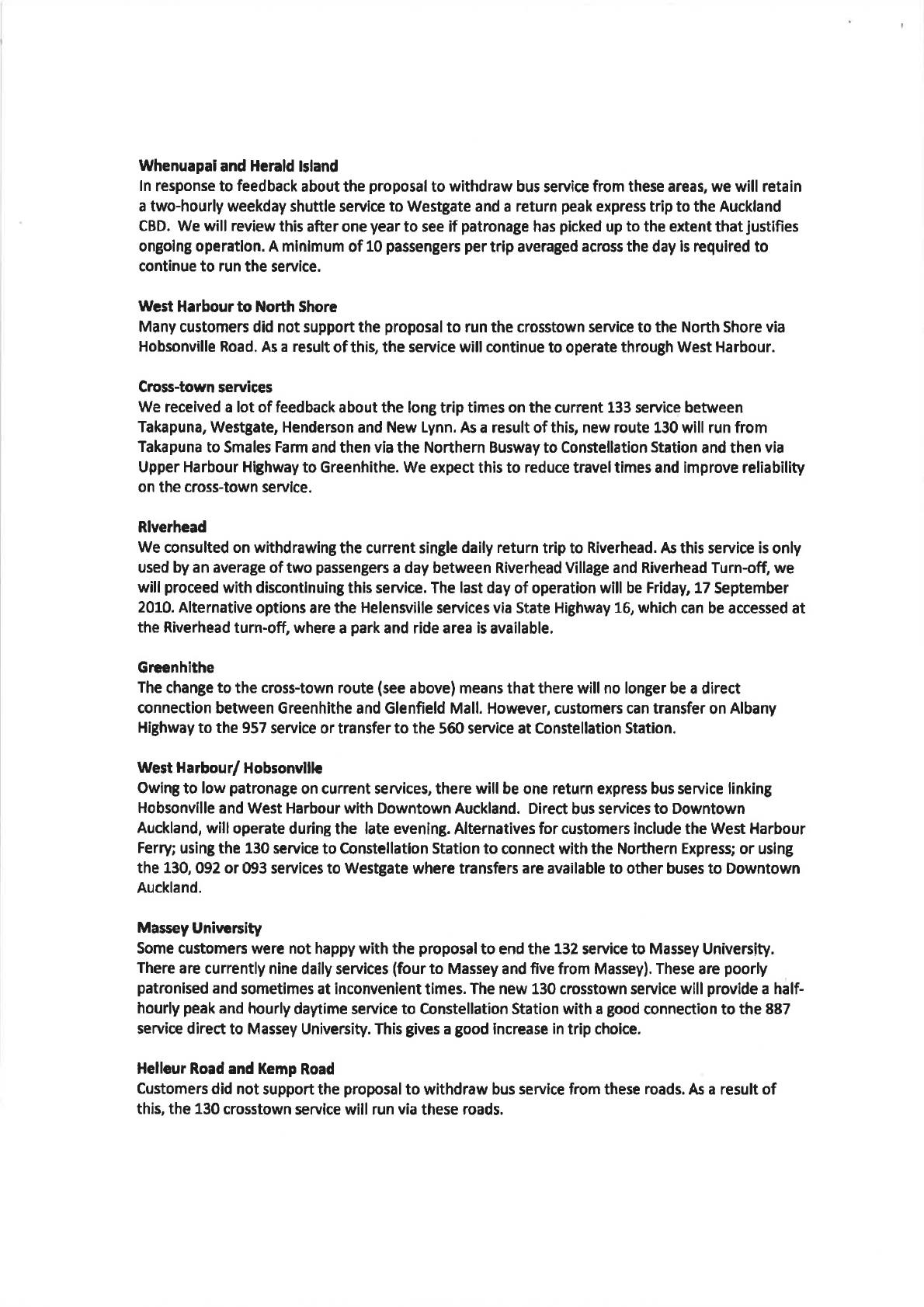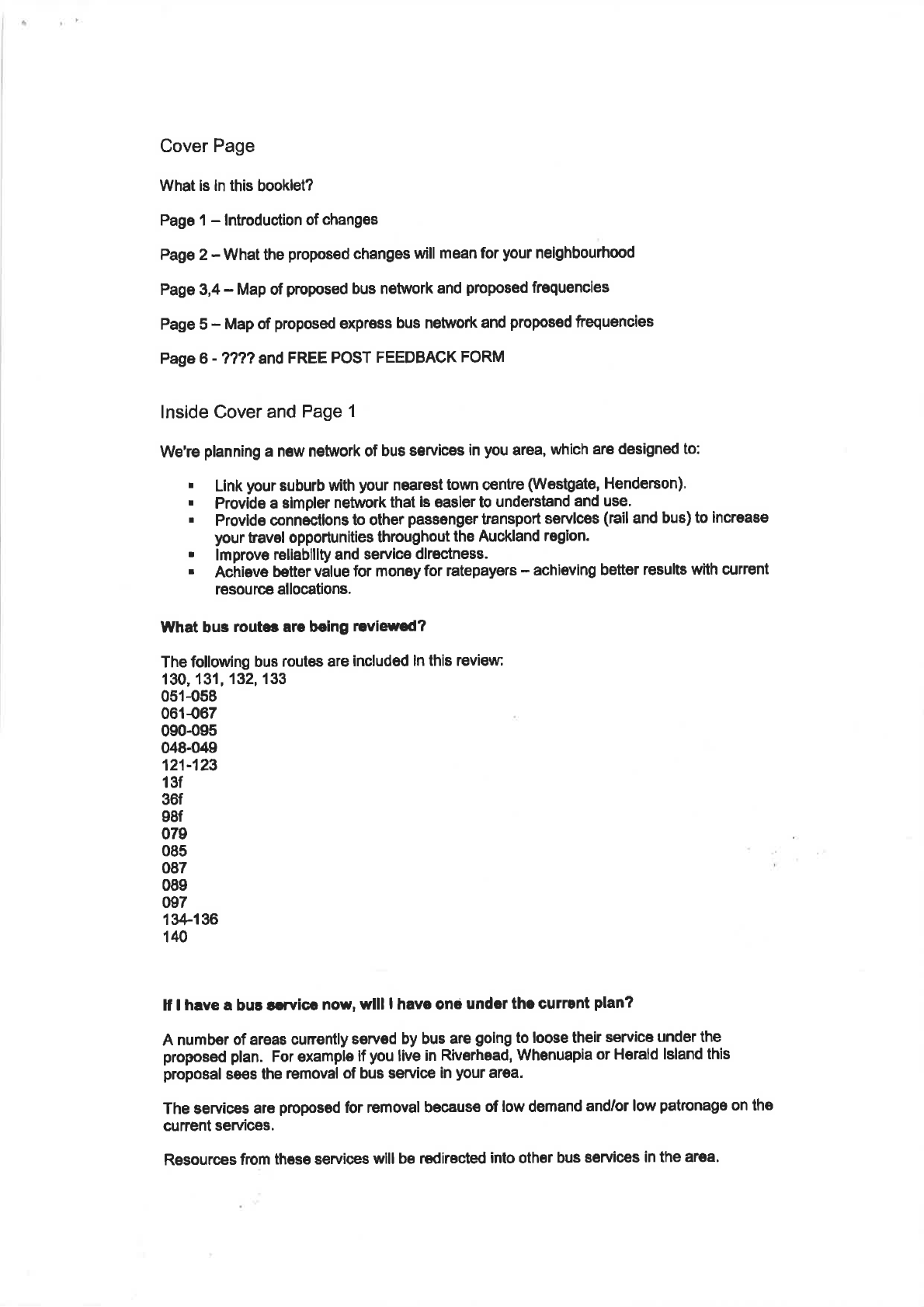 Western bus route consultation instigated in 2009. He received a response from Auckland