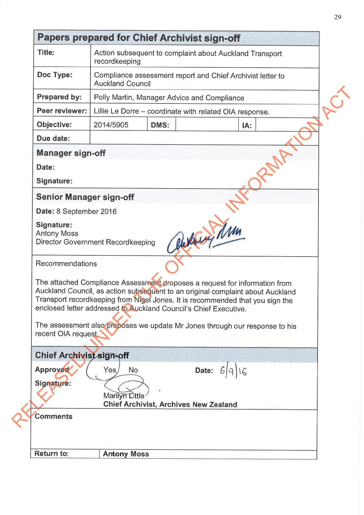 If you have any queries please contact Antony Moss, Director Government Recordkeeping