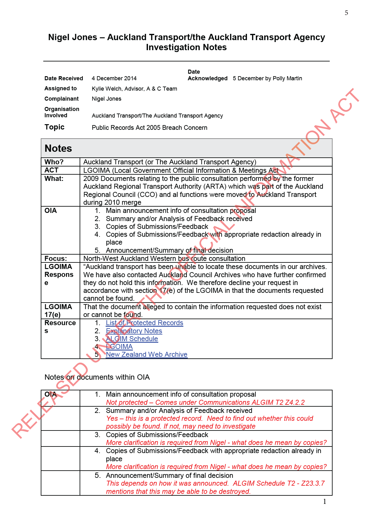 Authority and the current Auckland Transport, I feel I have the right to expect that these documents should be