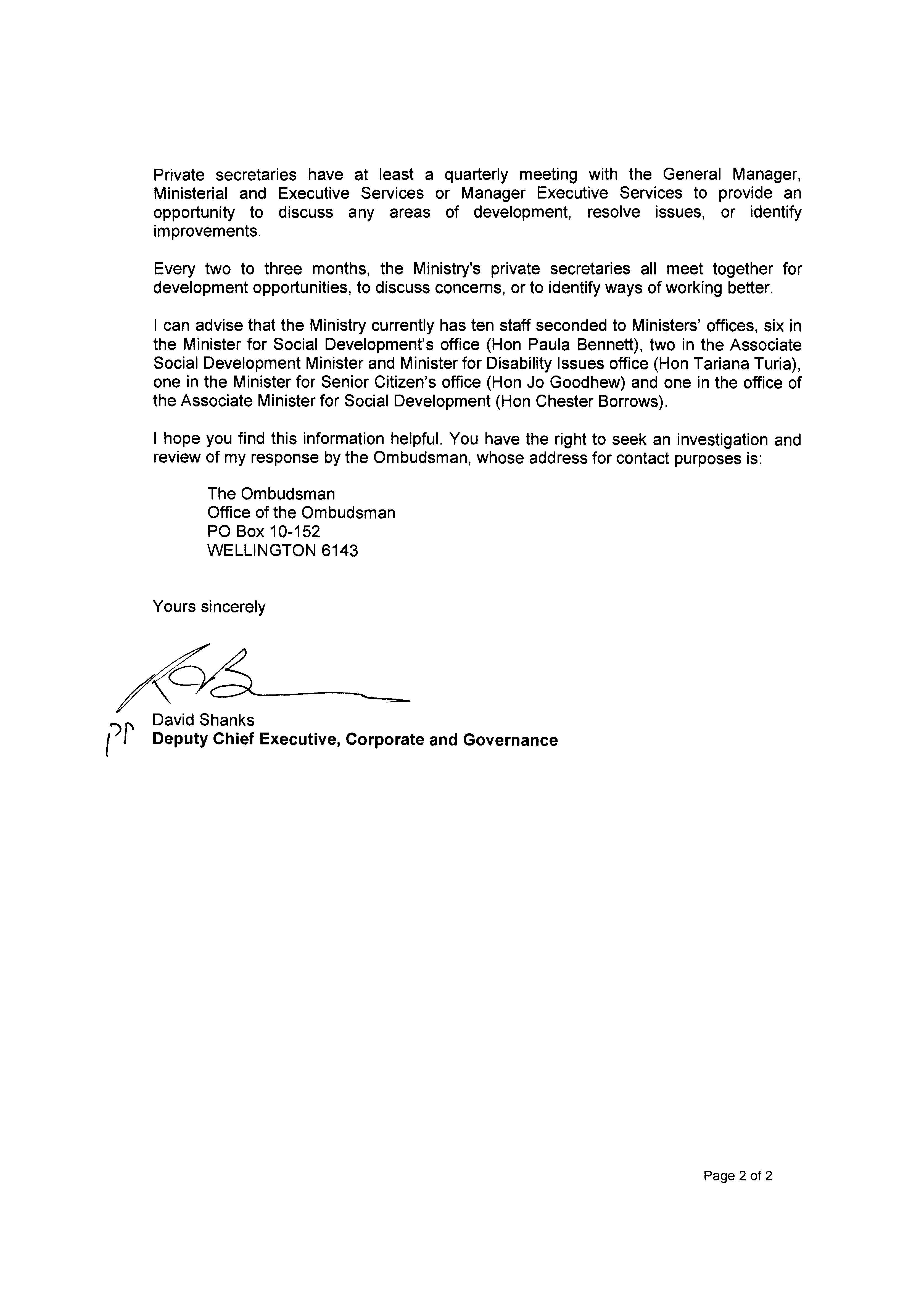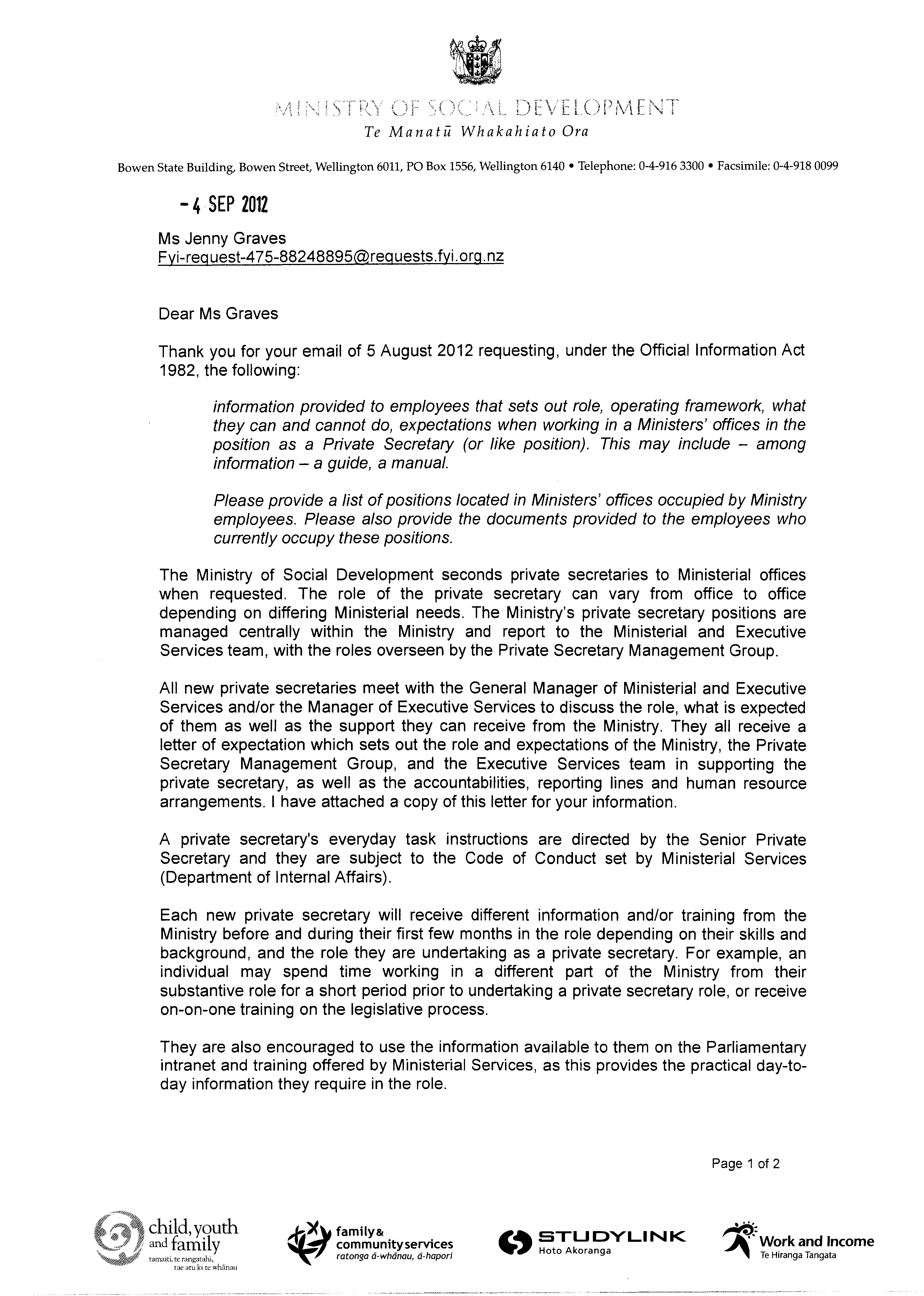 Employees in Ministers' Offices