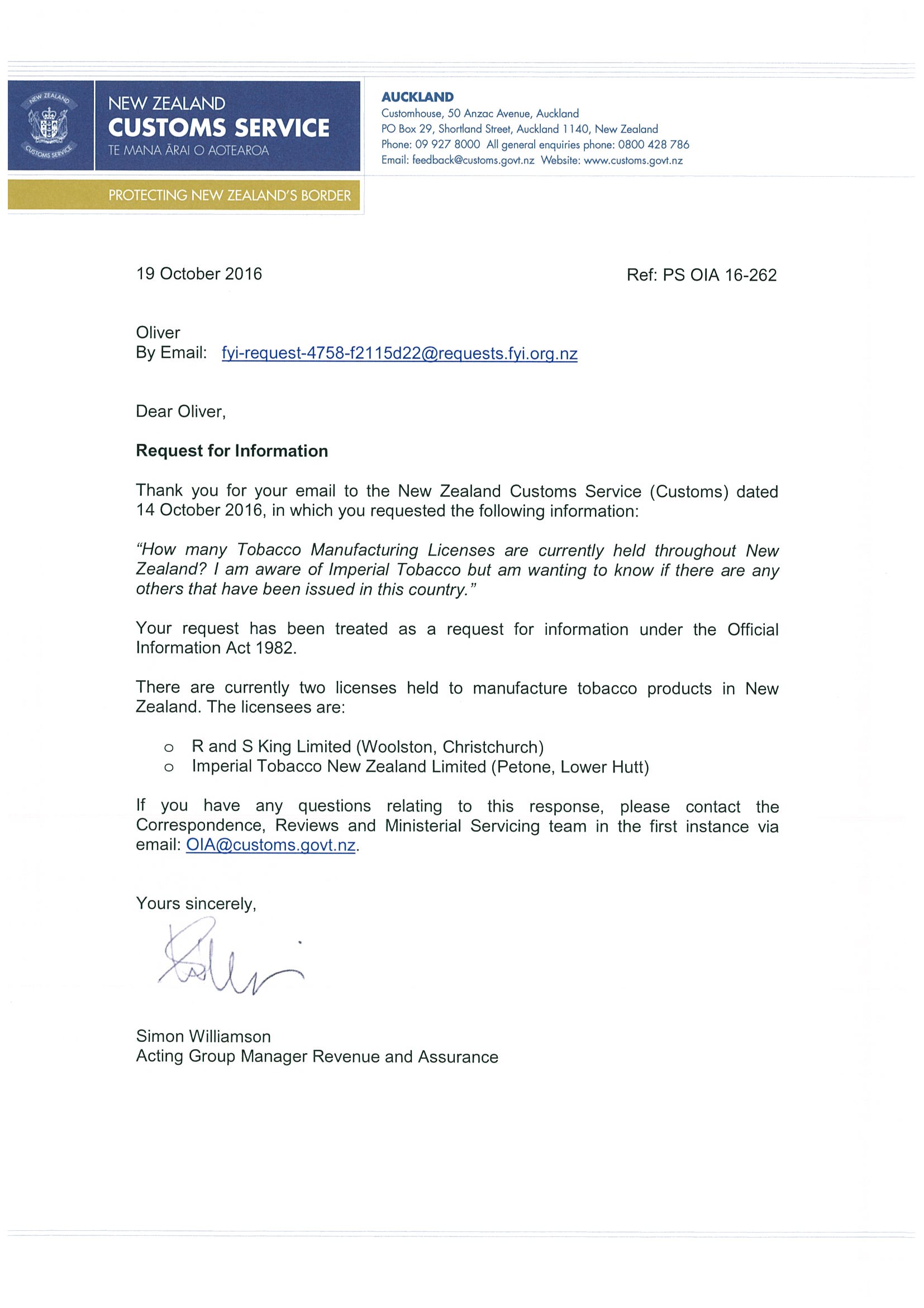 Tobacco manufacture in NZ