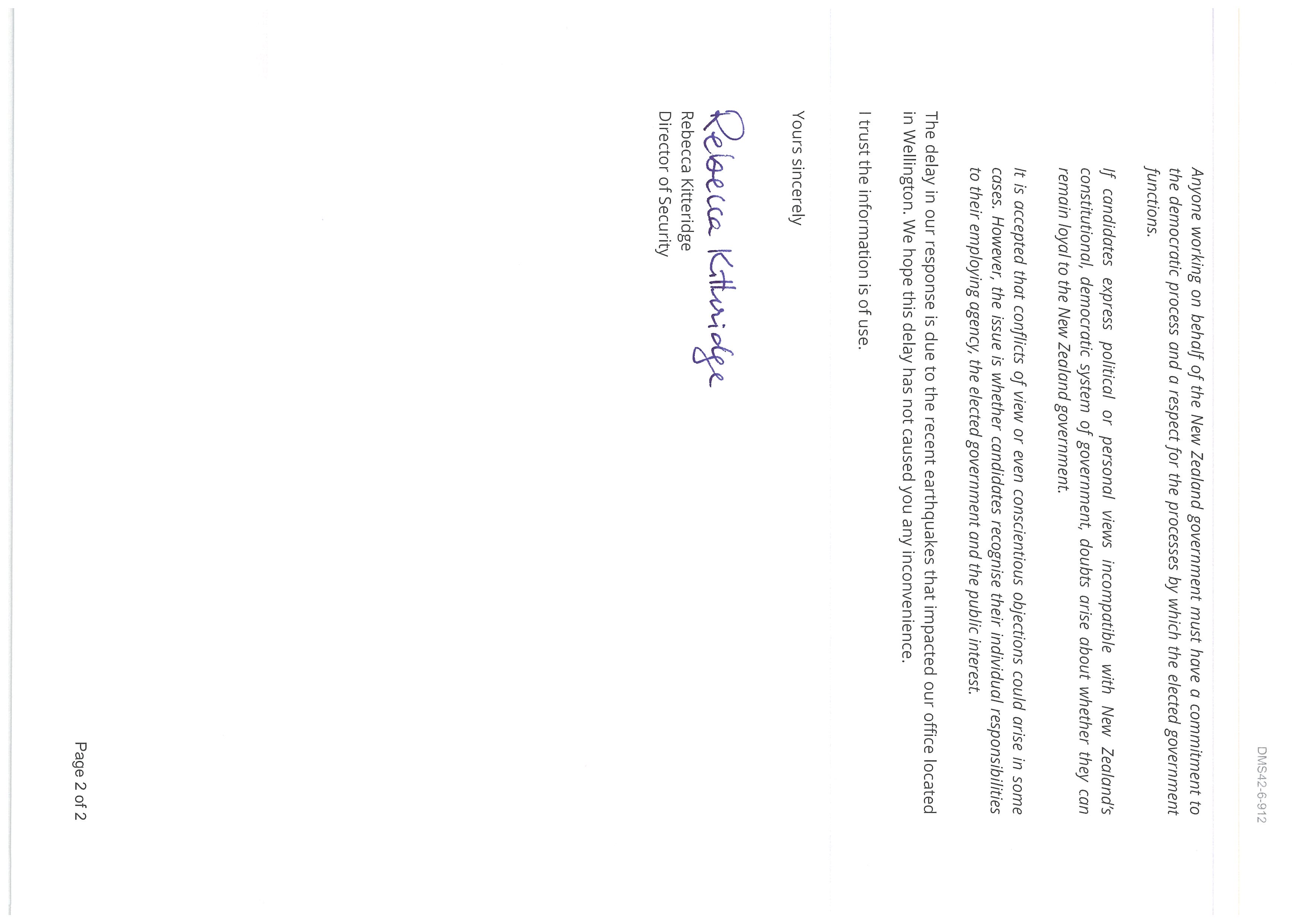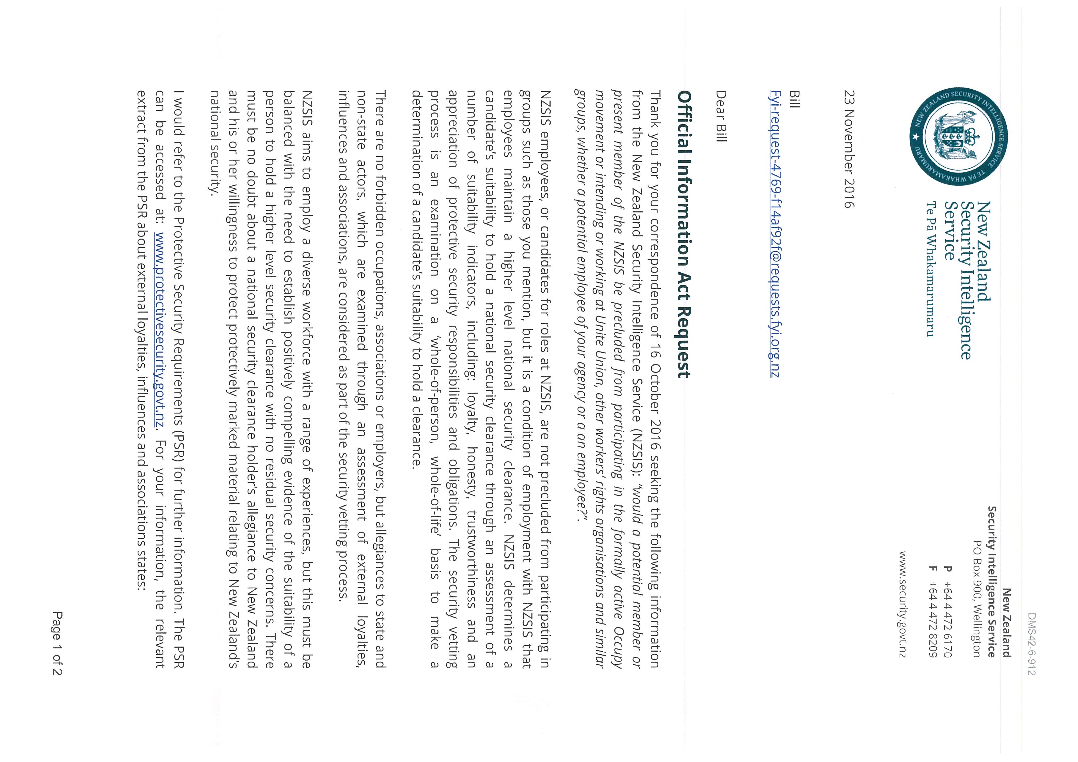 Membership of anti-capitalistist or anti government organizations by employees of the NZSIS