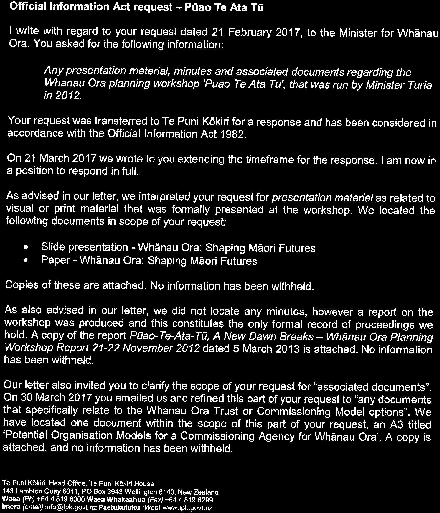Government papers that specifically make reference to options for delivery of Whānau Ora