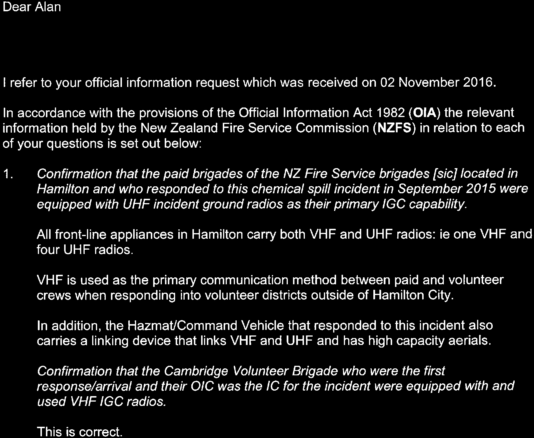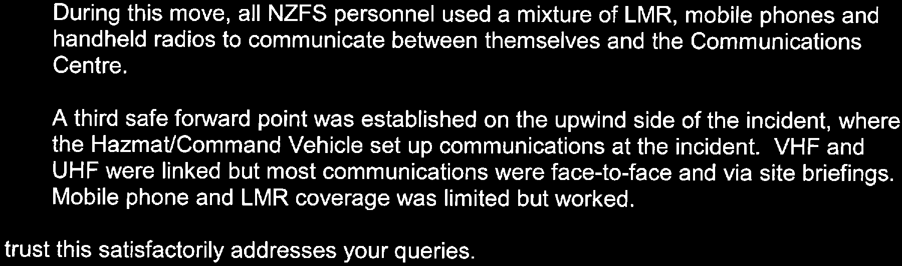 Failure of Incident Ground Communications at 3rd Alarm Chemical Spill in the Waikato