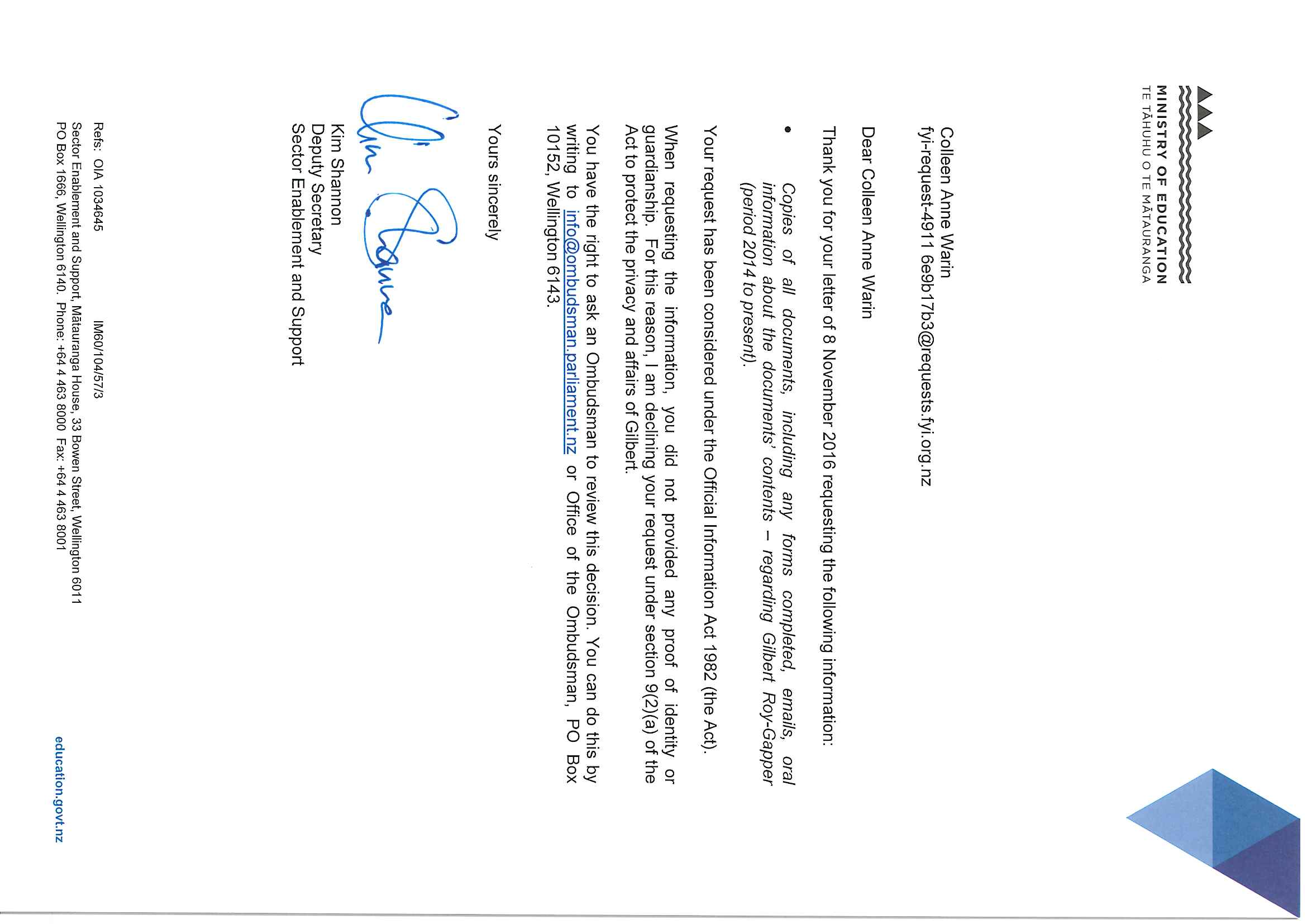 Gilbert Roy-Gapper and Napier Intermediate School - copy of documentation 2014 to present