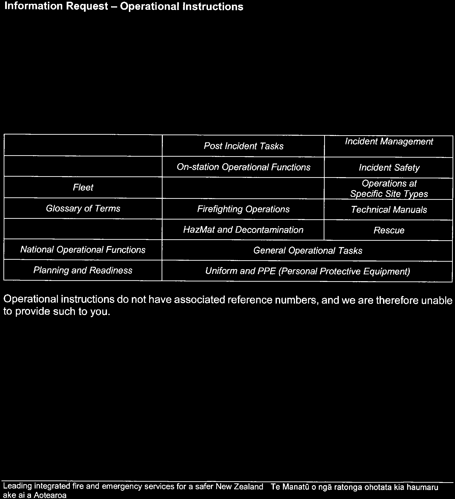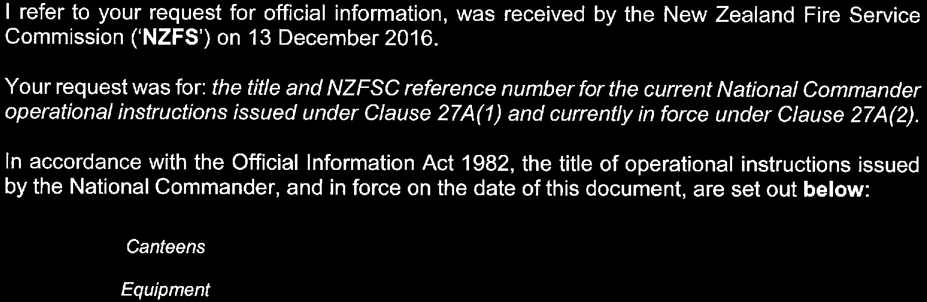 Fire Service Act 1975 Clause 27A List of Current Operational Instructions