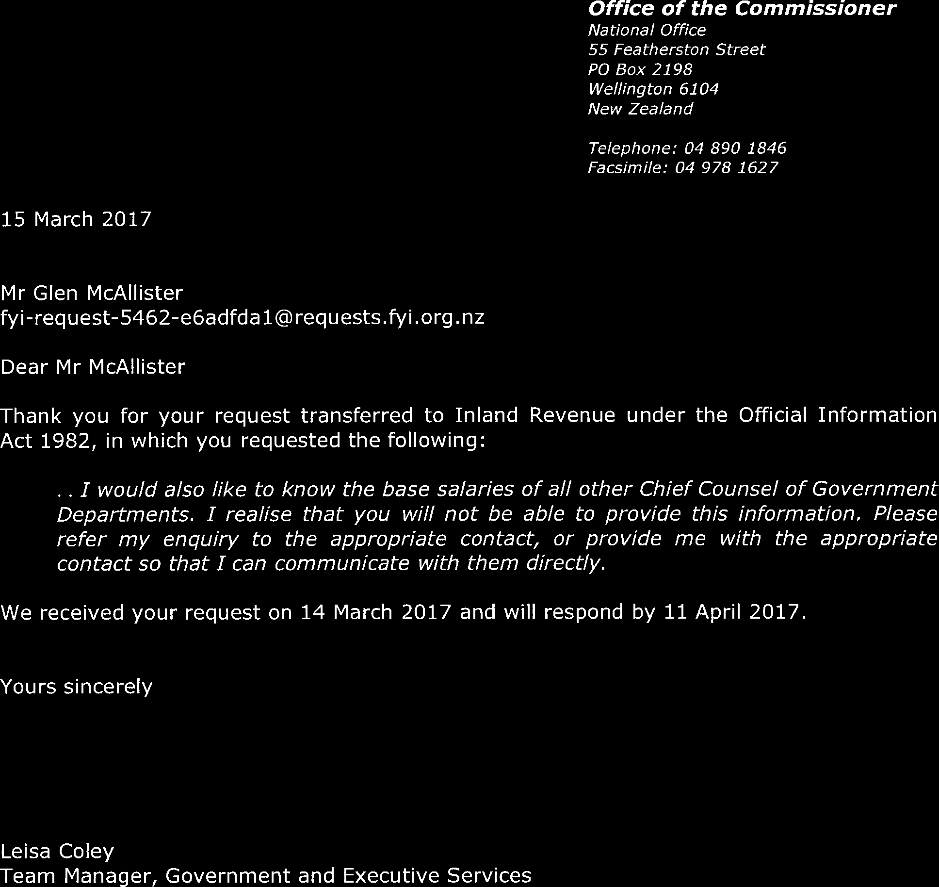 Annual salary of chief legal counsel for the Ministry of Social Development