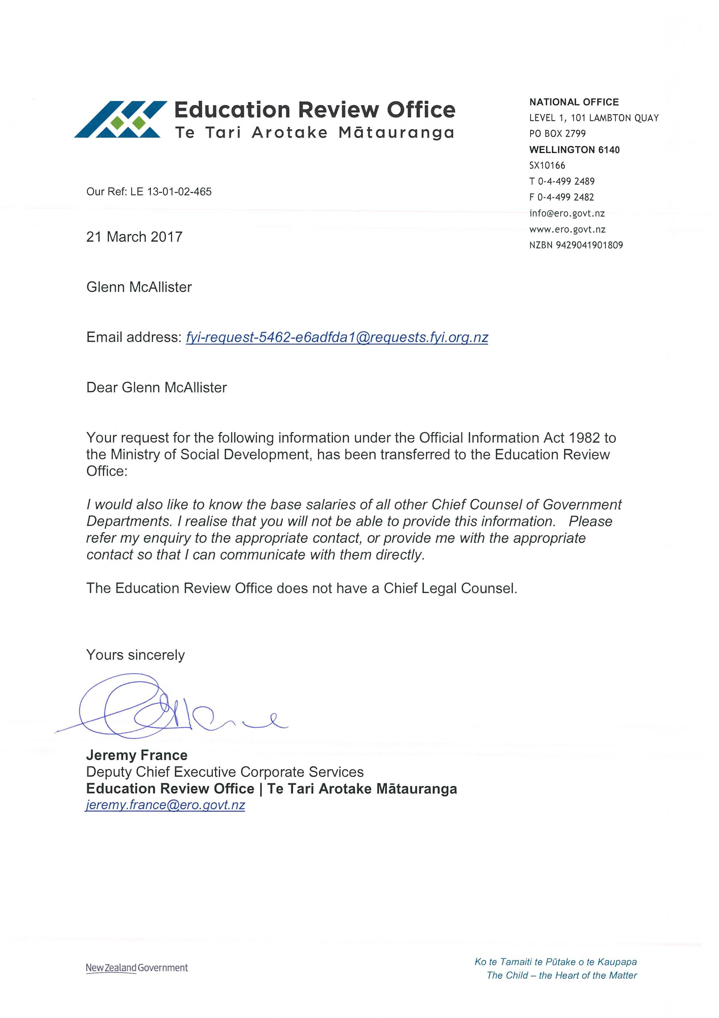 Annual salary of chief legal counsel for the Ministry of Social Development