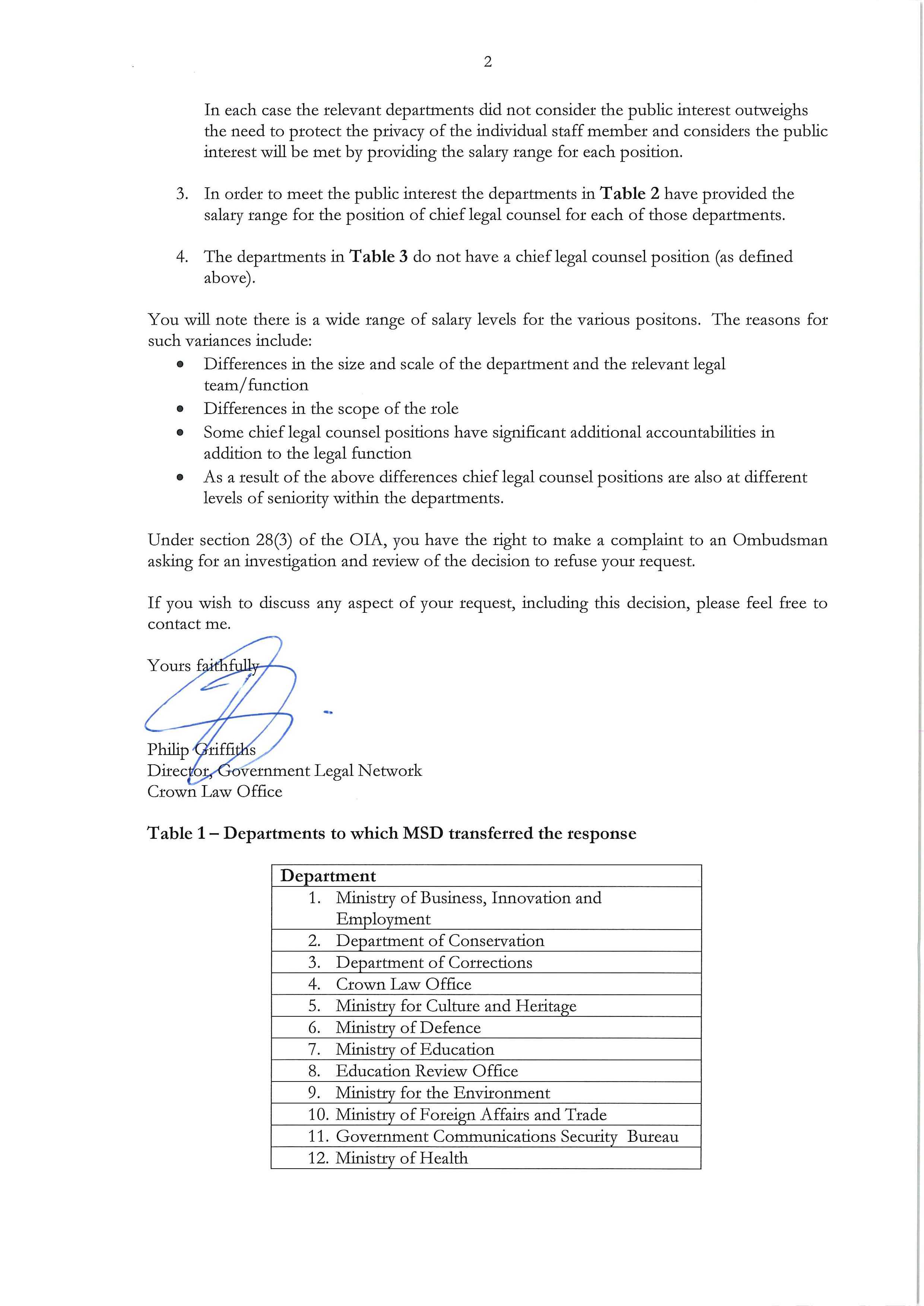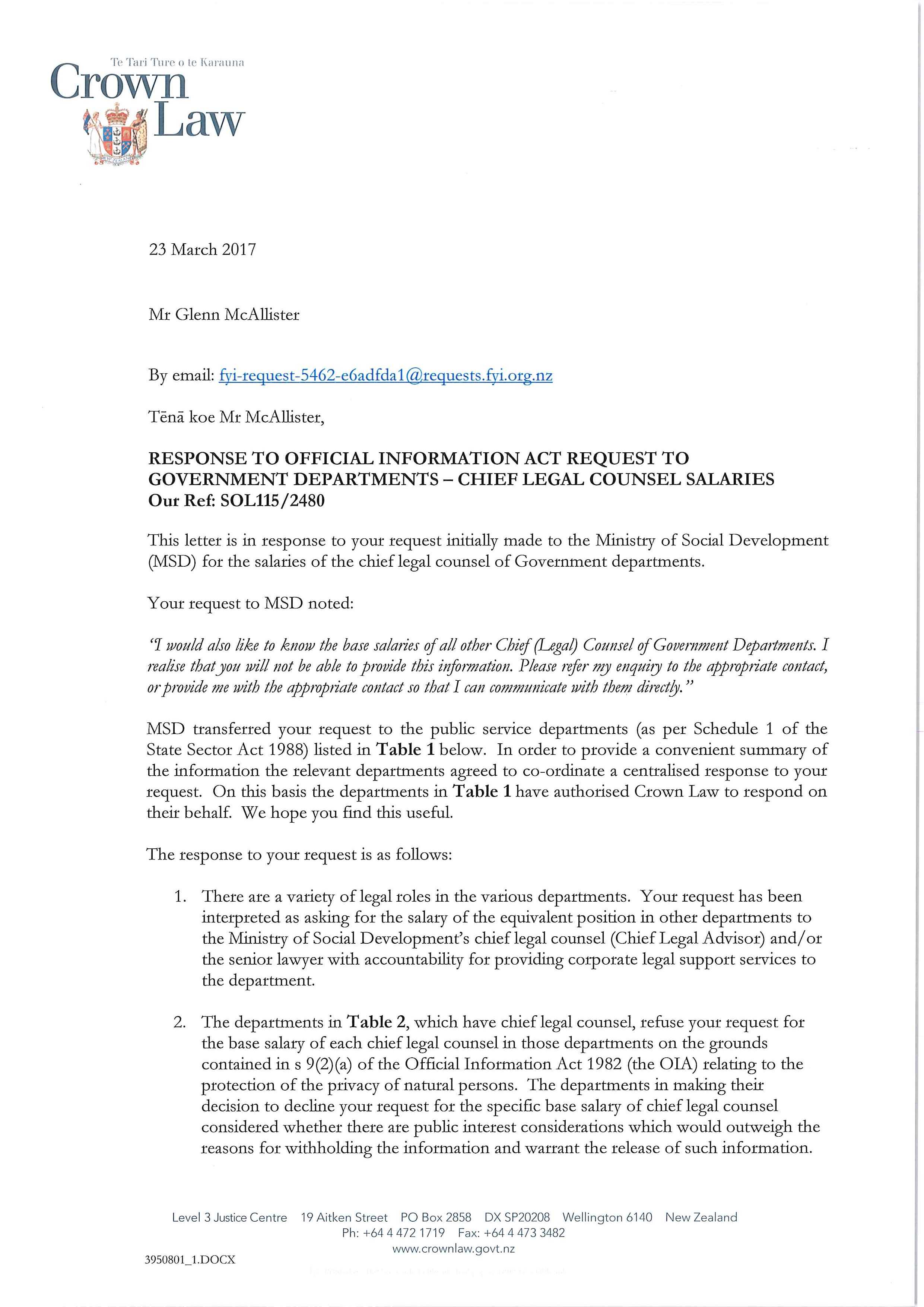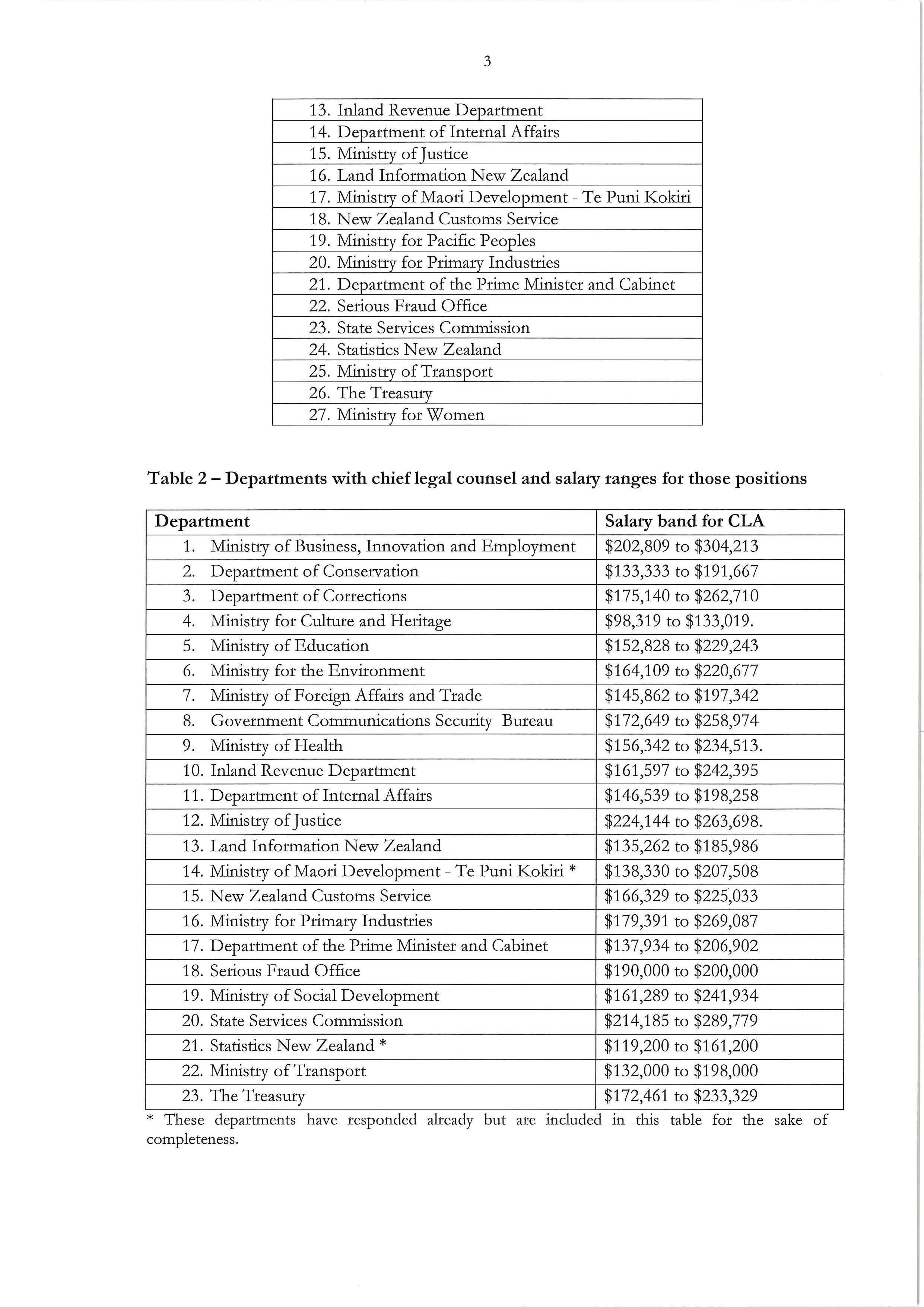 Annual salary of chief legal counsel for the Ministry of Social Development