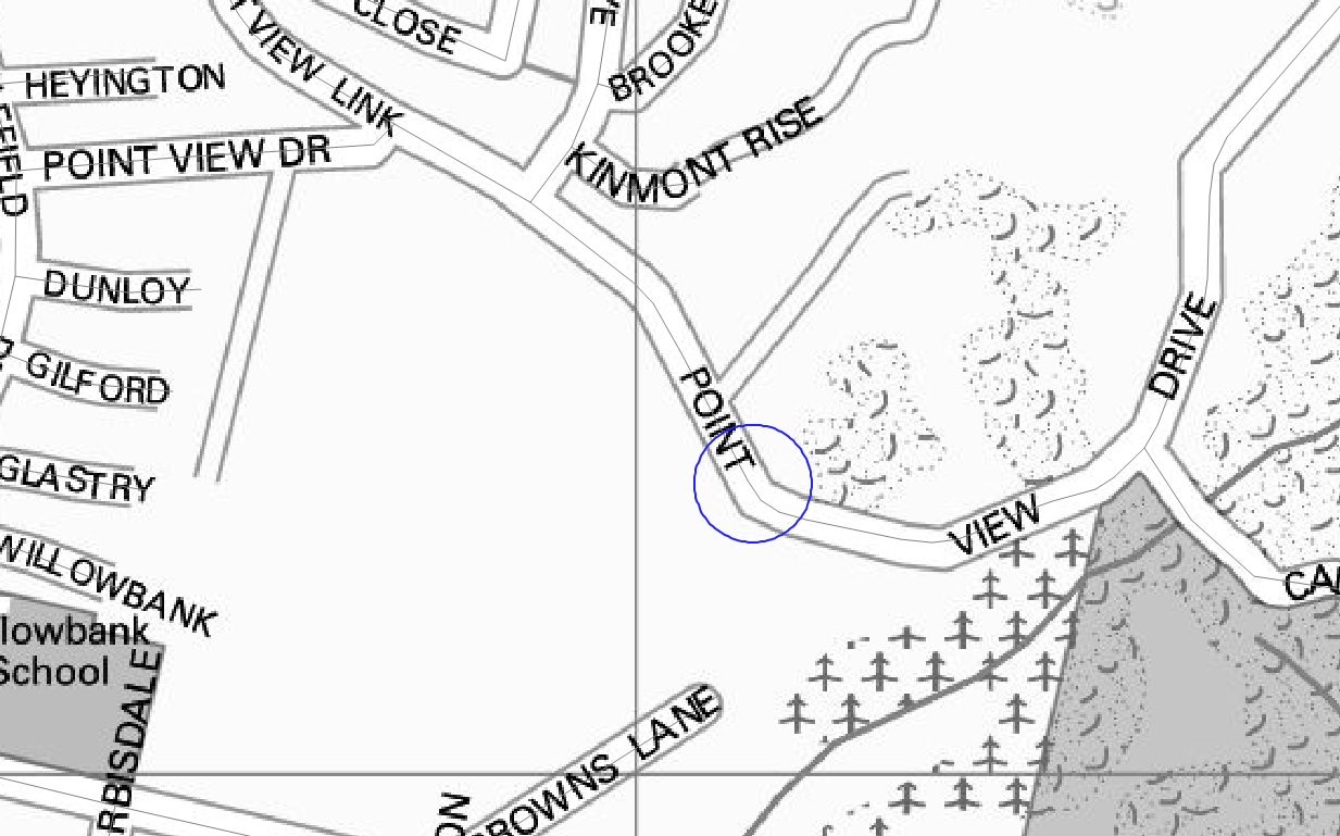 Minor crash – August 2007- Car westbound on Point View Drive, lost control on right a right hand bend,