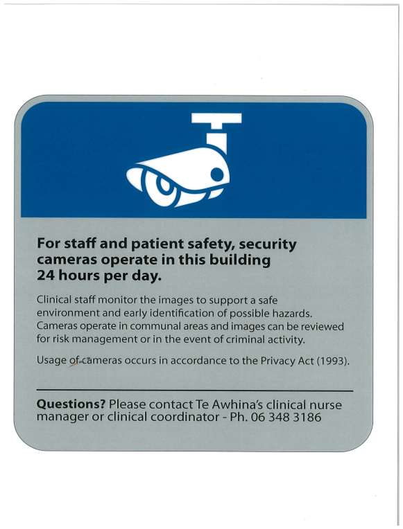 For safety and security of service users/tangata whaiora, staff and visitors, CCTV wil be placed