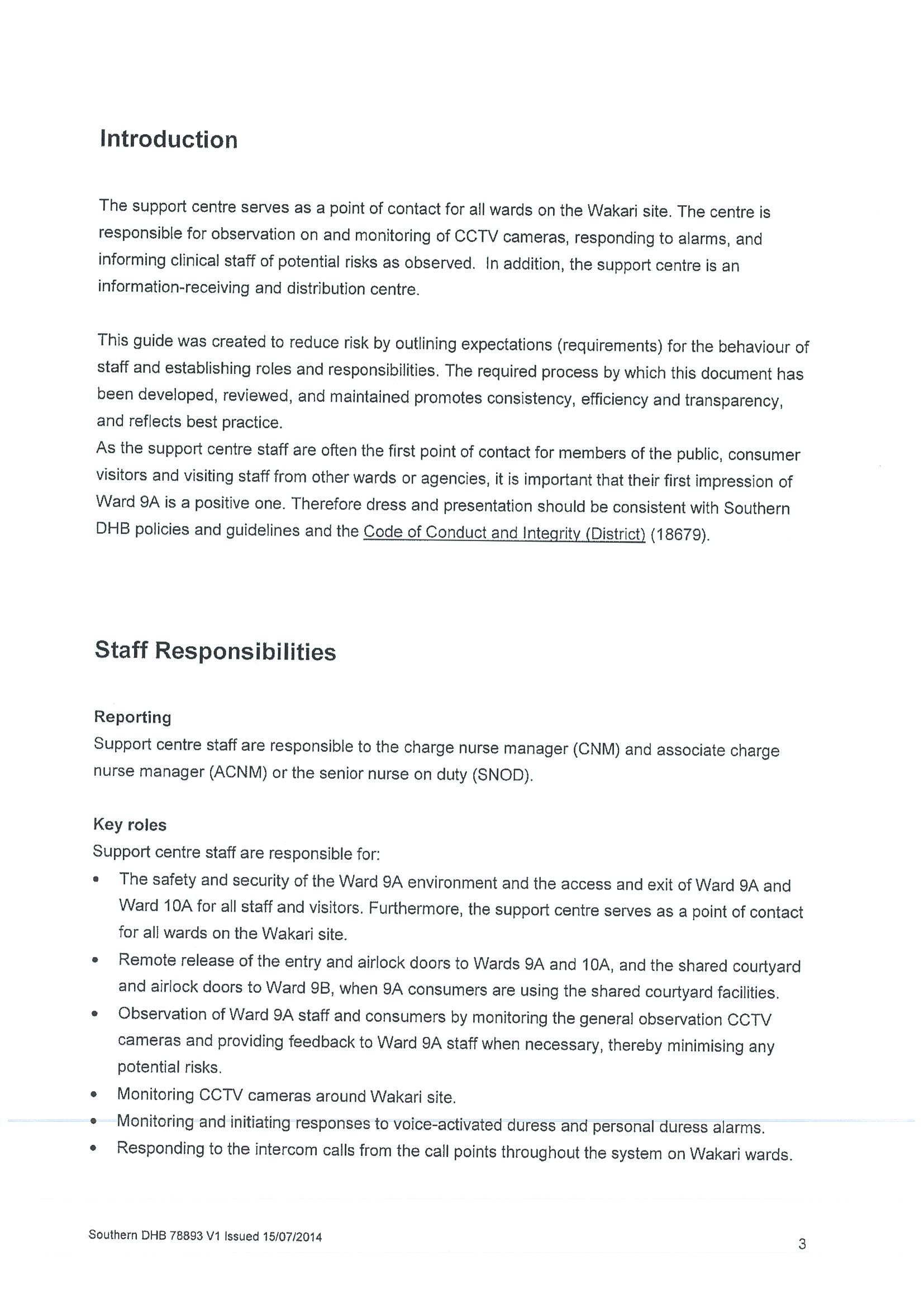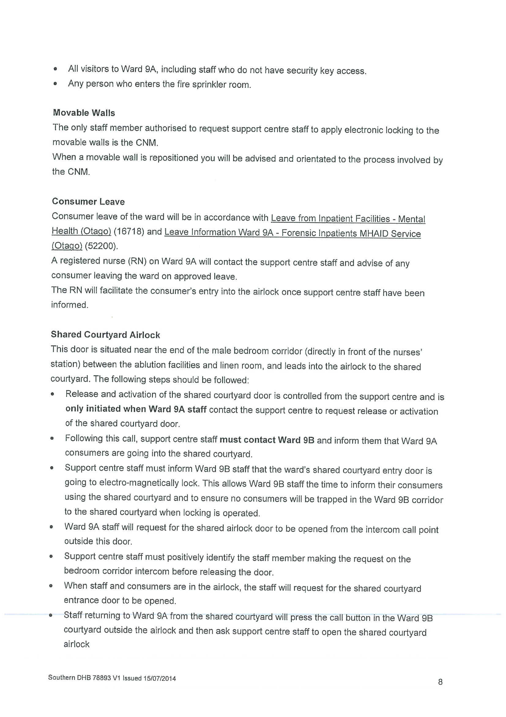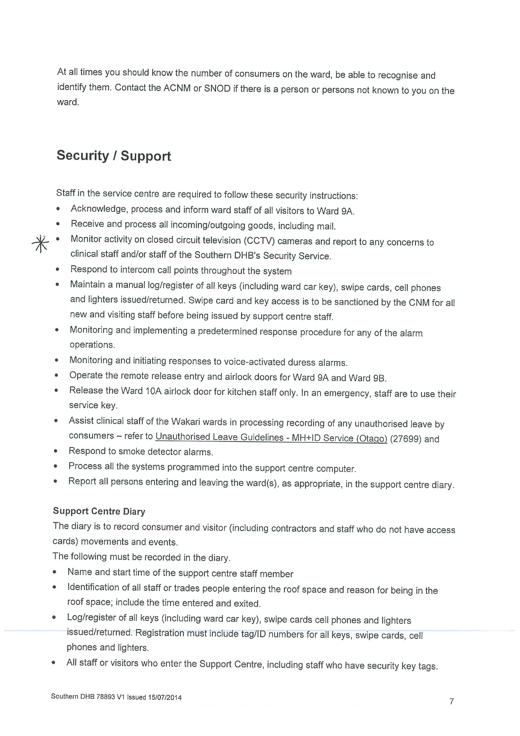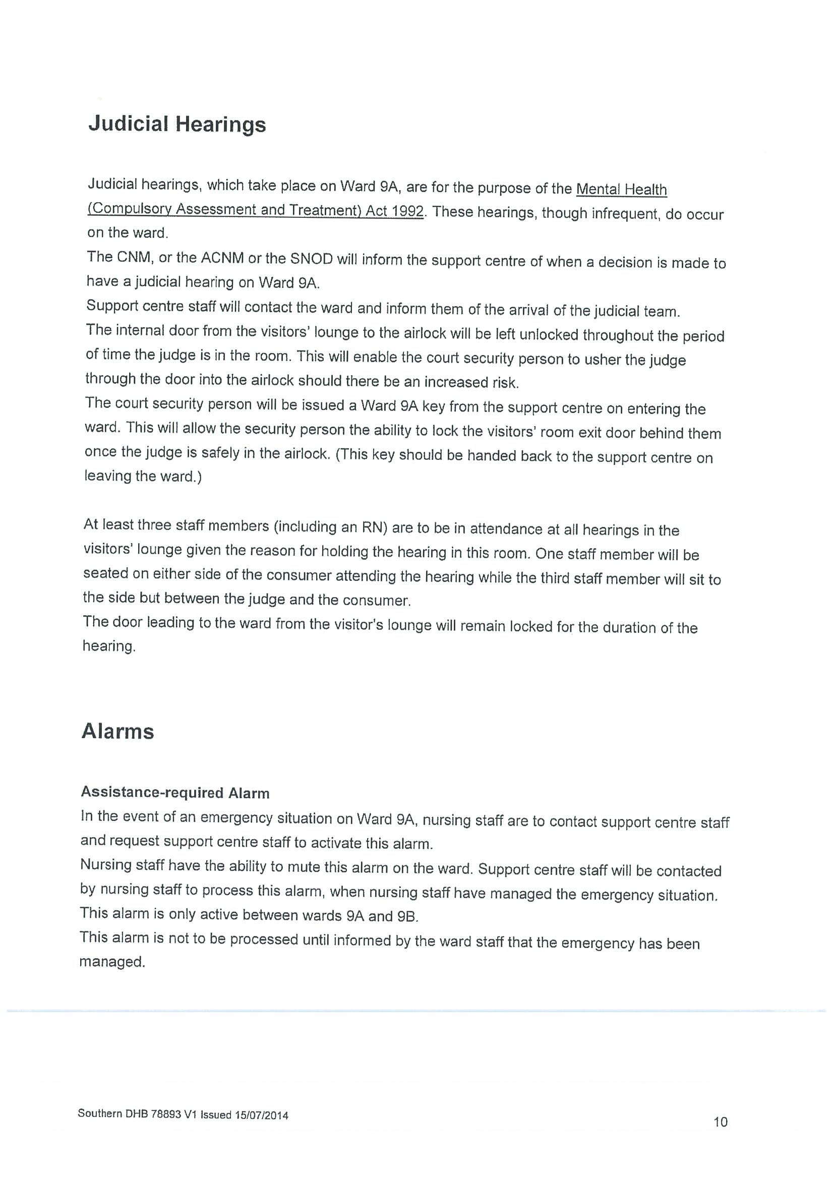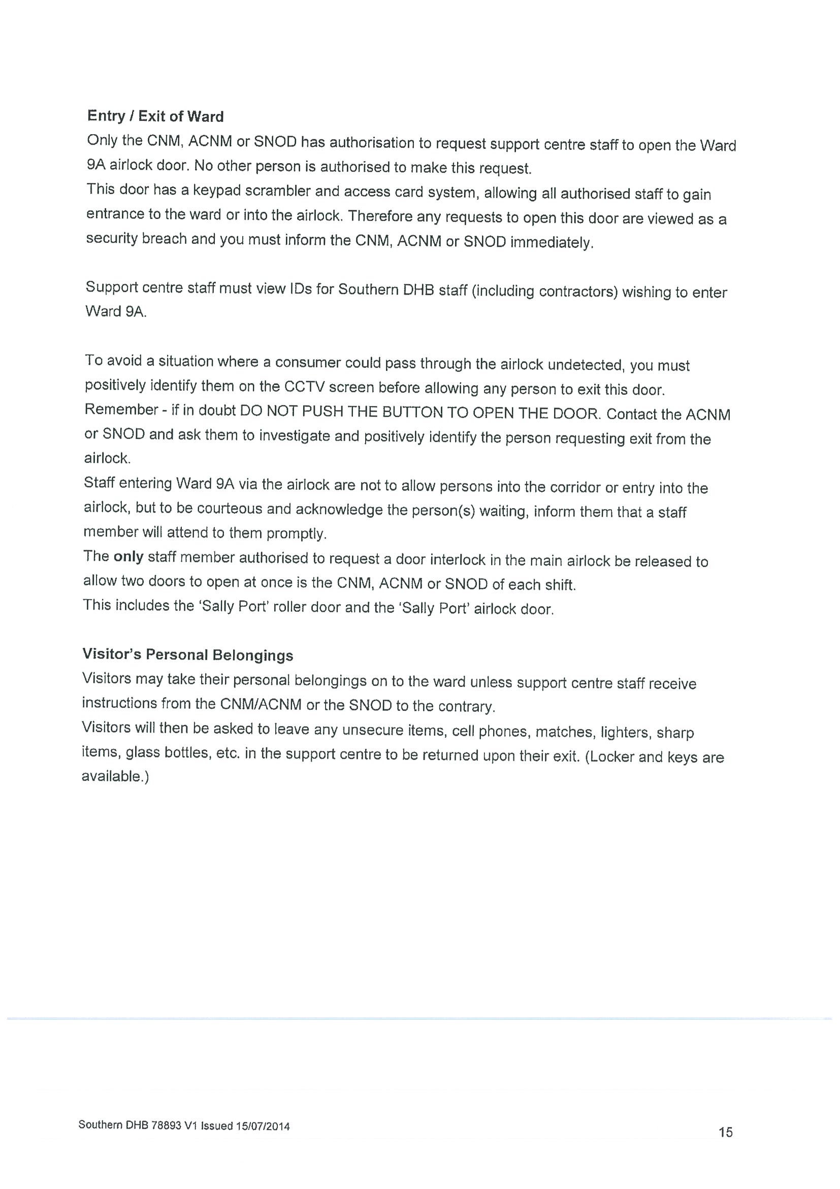 Policy relating to security camera use in adult mental health inpatient unit