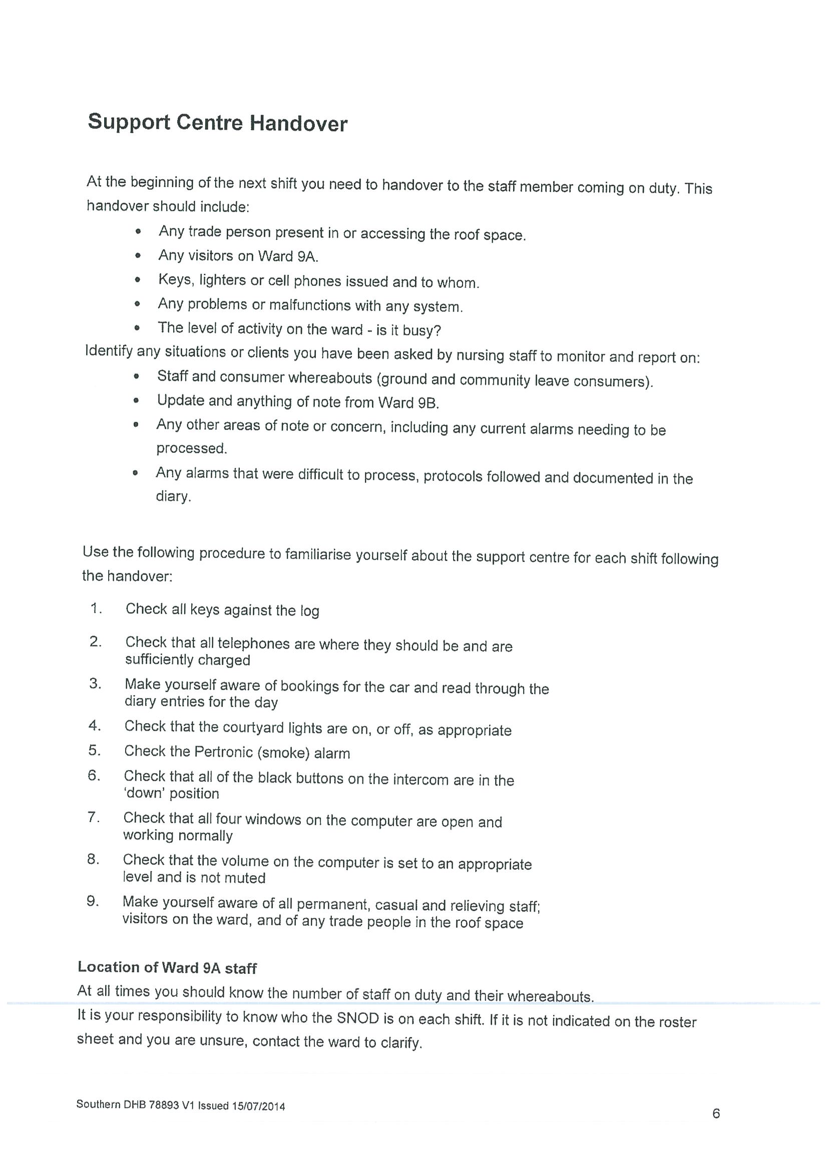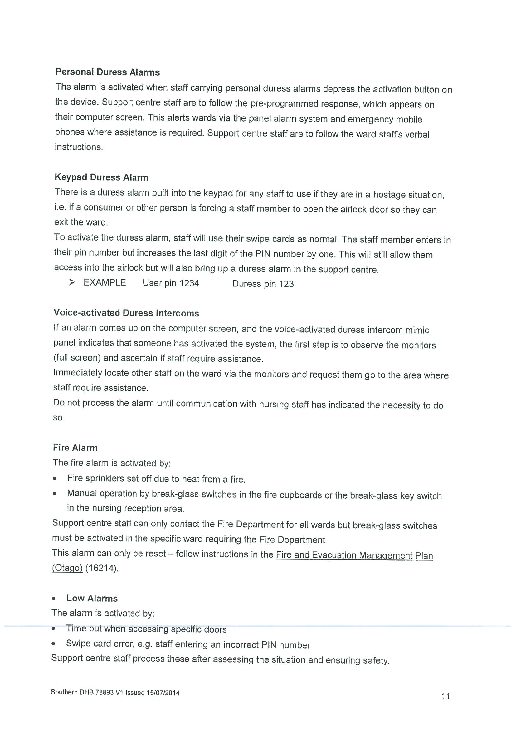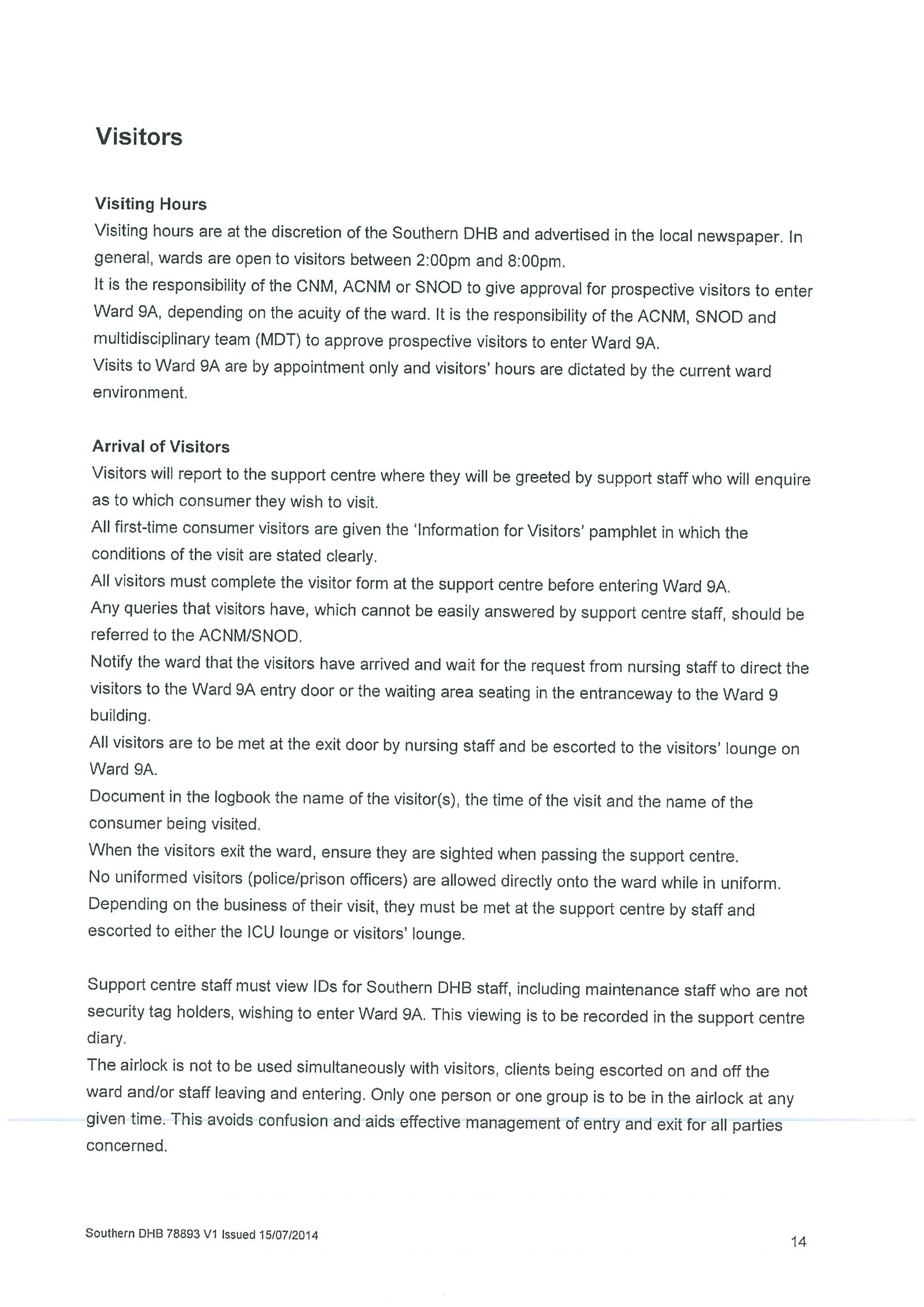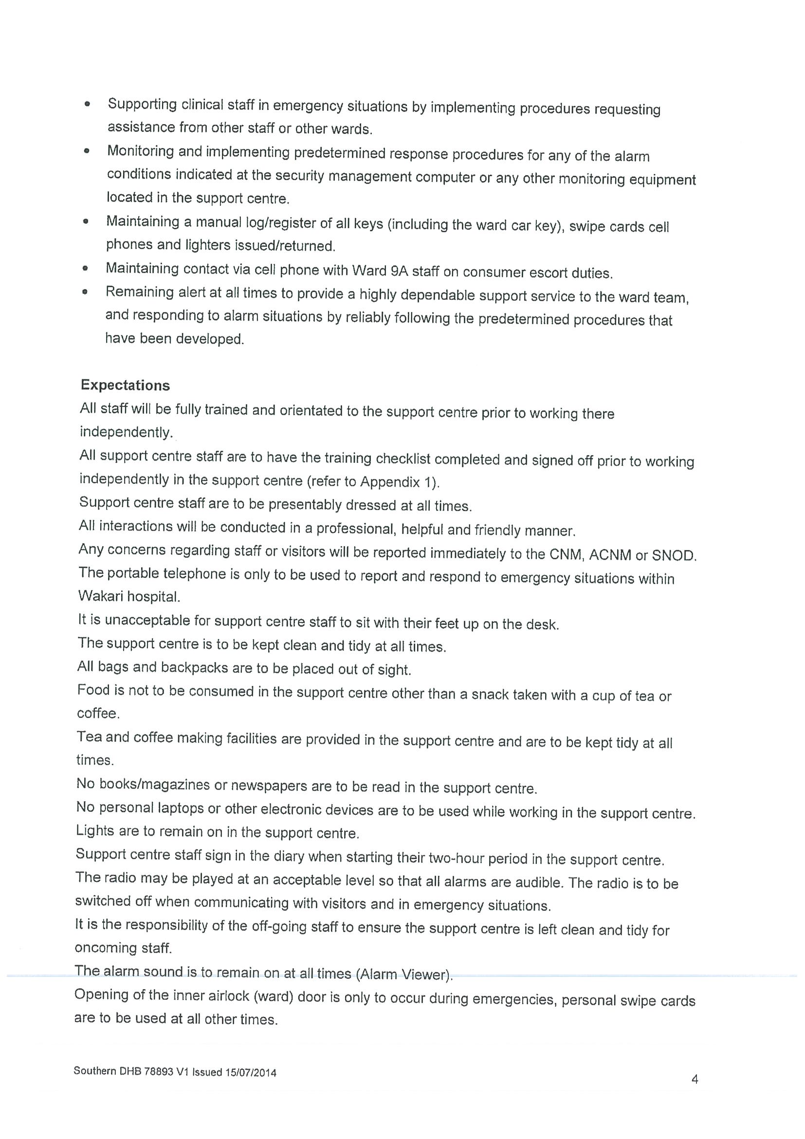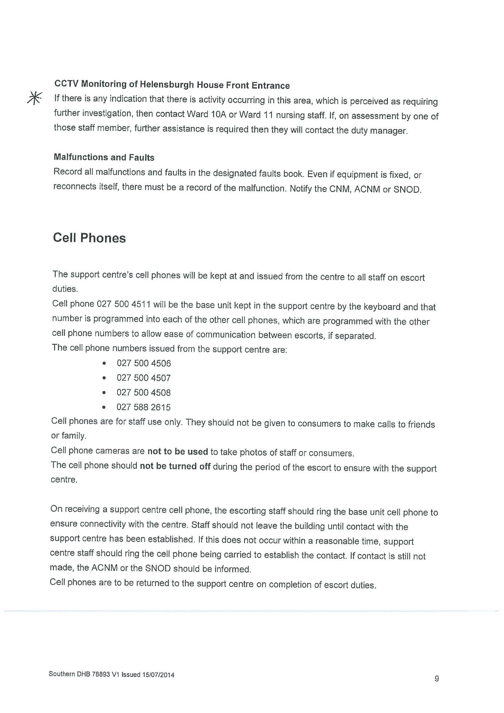 Policy relating to security camera use in adult mental health inpatient unit