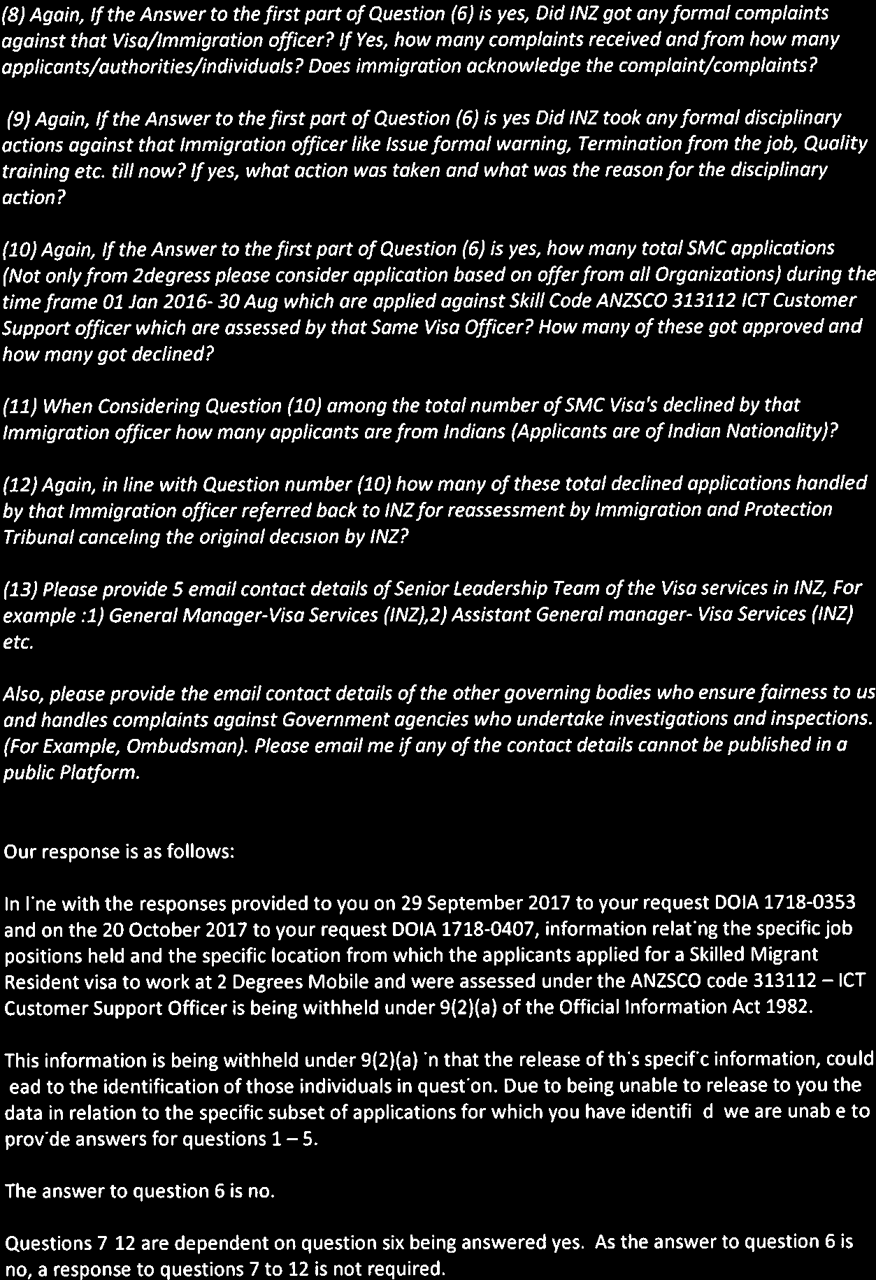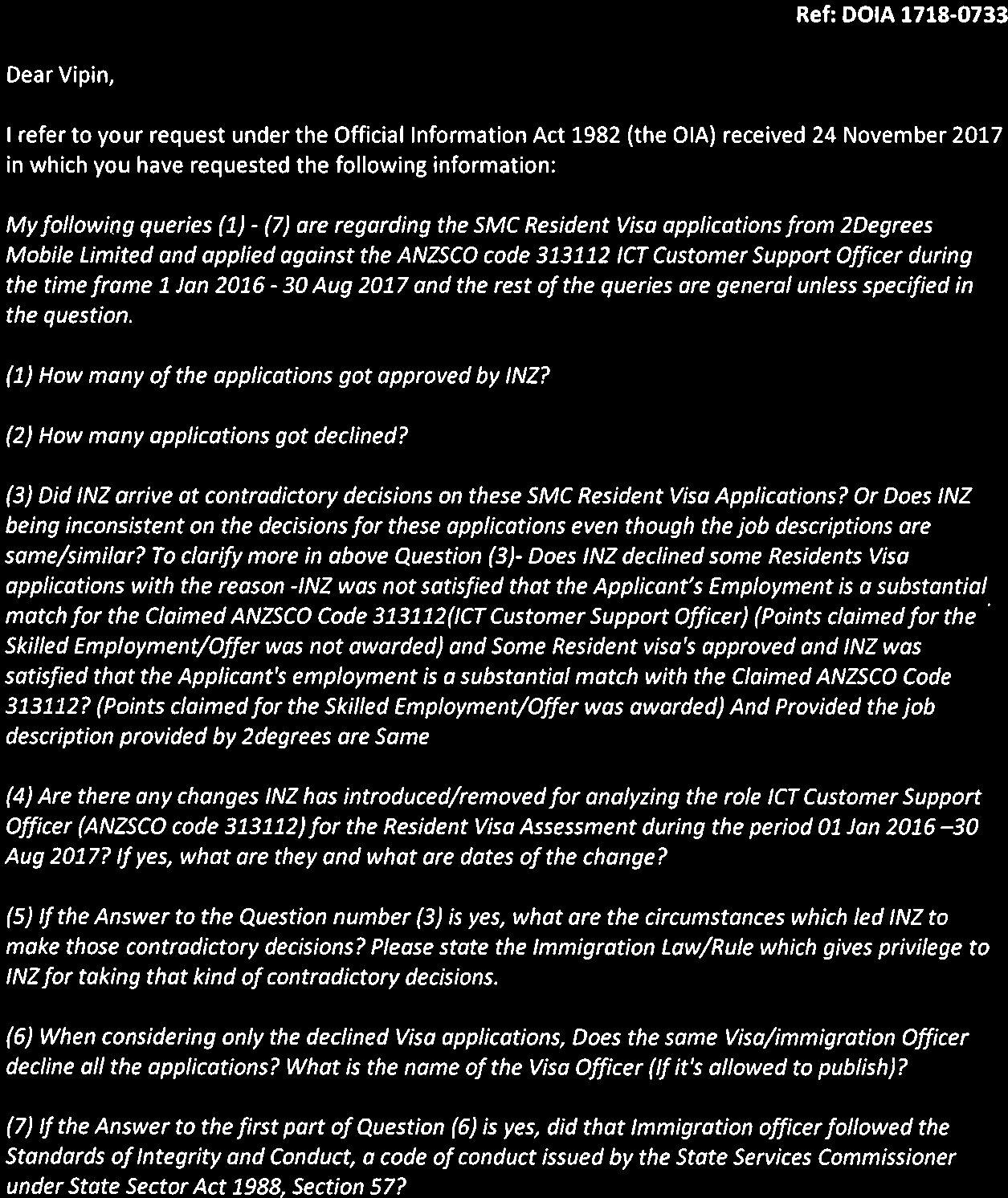 Clarification regarding the Consistency of decisions by INZ on ICT Support Officer (Skill Code 313112)