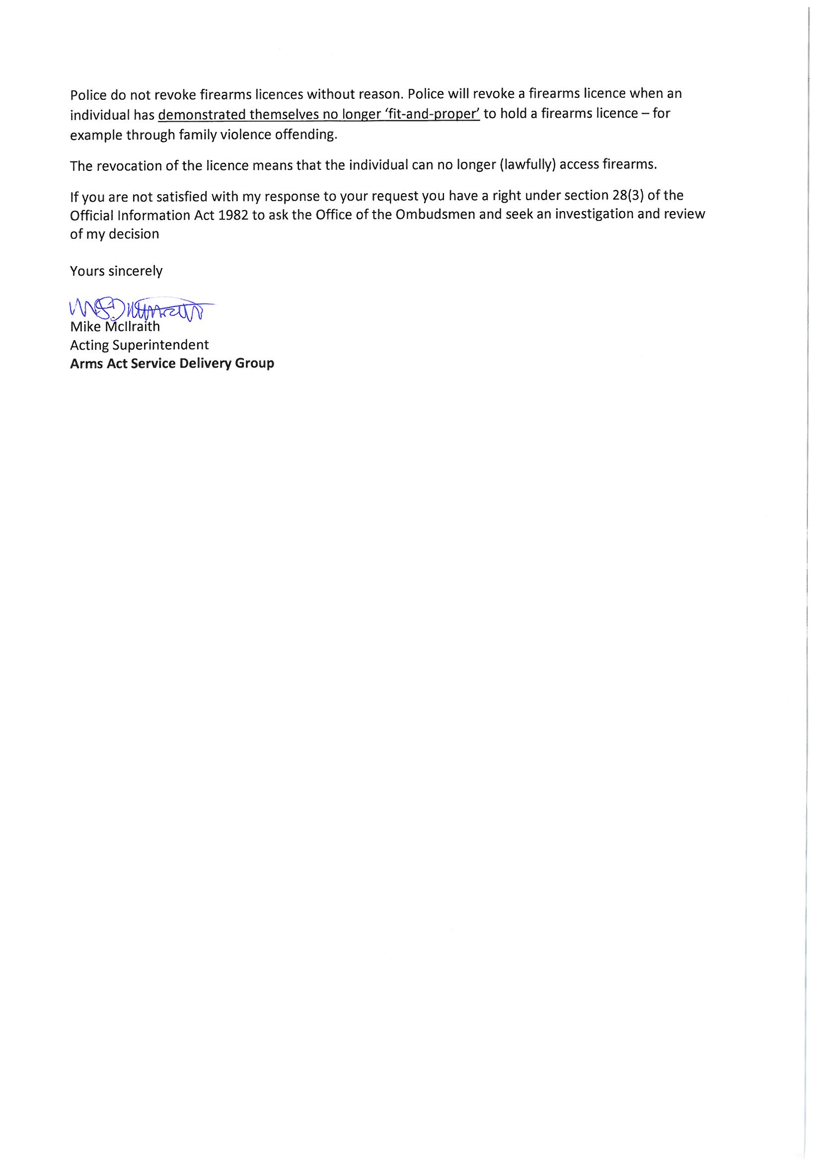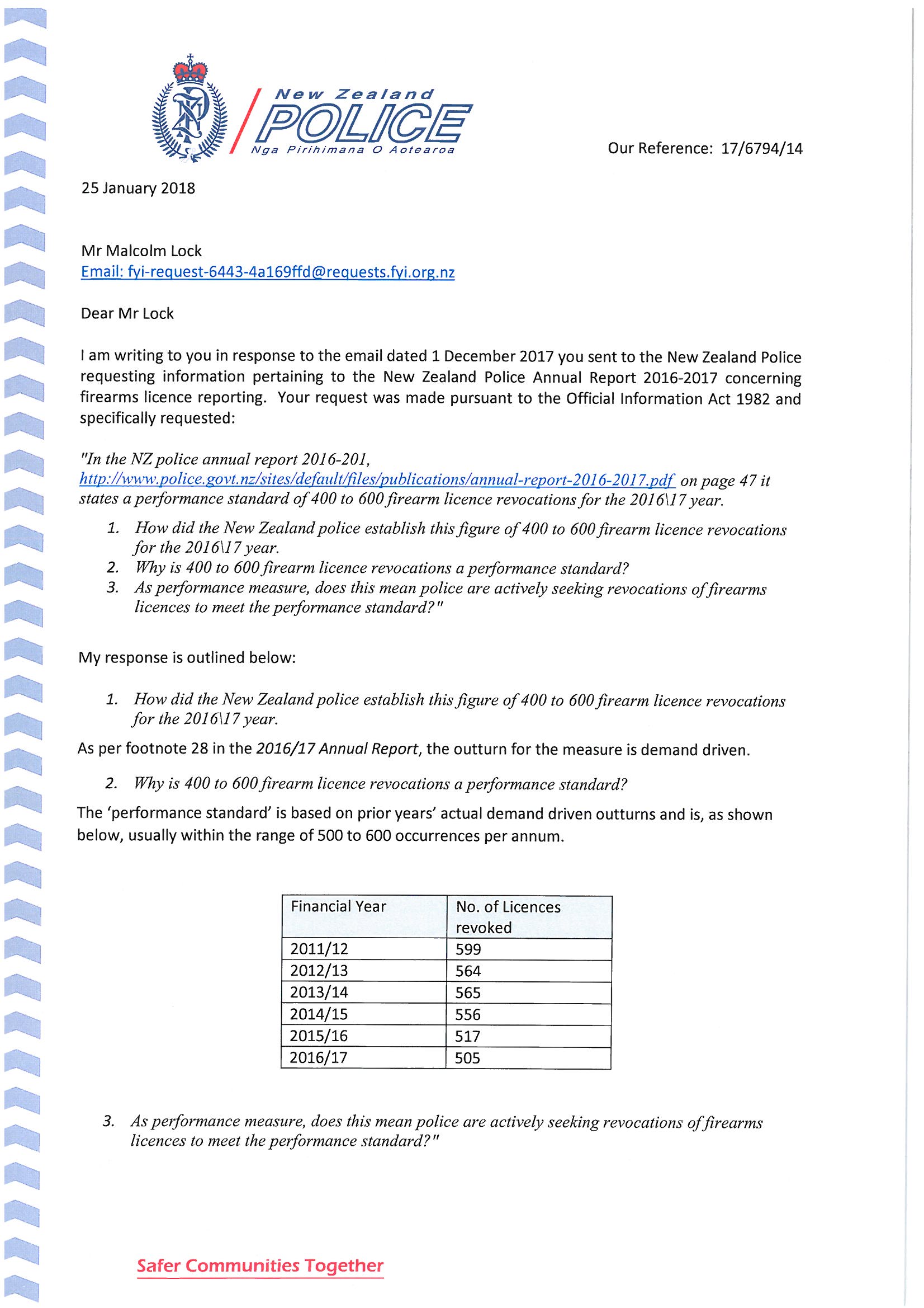 Revocation of firearms licence performance measures