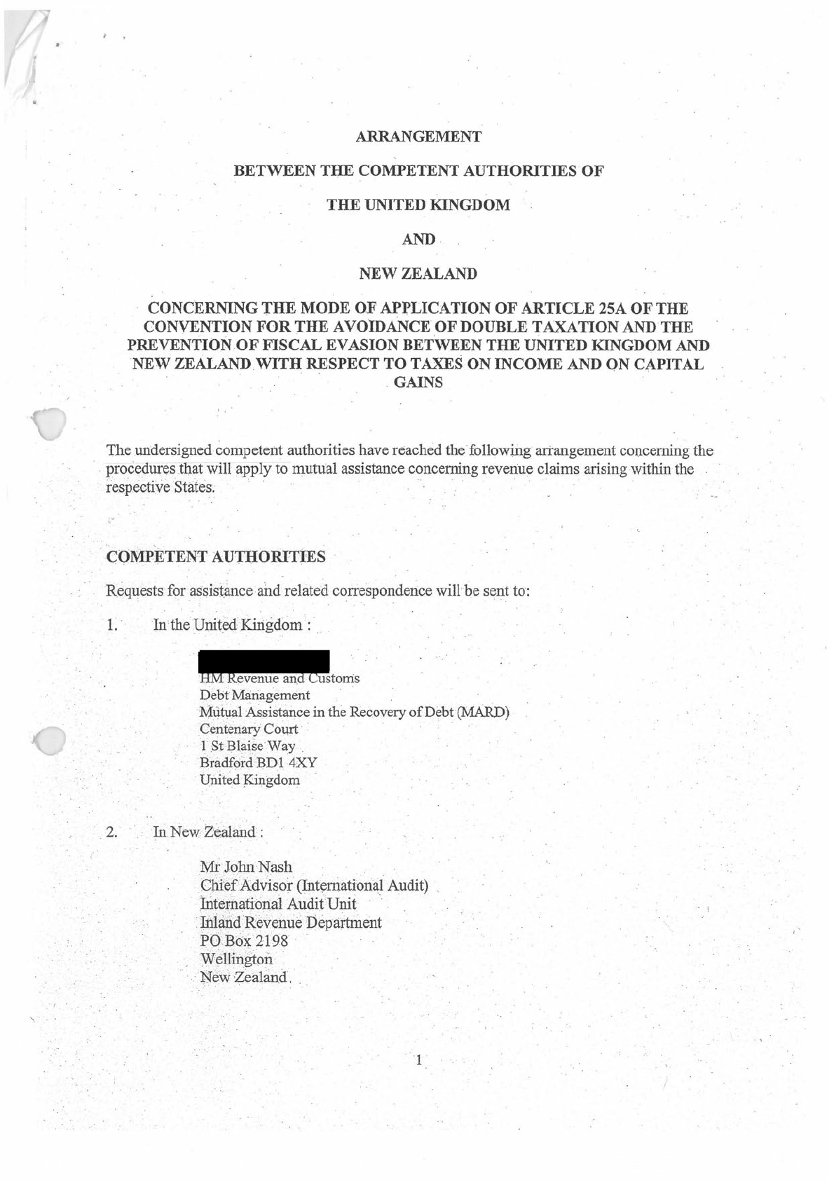 Memorandum of Understanding specific to Article 25A in DTA Relief (United Kingdom) Amendment Order 2008, or MAA (2013)