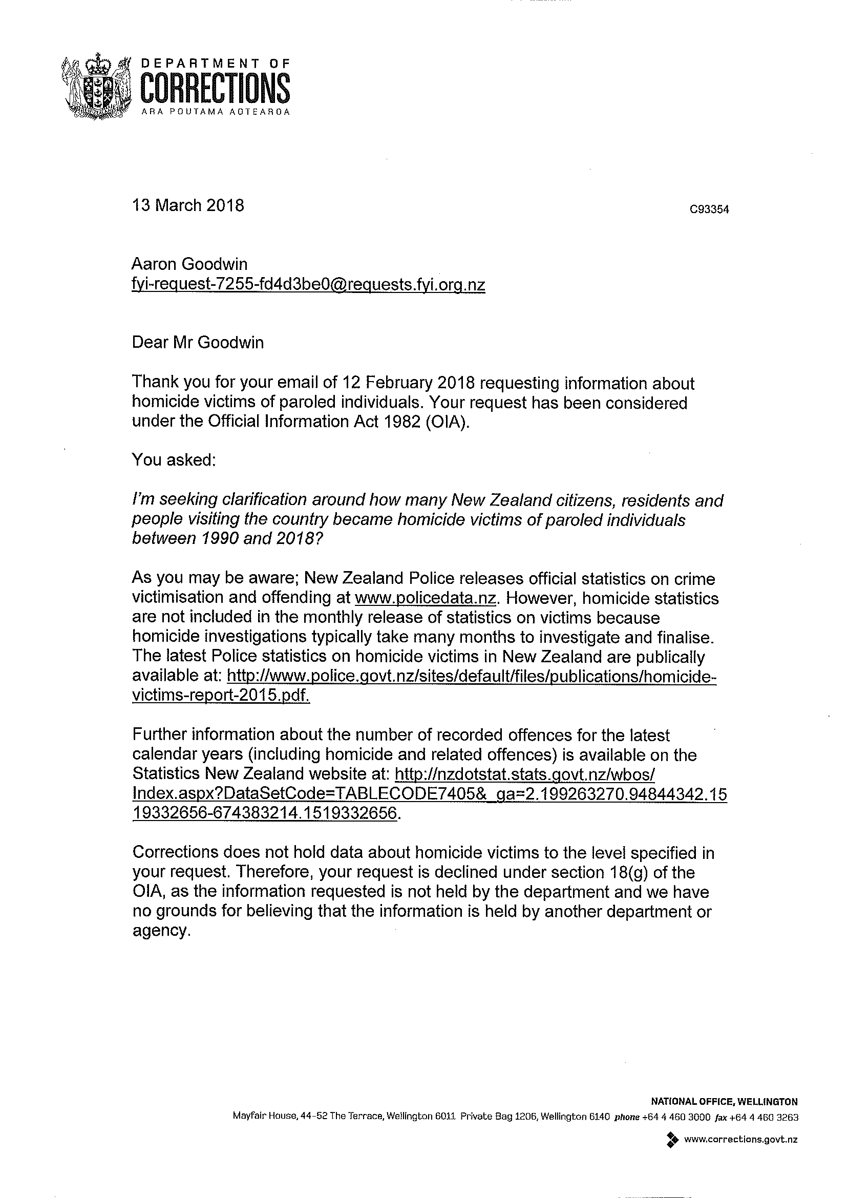 How many New Zealand citizens, residents and people visiting the country became homicide victims of paroled individuals between 1990 and 2018?