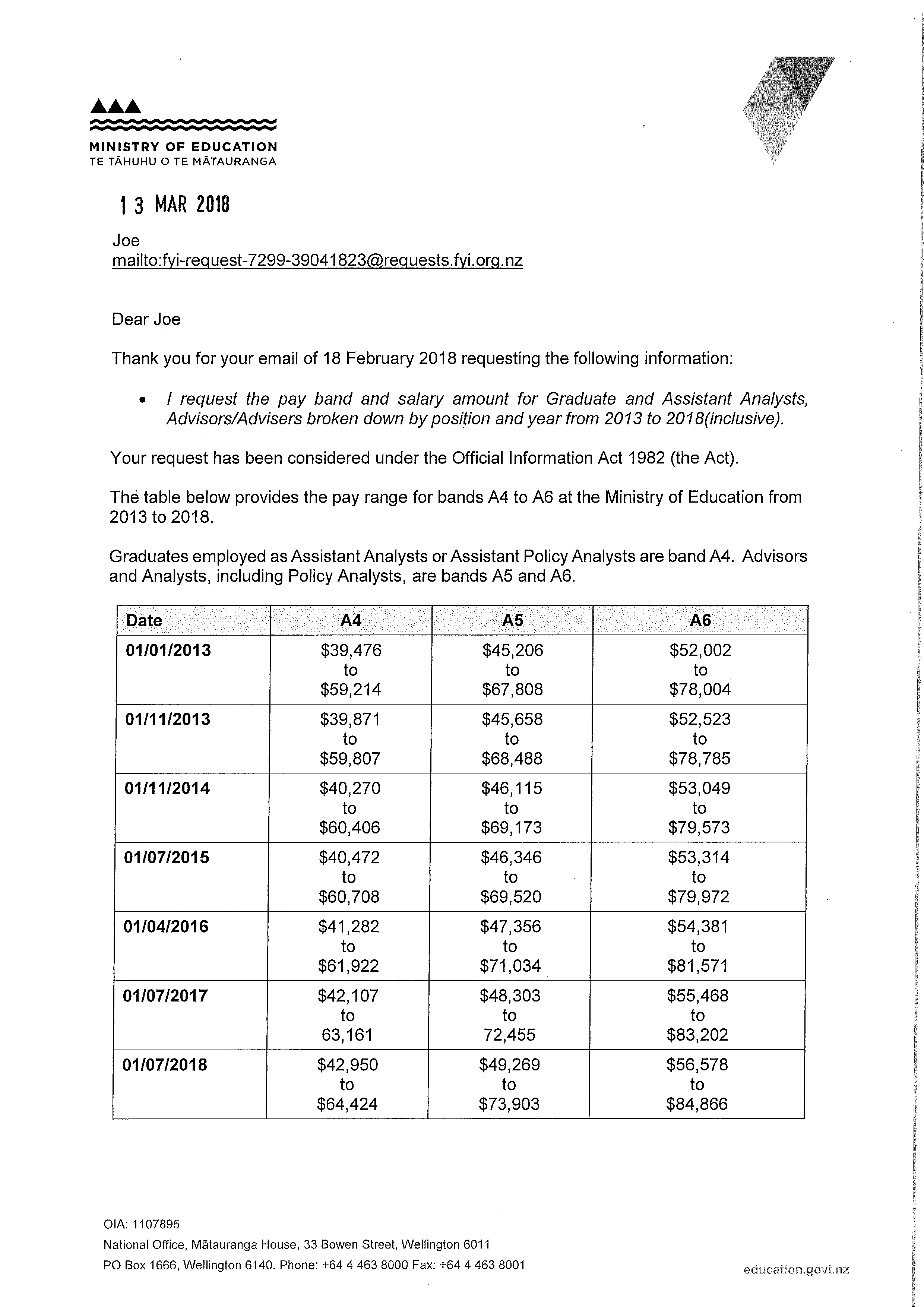 Pay band and amount for Graduate and Assistant Analysts, Advisors/Advisers