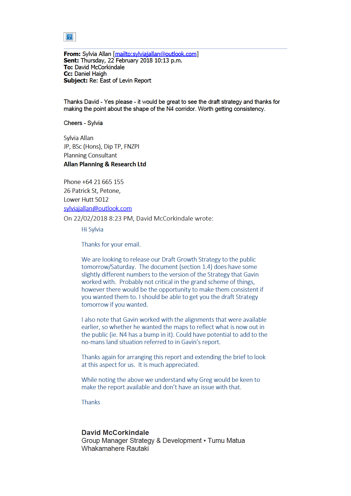 route options could affect the easterly growth of Levin. As you will remember, this has been an