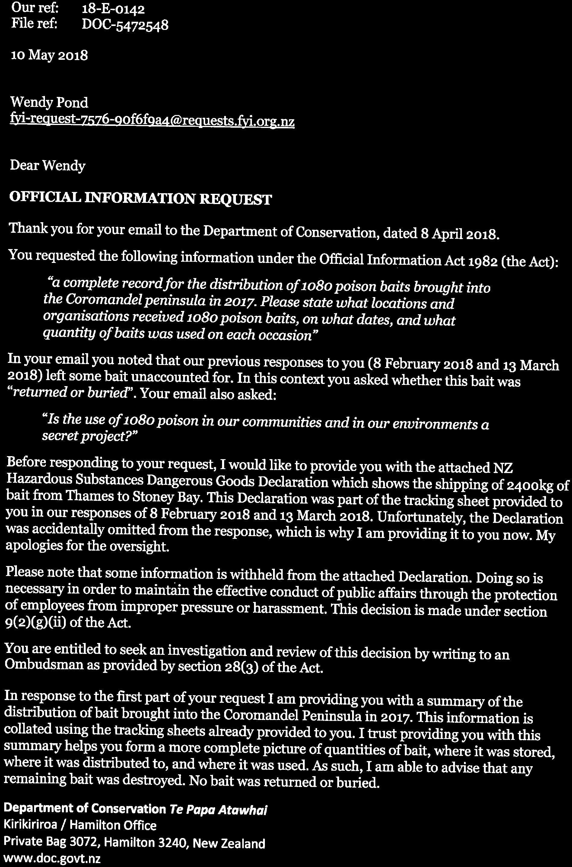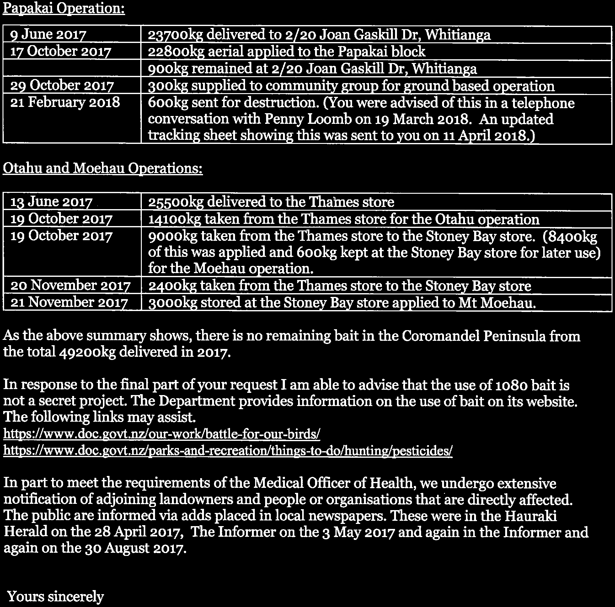 Incomplete tracking record for 1080 baits used in 2017 in Coromandel