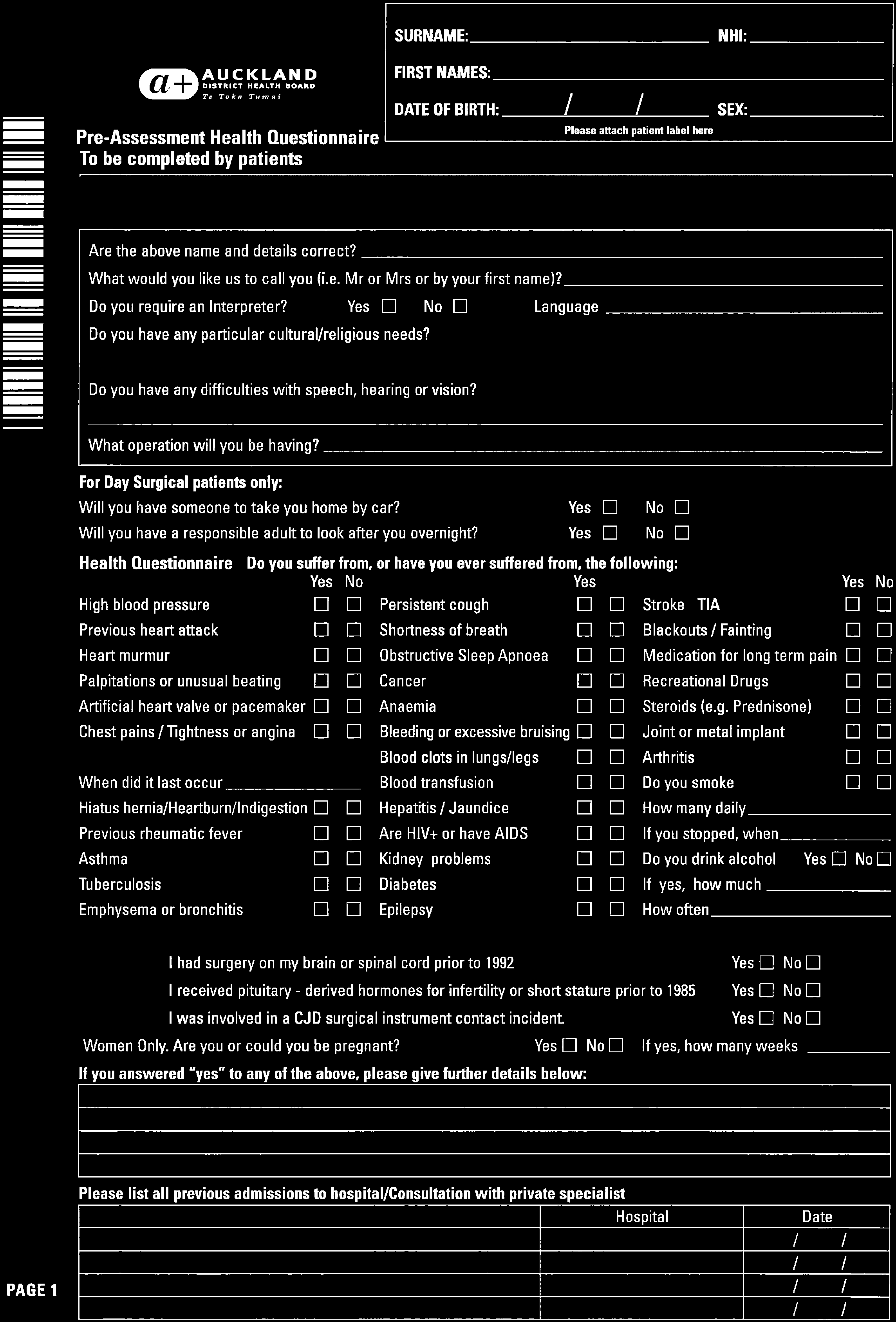 Patient information hand out / fact sheet brochure
