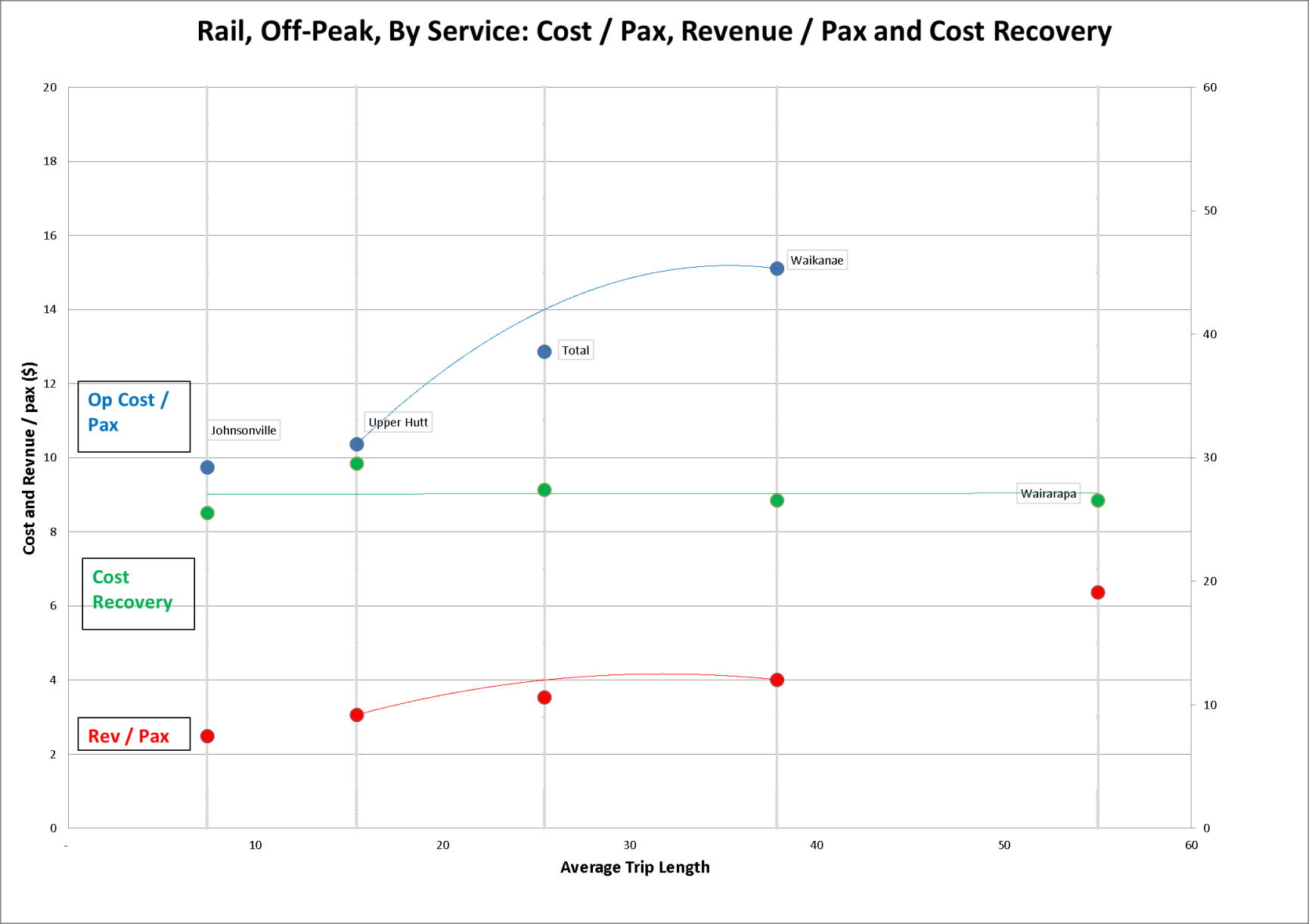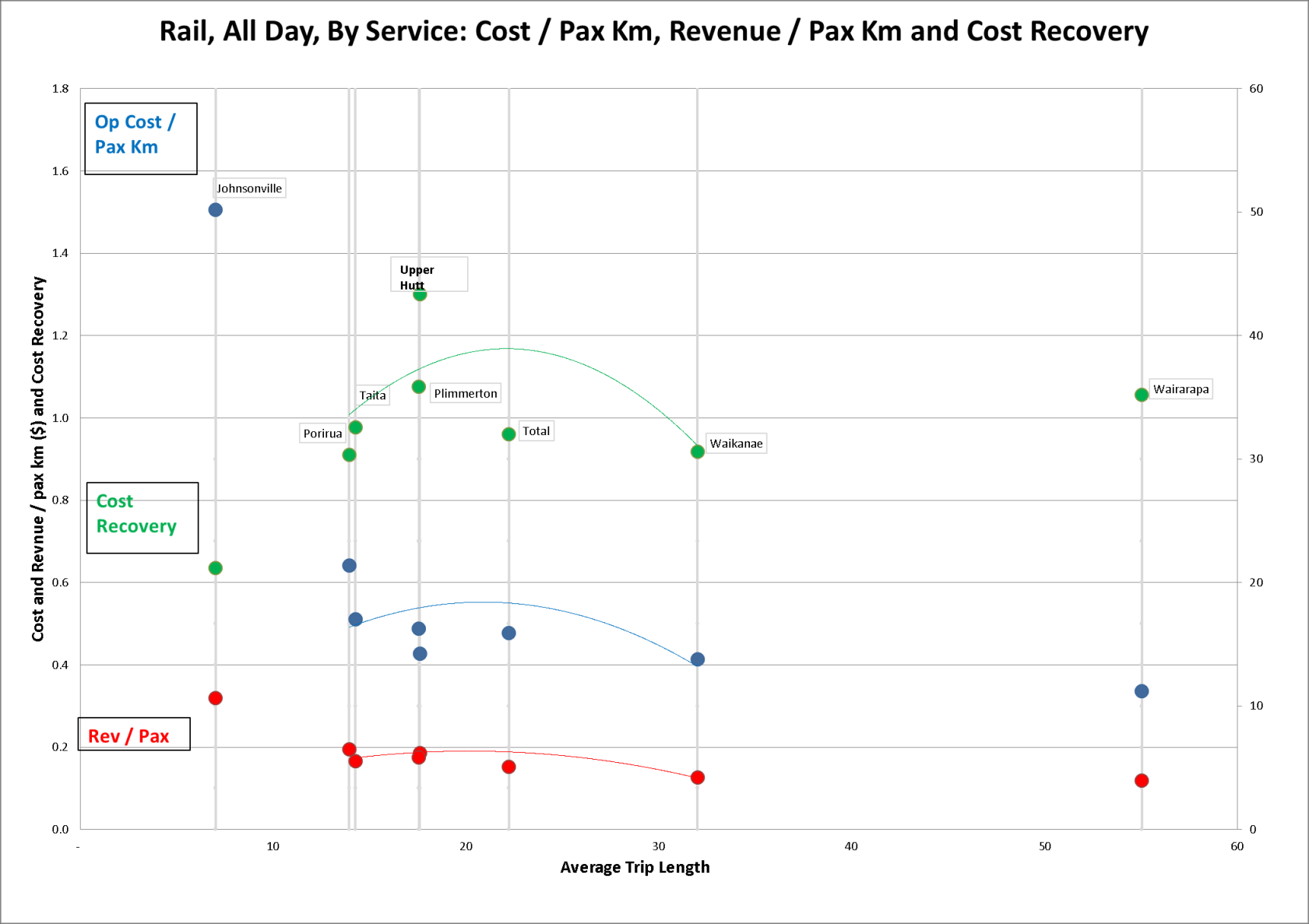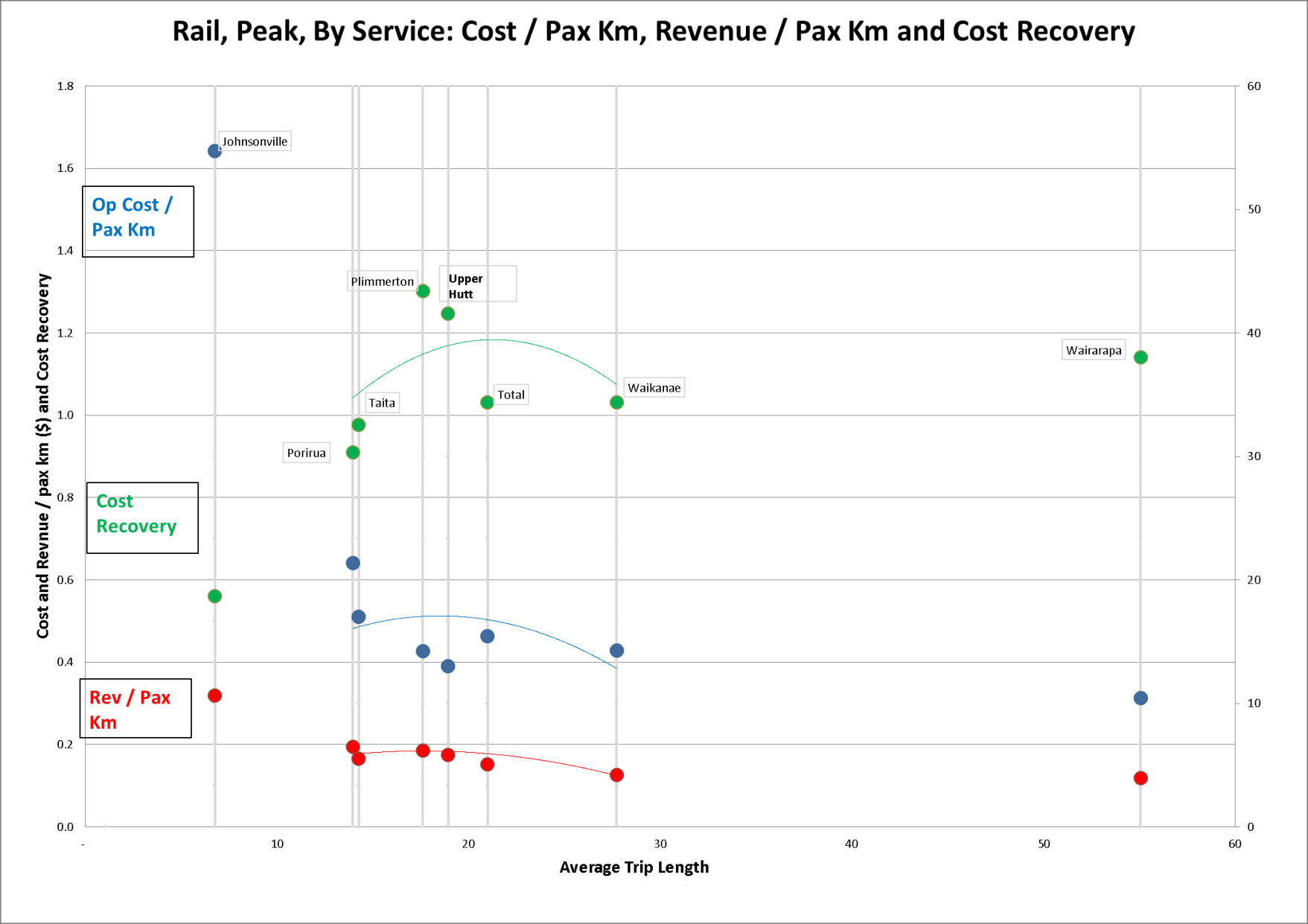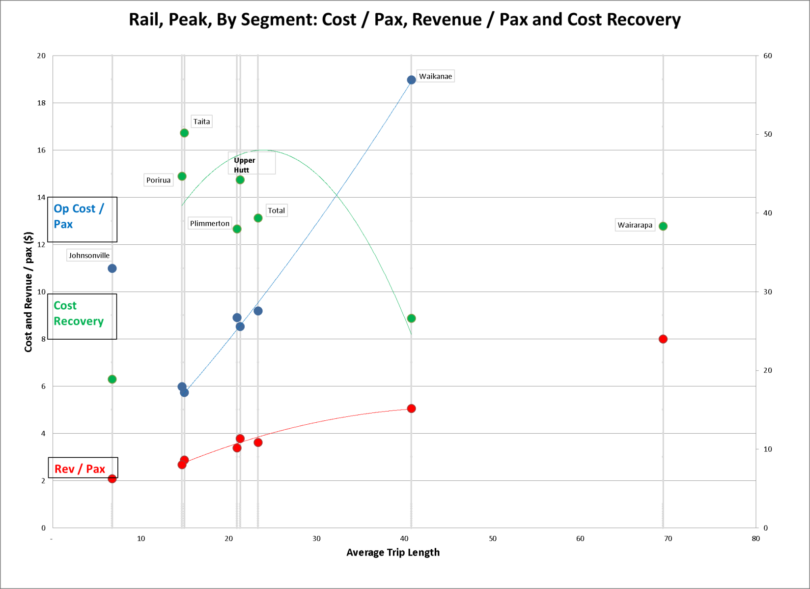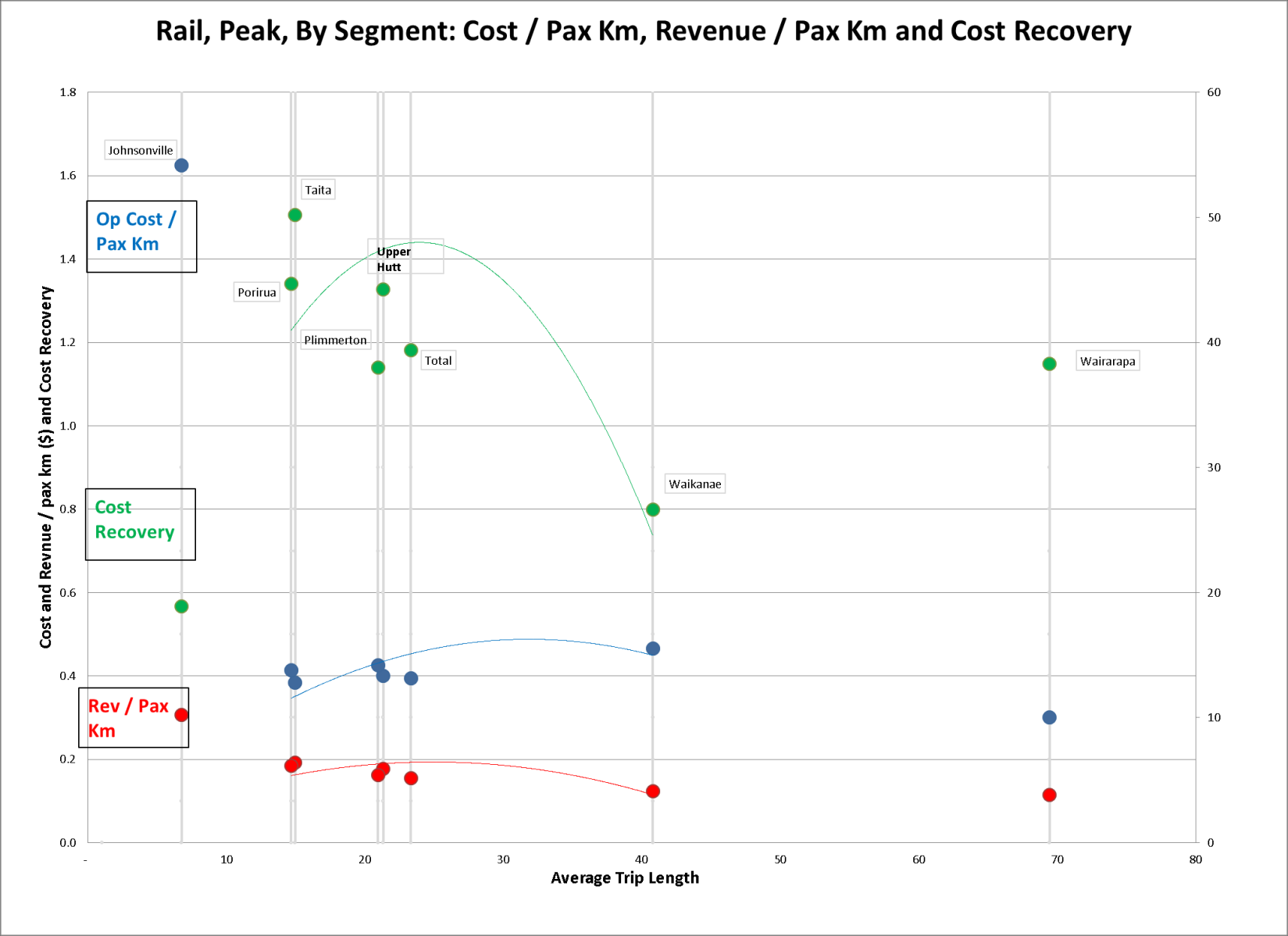 Waikanae / Wairarapa High costs, Fewer boardings, lower load factor relative to shorter segments