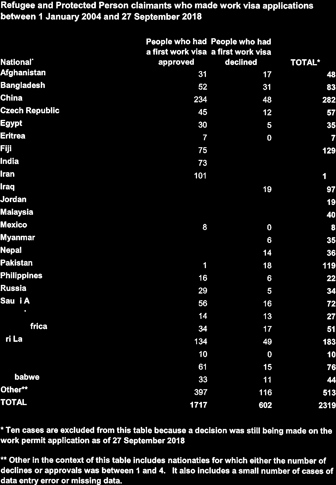 Asylum seekers - ALL countries of origin and success statistics