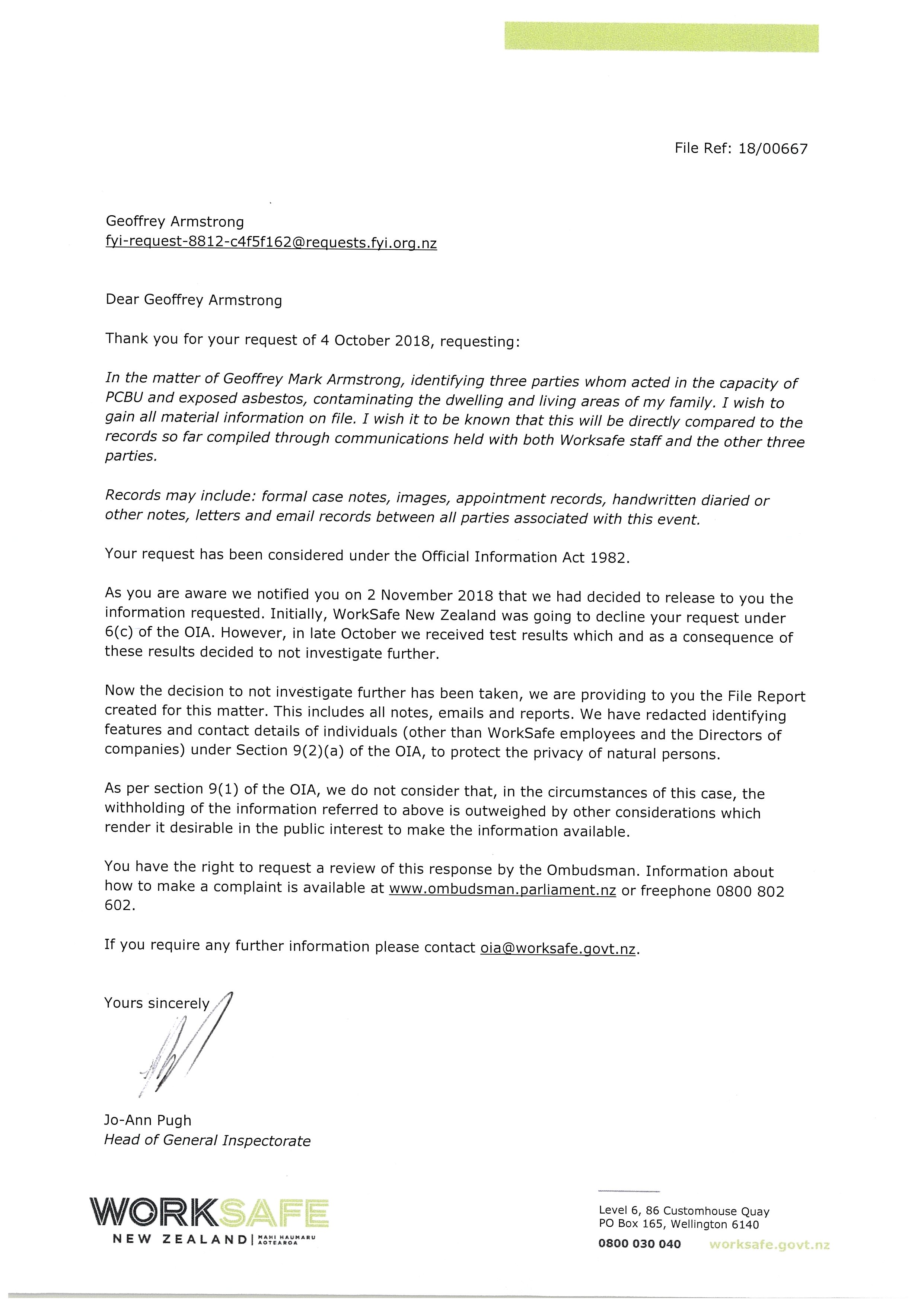 Details pertinent to asbestos disturbance at 19 Wentworth St Gore