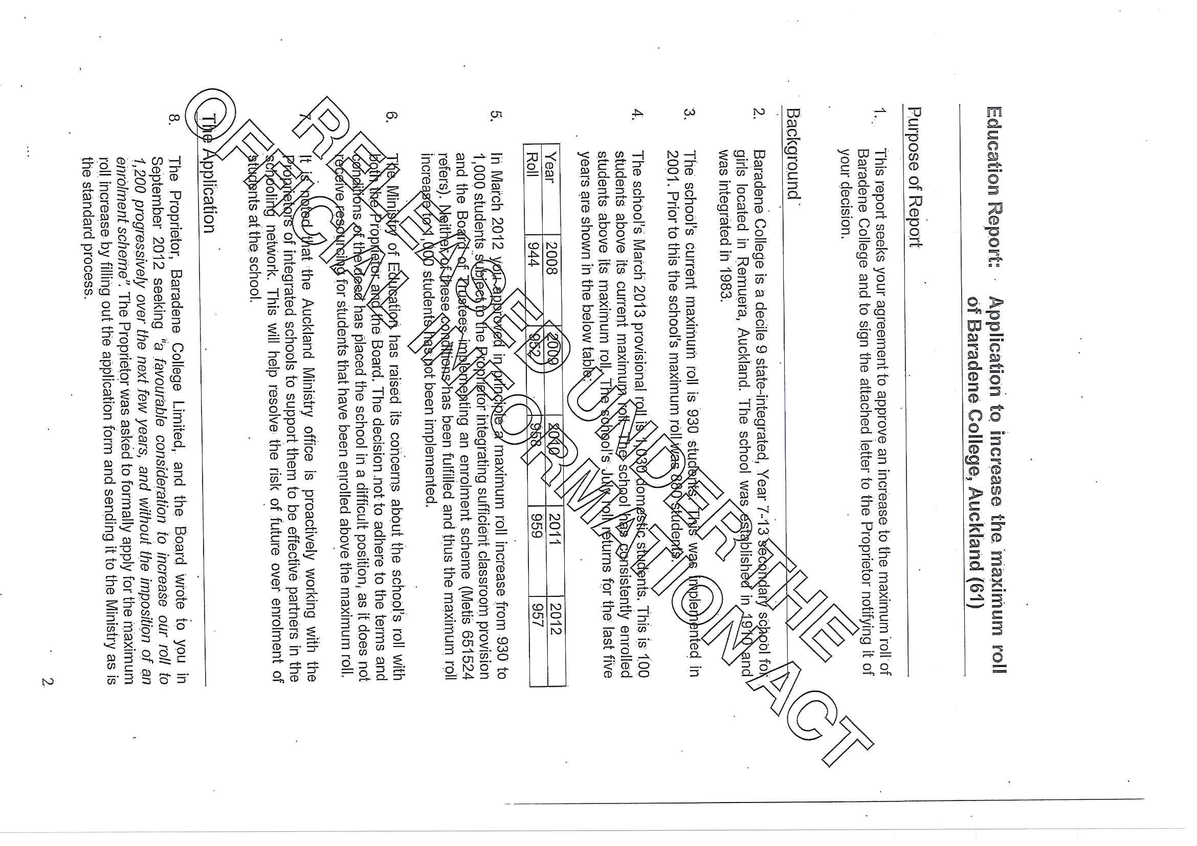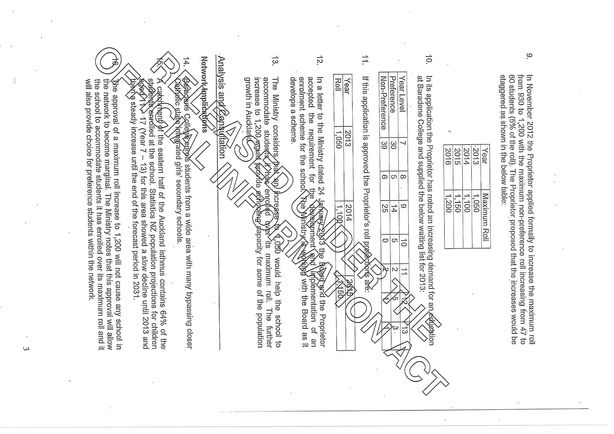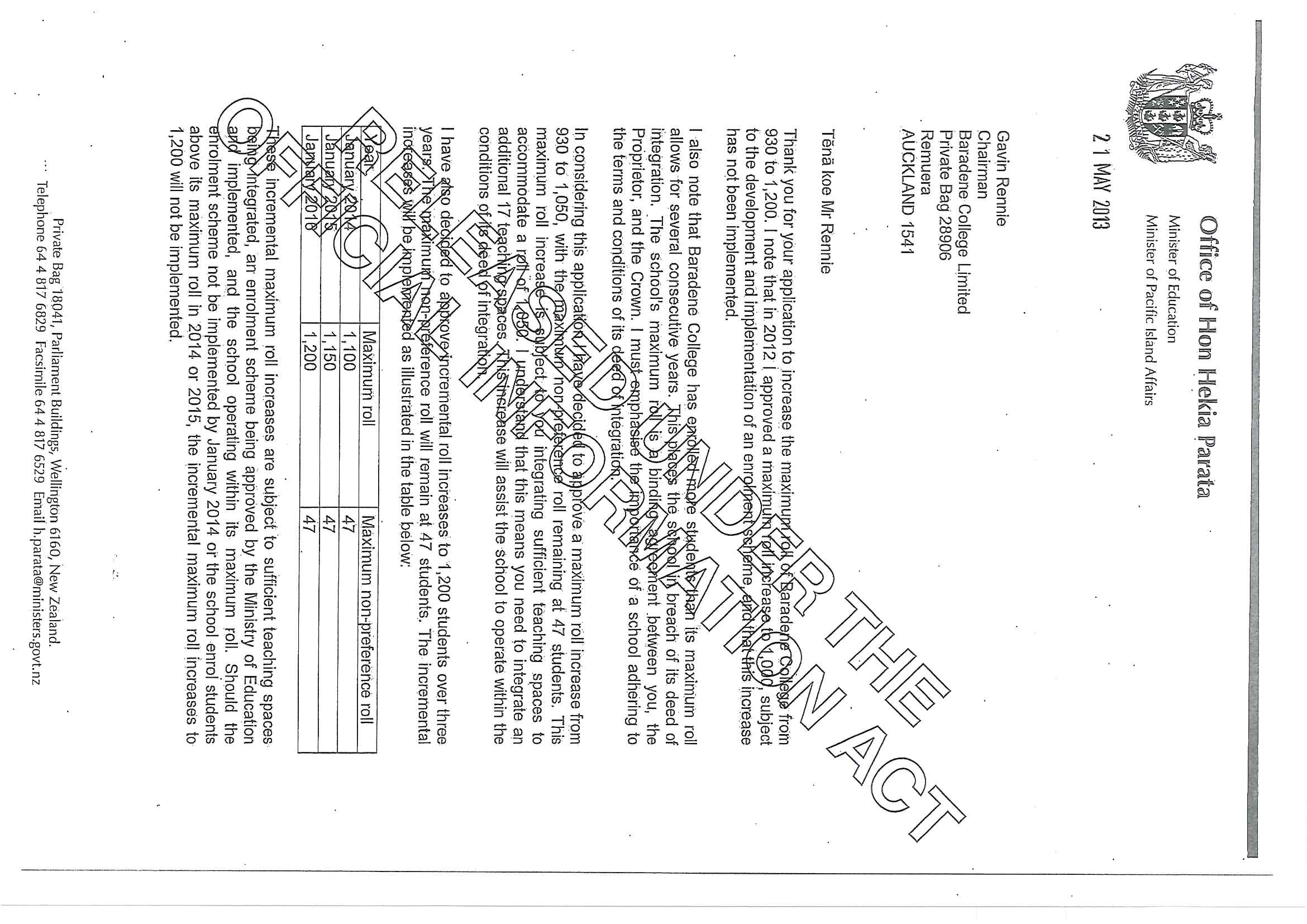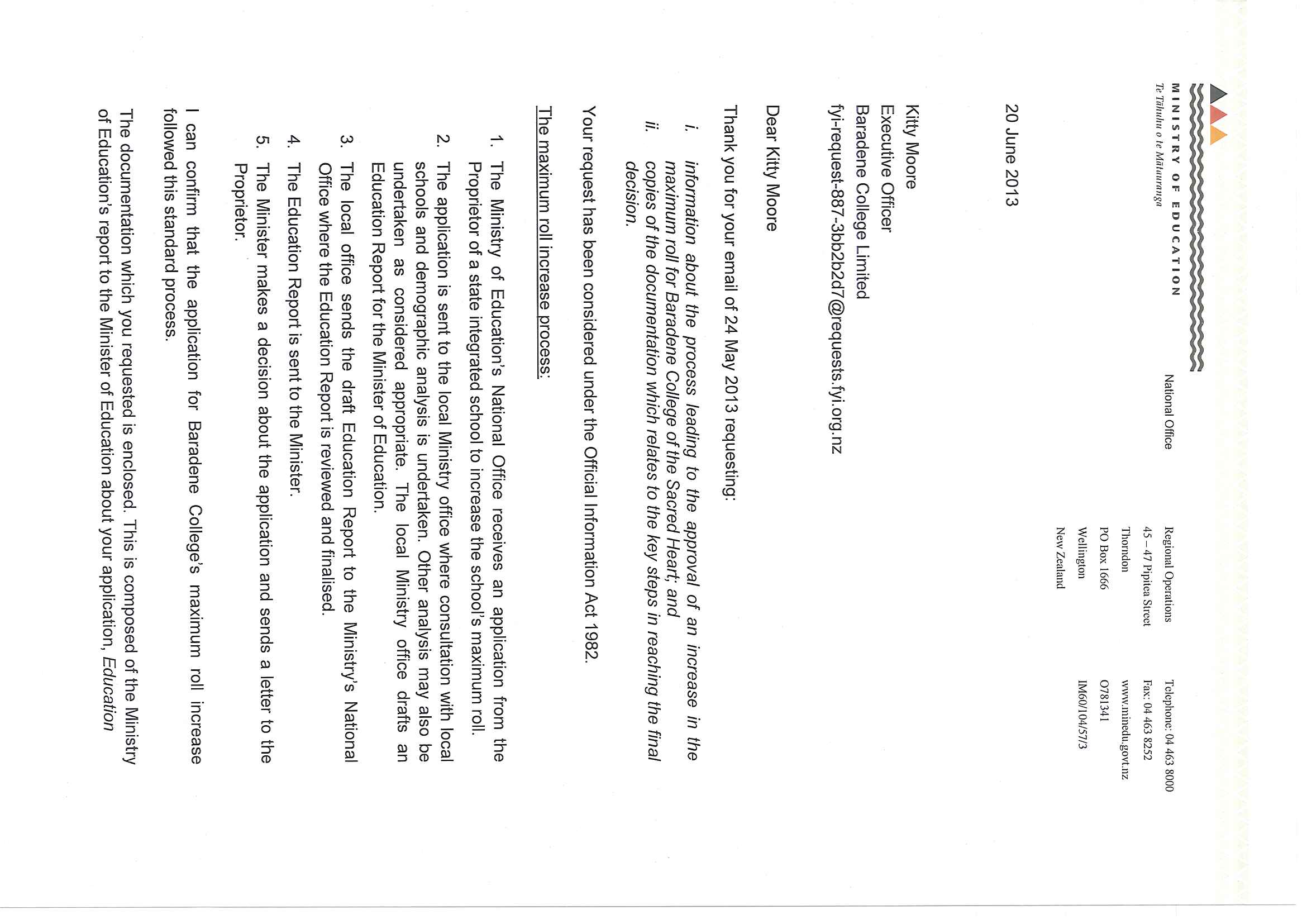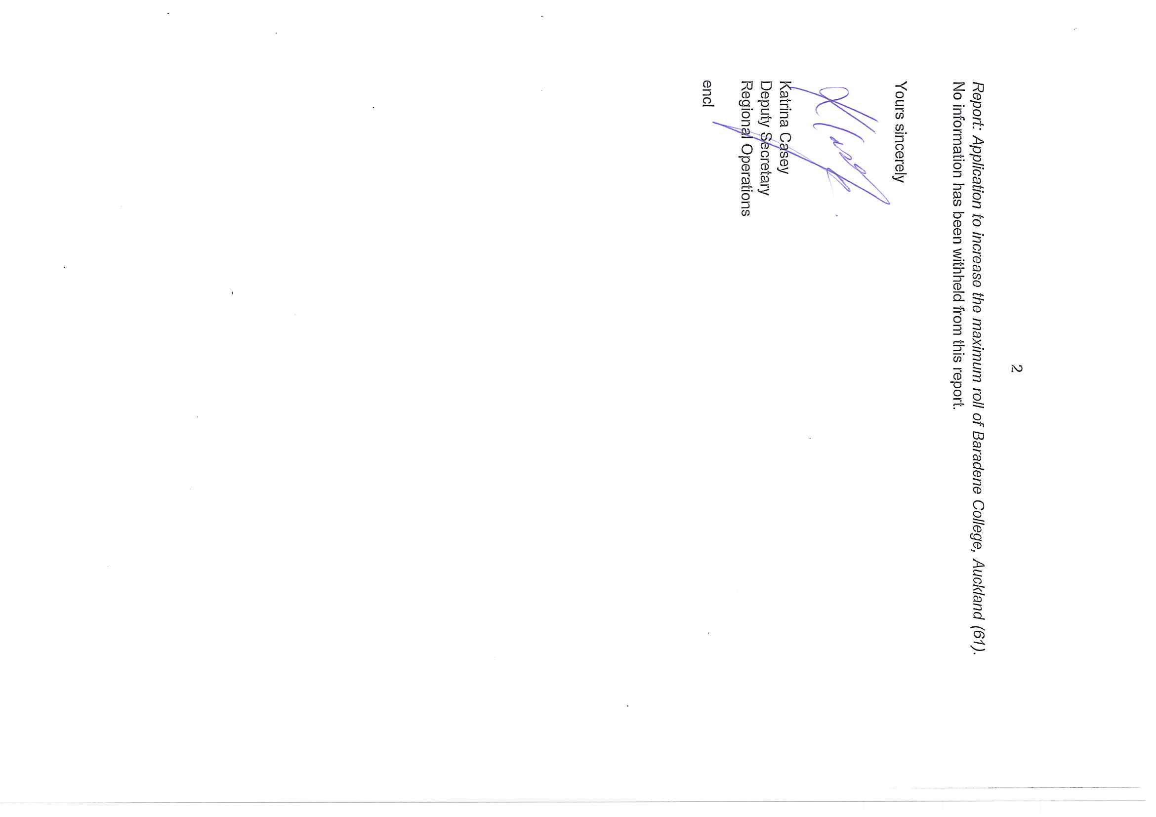 Information related to the process for approval of maximum roll increase for Baradene College of the Sacred Heart.