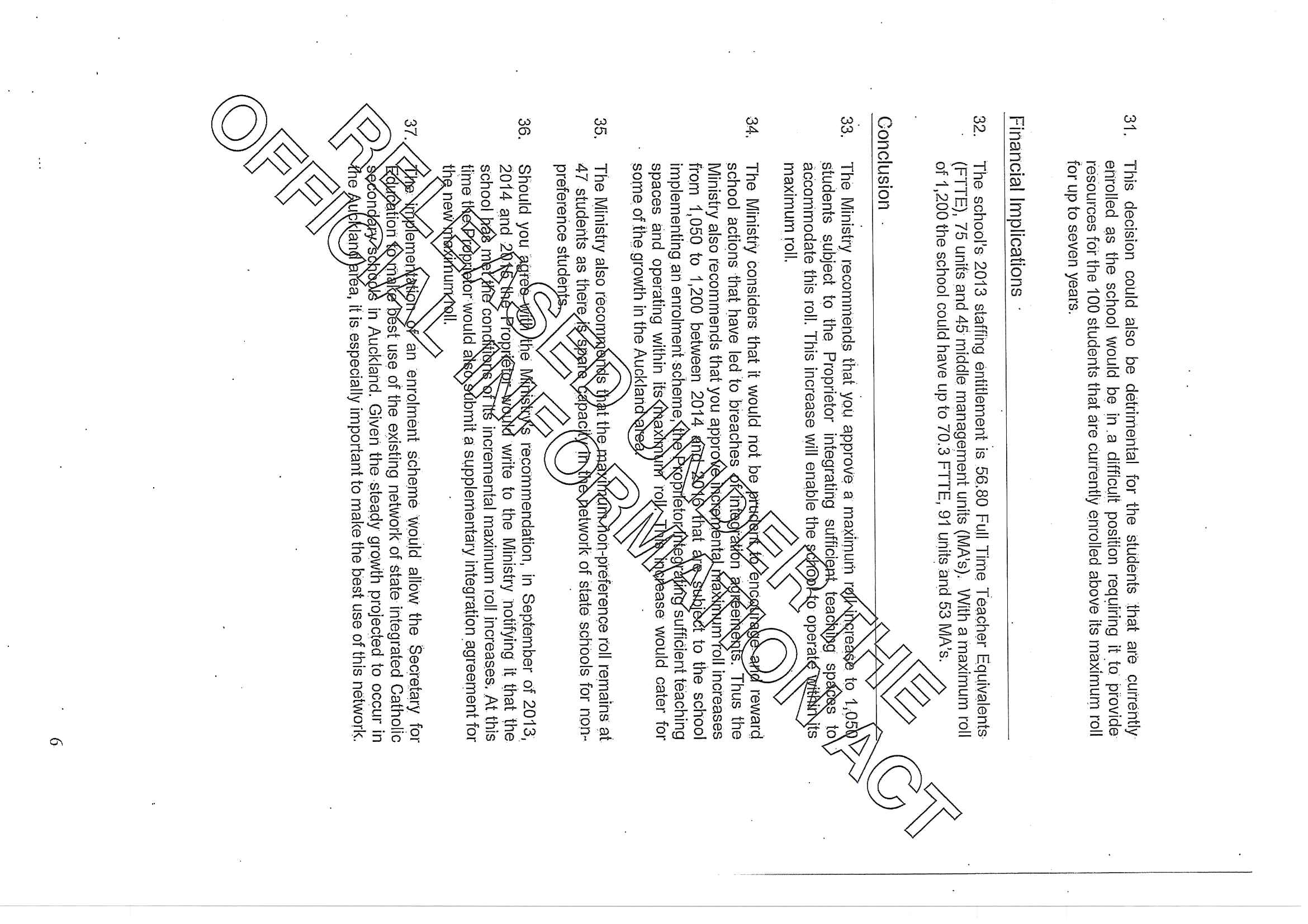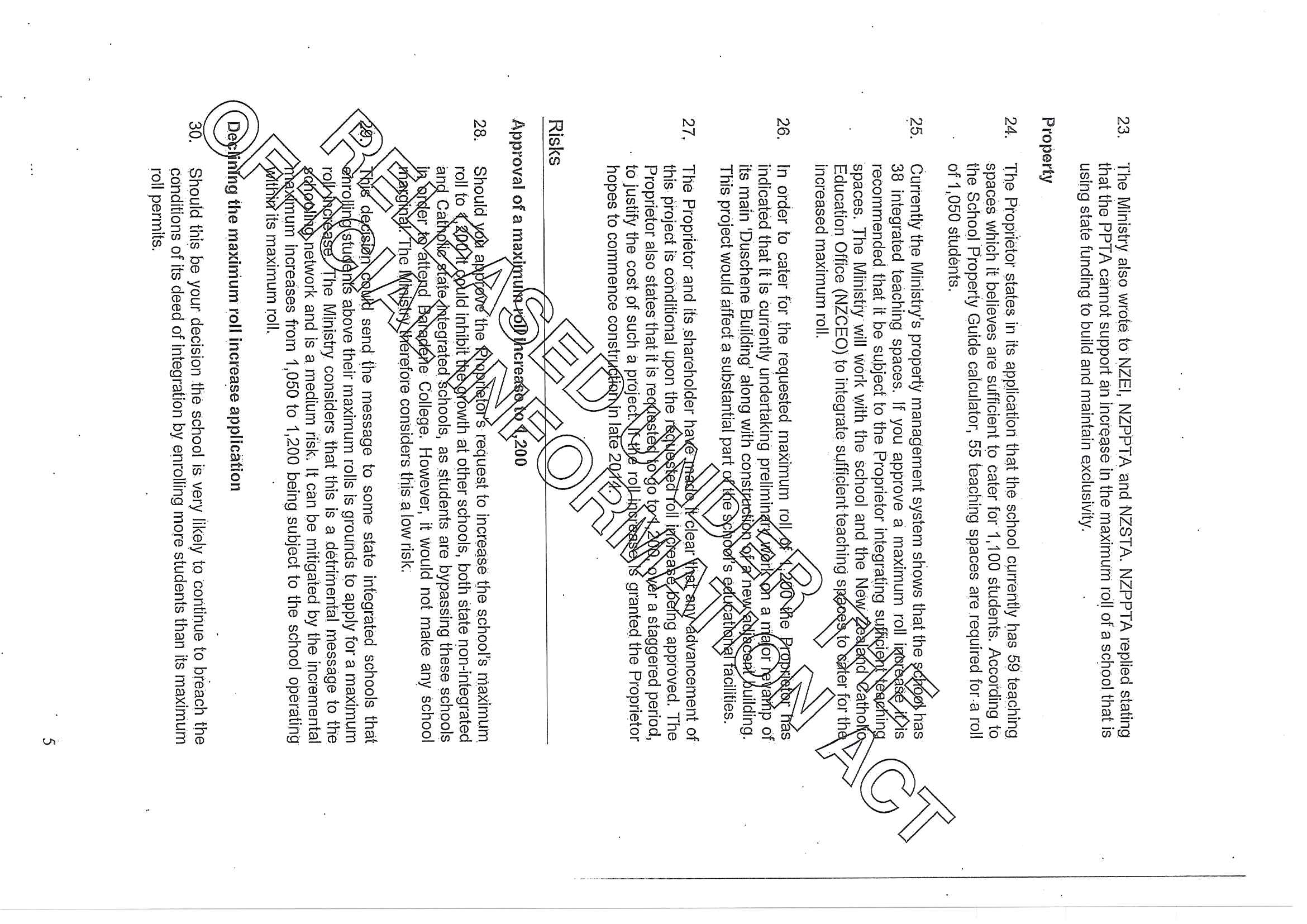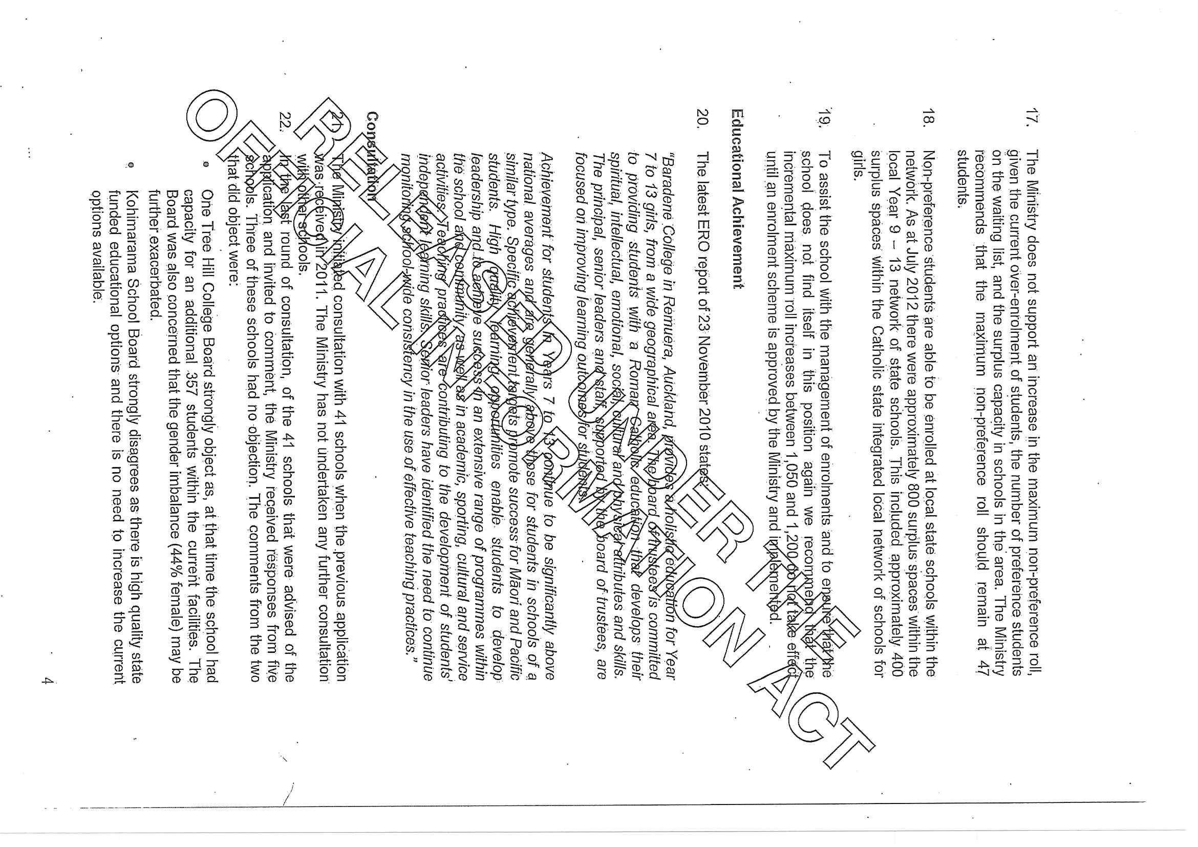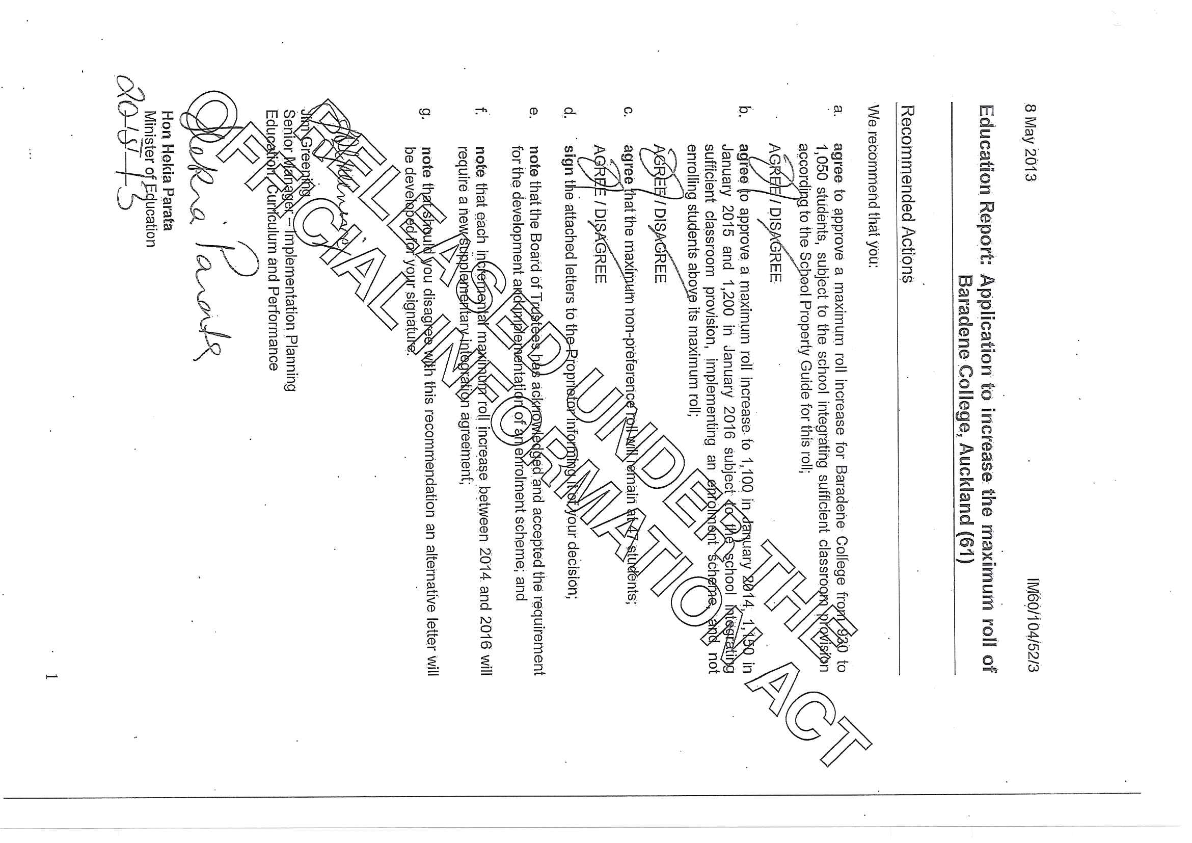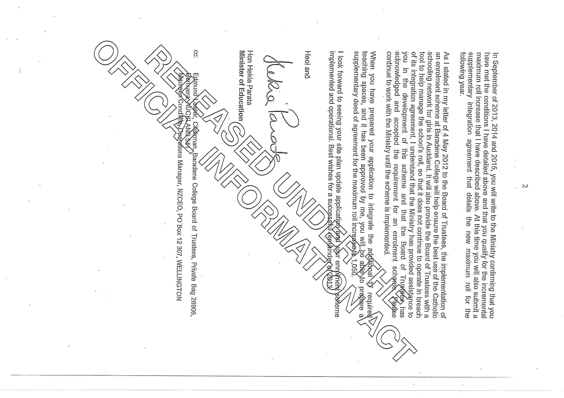 Information related to the process for approval of maximum roll increase for Baradene College of the Sacred Heart.