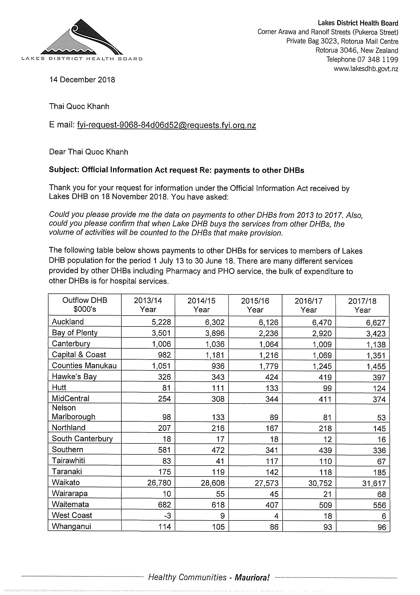 Payment to other DHBs
