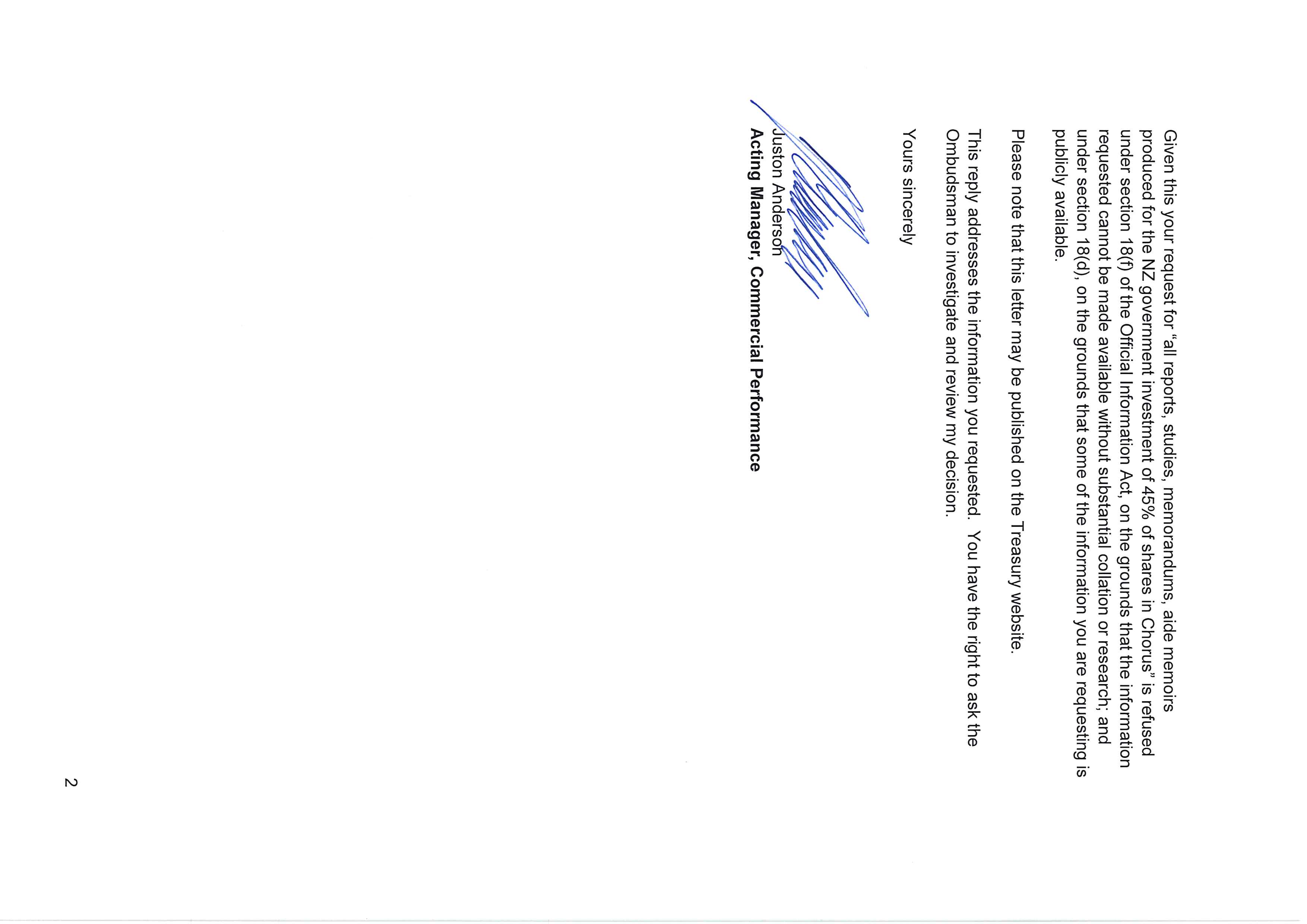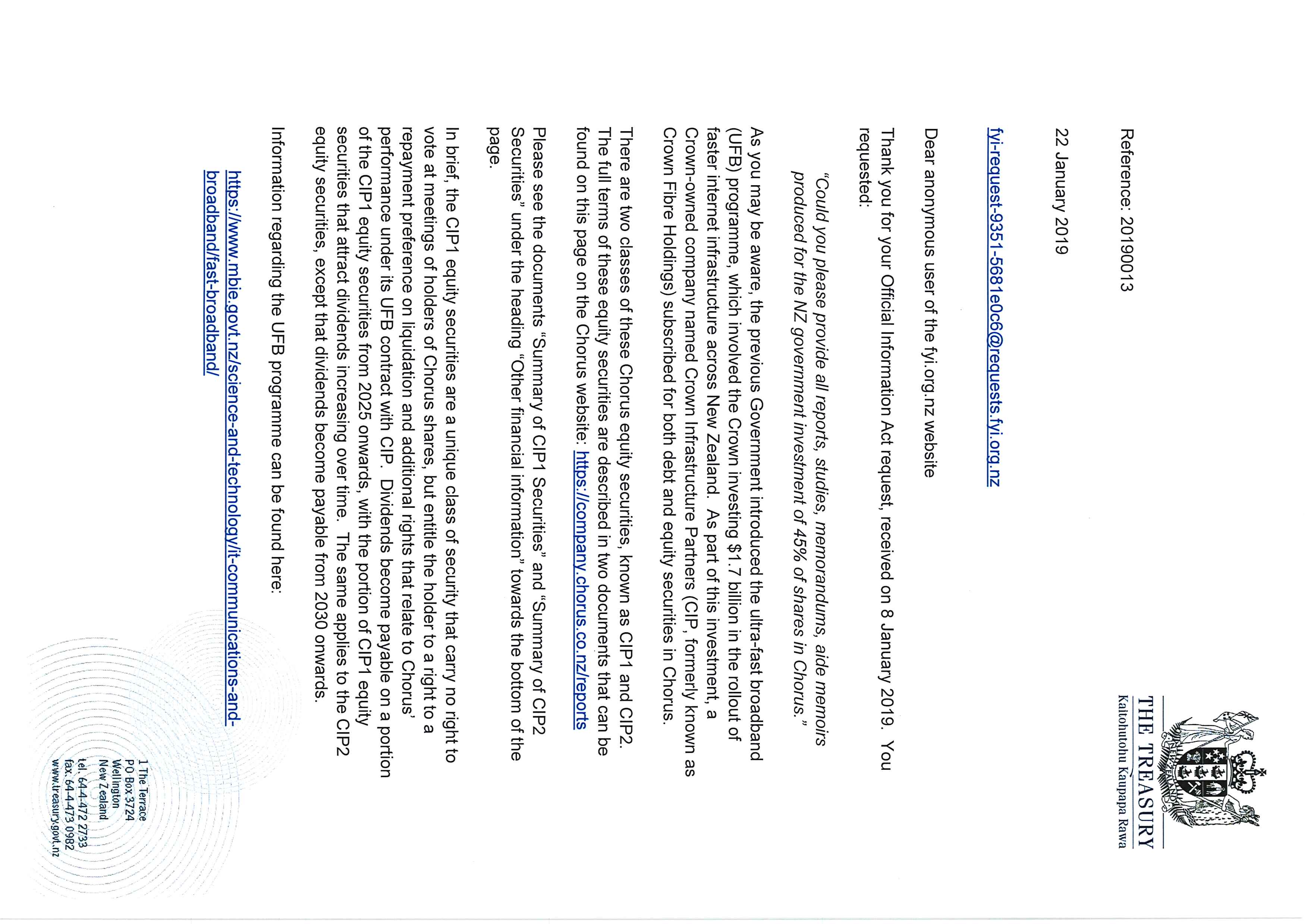All reports, studies, memorandums, aide memoirs for NZ government investment of 45% of shares in Chorus