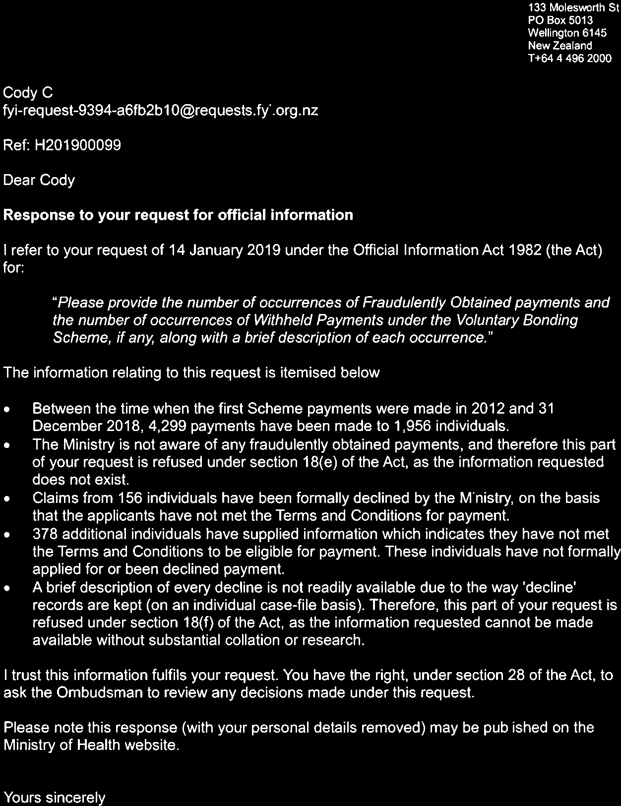 Fraudulent Payments under the Voluntary Bonding Scheme