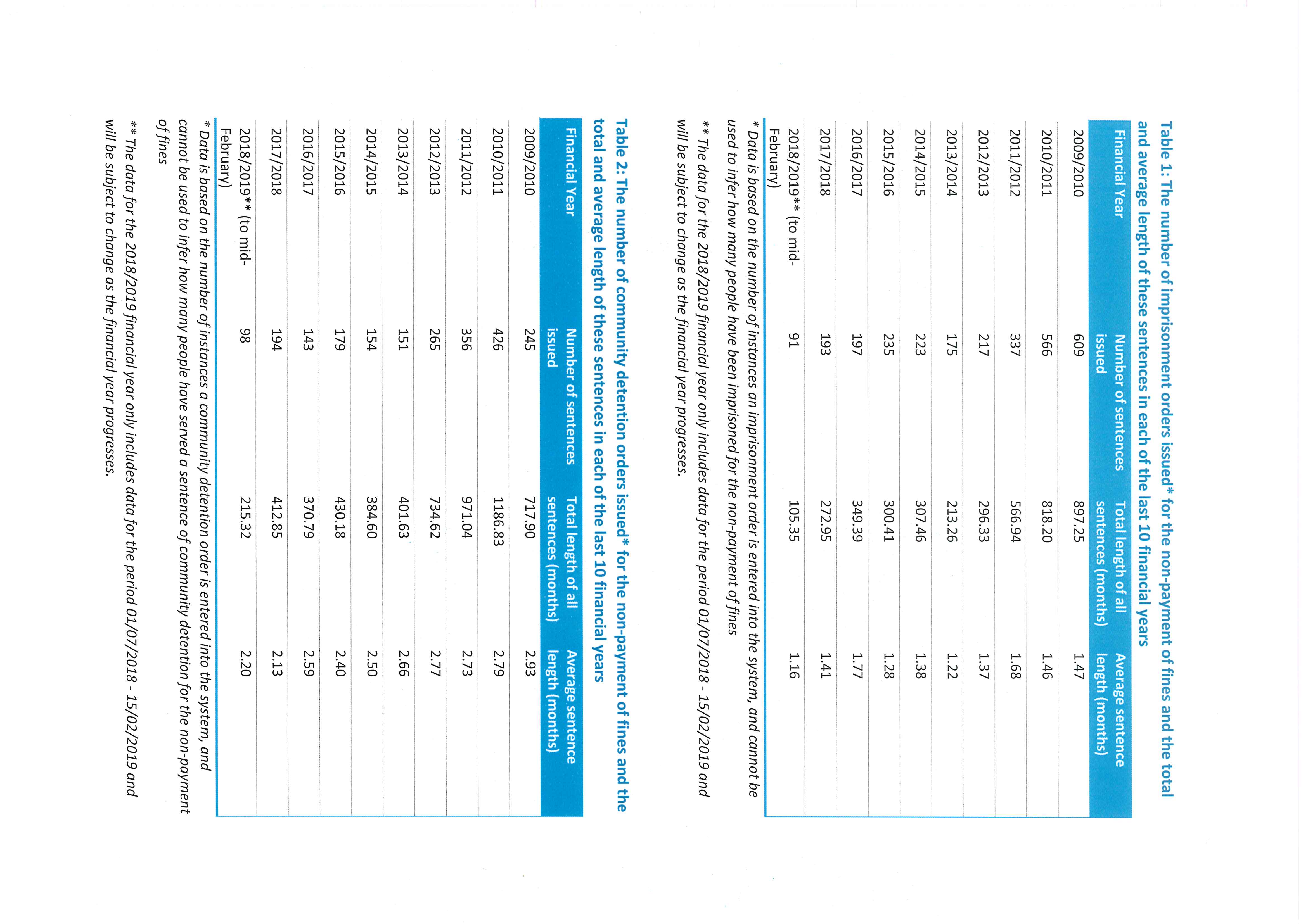 People incarcerated for default in payment in fines
