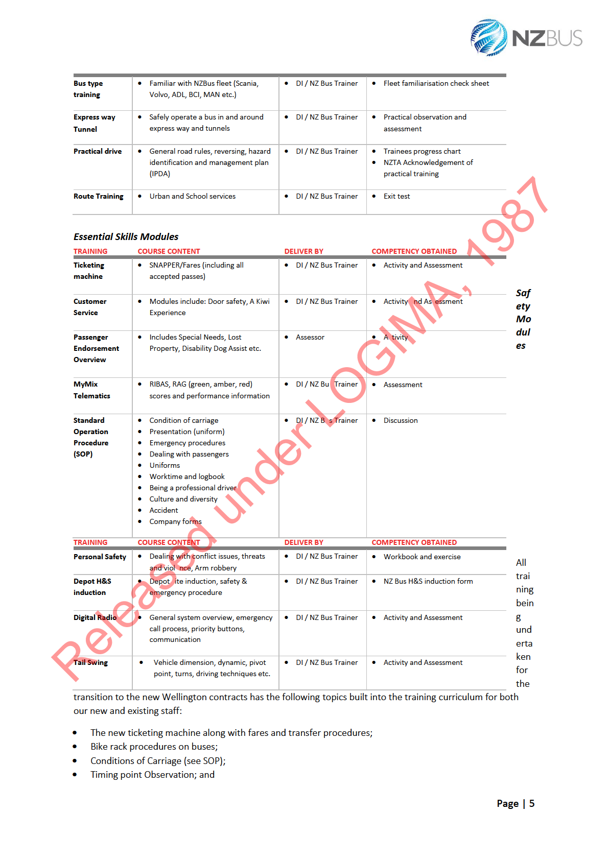dependent on each course module. However, NZ Bus has run yearly to three yearly training plans which are