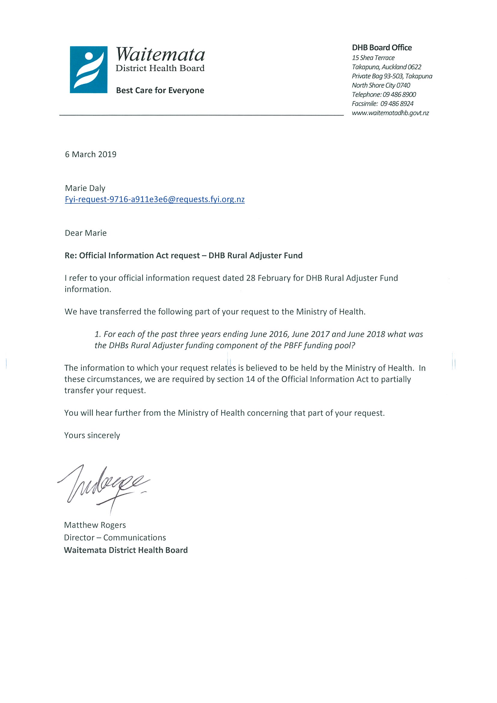 The NZ Rural Hospital Network wants to clearly understand each DHB's process for allocating, monitoring and reporting the annual DHB Rural Adjuster fund.