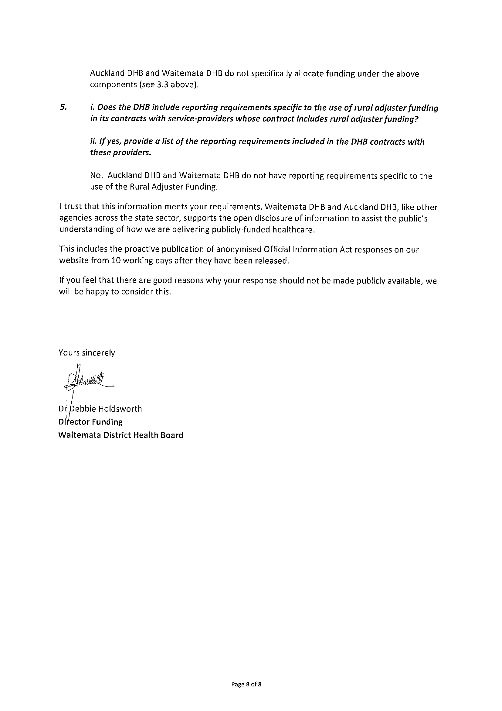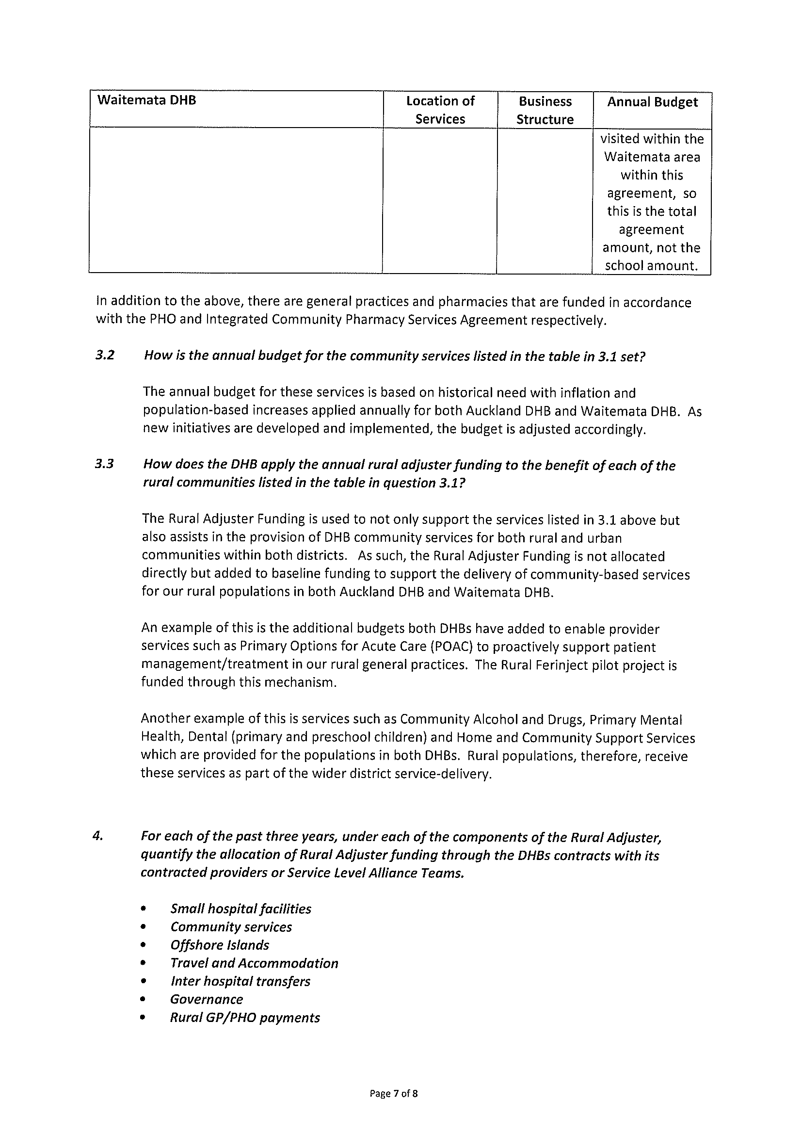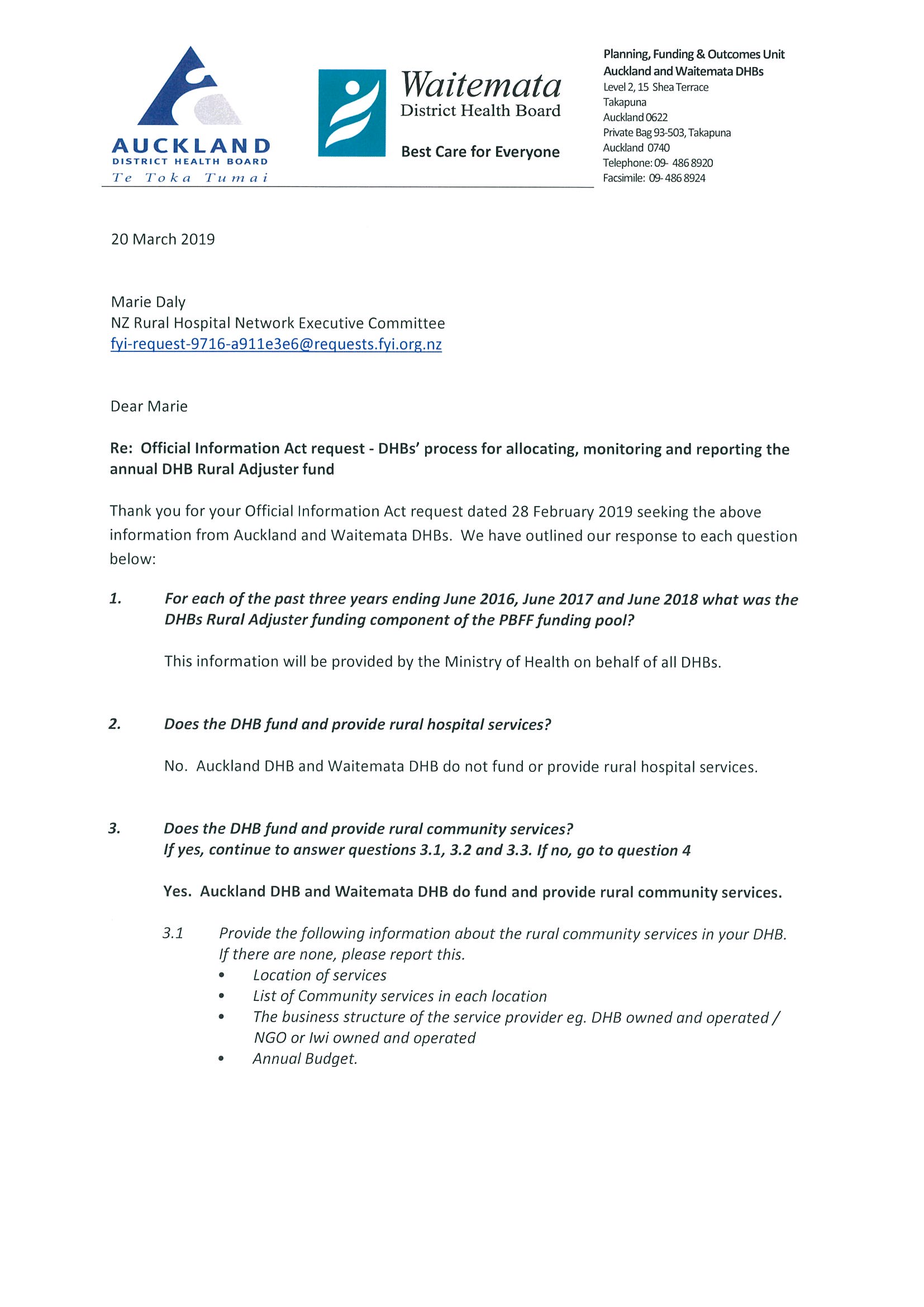 The NZ Rural Hospital Network wants to clearly understand each DHB's process for allocating, monitoring and reporting the annual DHB Rural Adjuster fund.