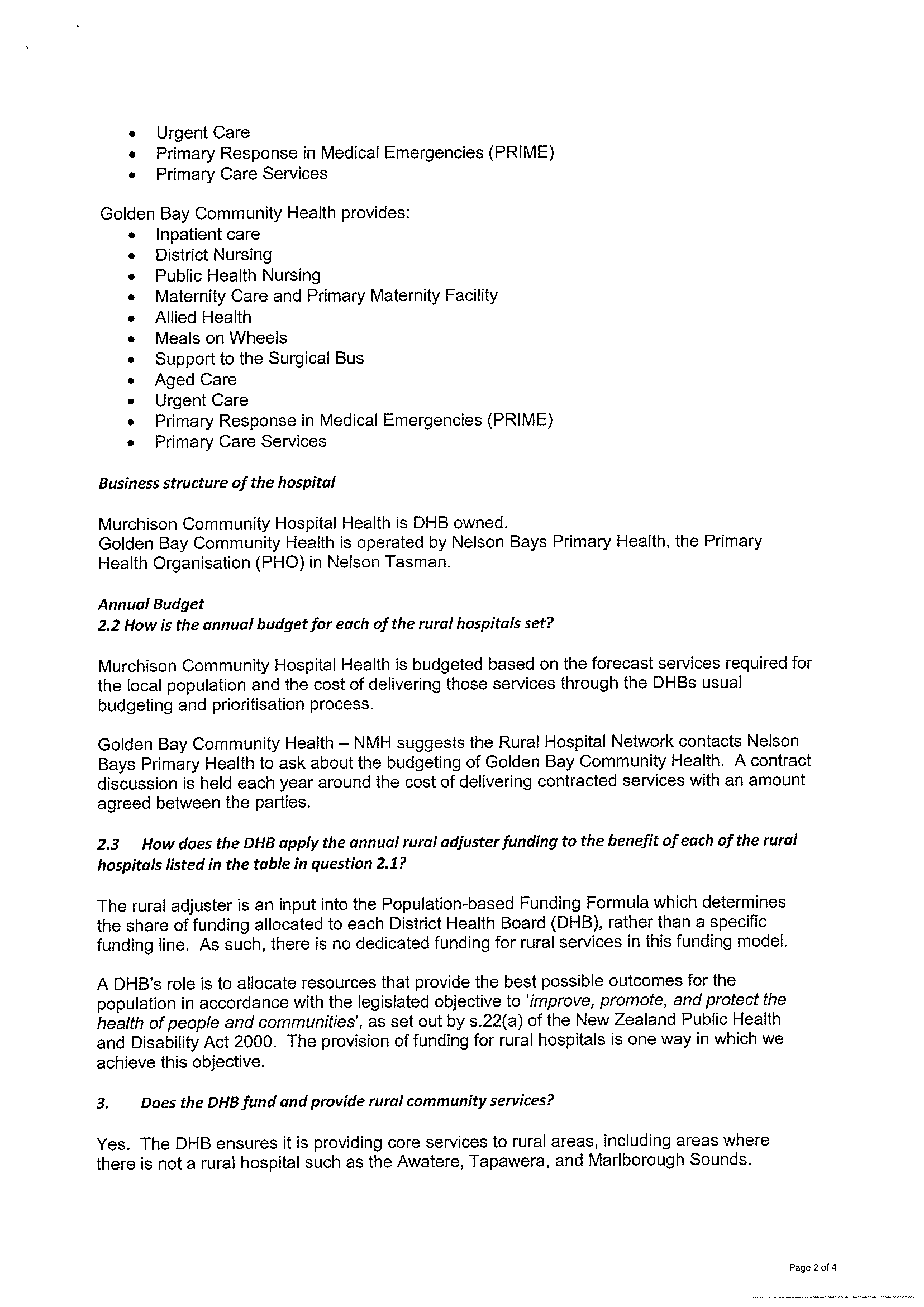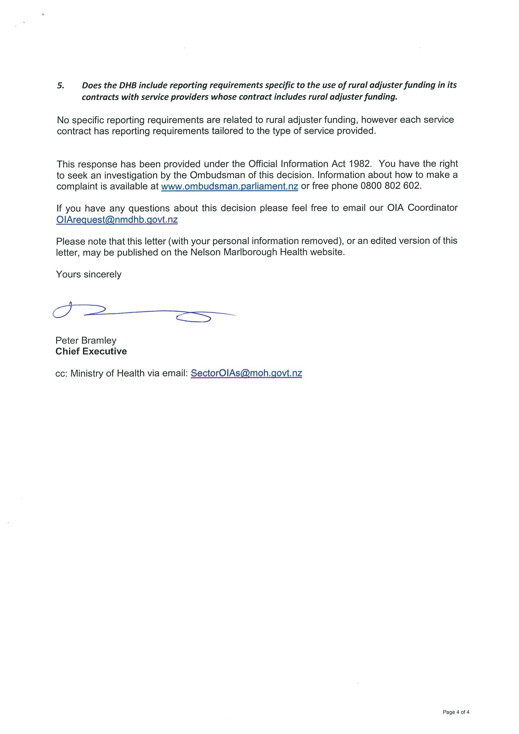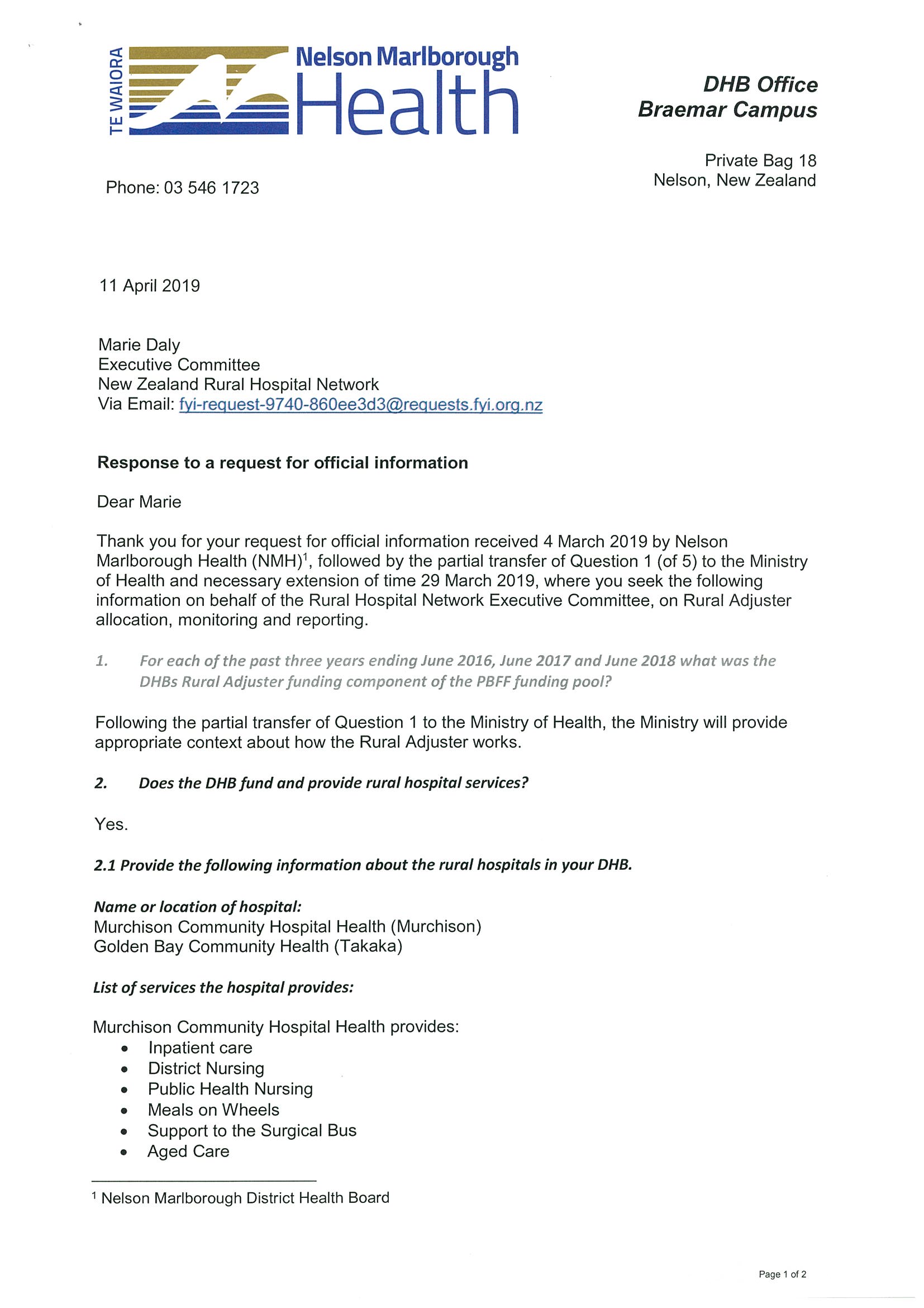 The NZ Rural Hospital Network wants to clearly understand each DHB's process for allocating, monitoring and reporting the annual DHB Rural Adjuster fund.