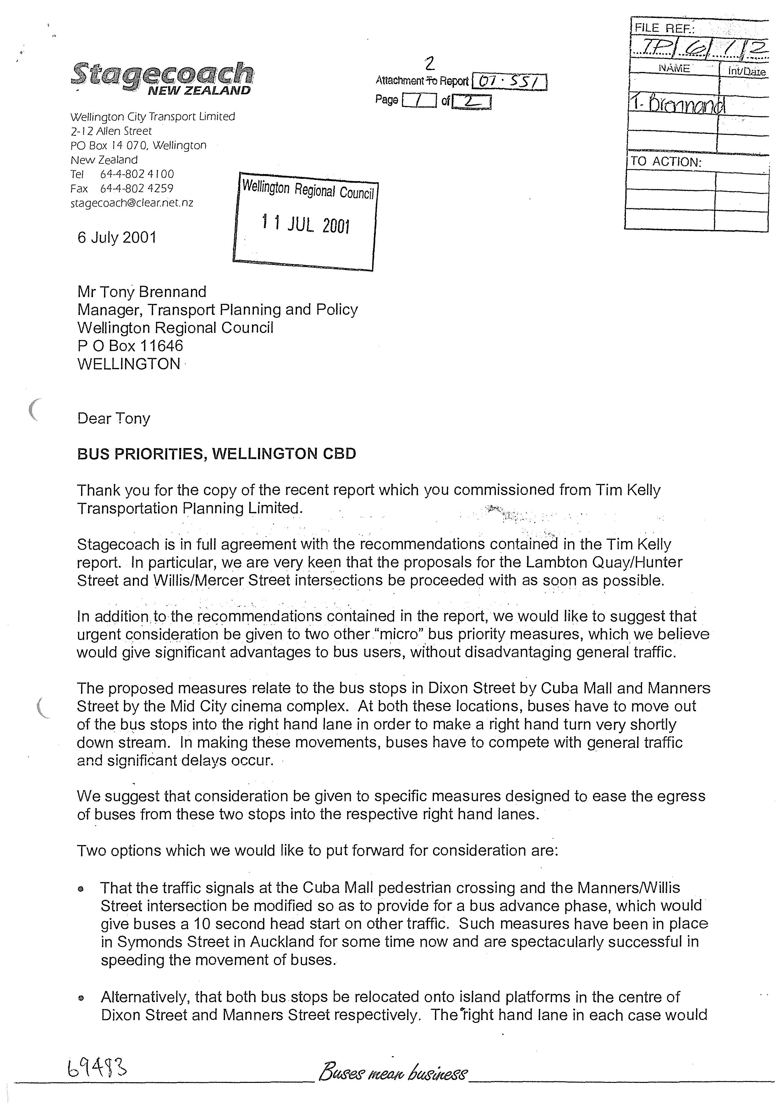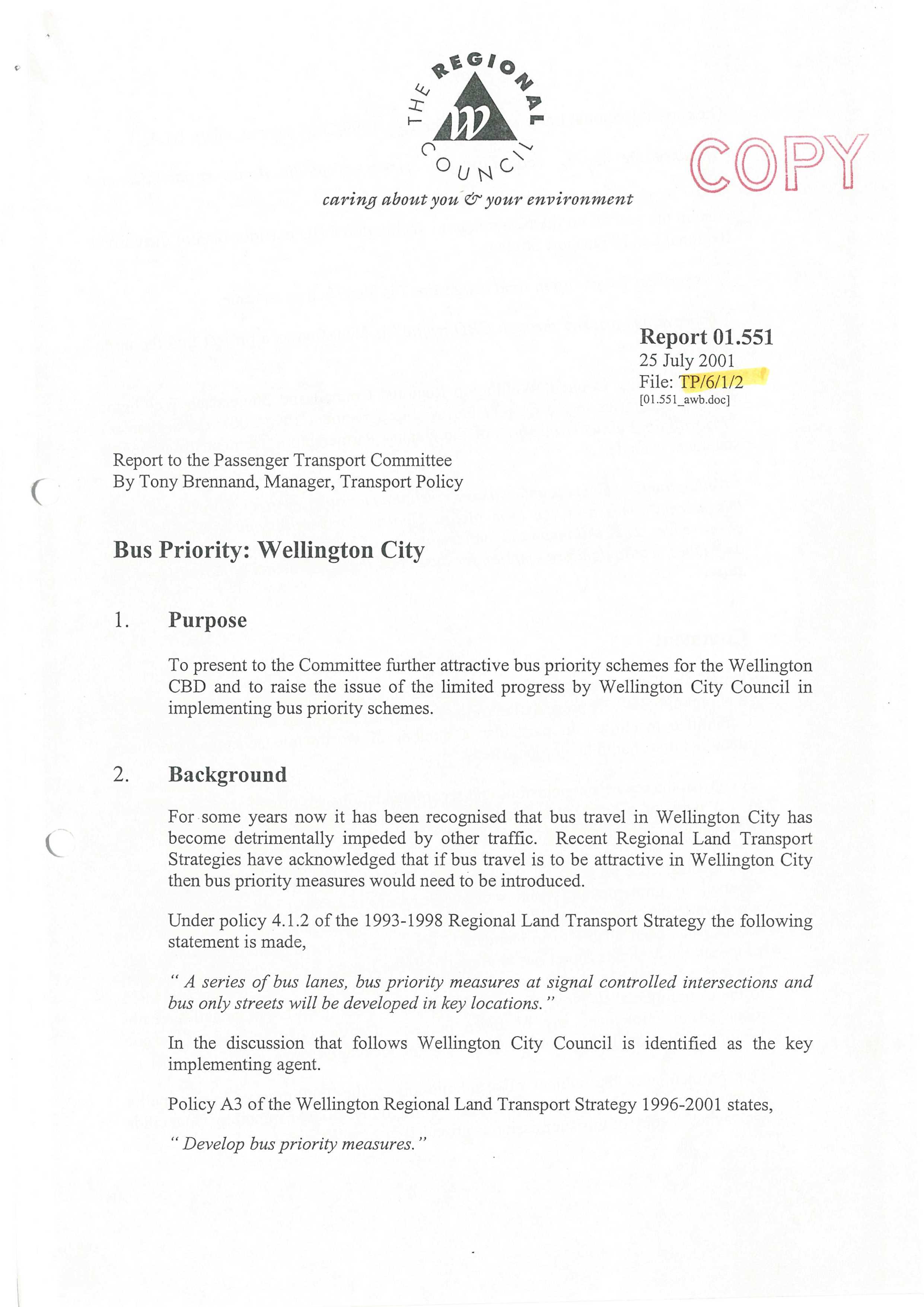 Request for the 2001 report “Bus Priority Wellington CBD” by Tim Kelly Transportation Planning Limited
