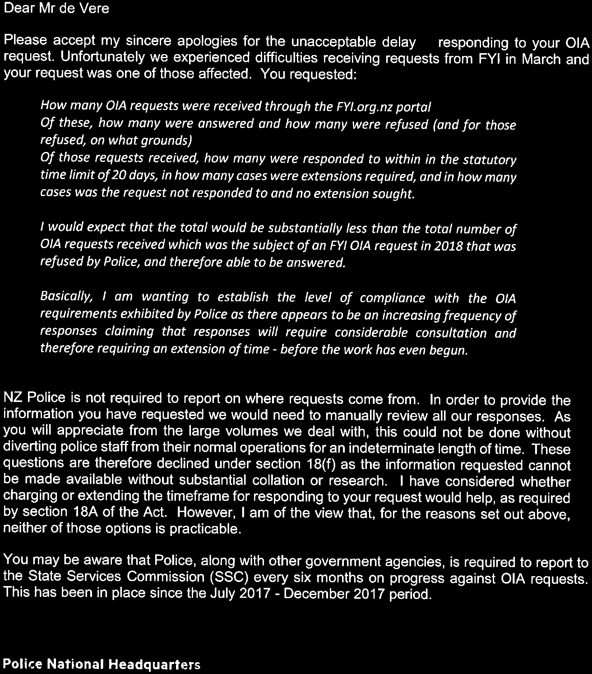 OIA response time statistics
